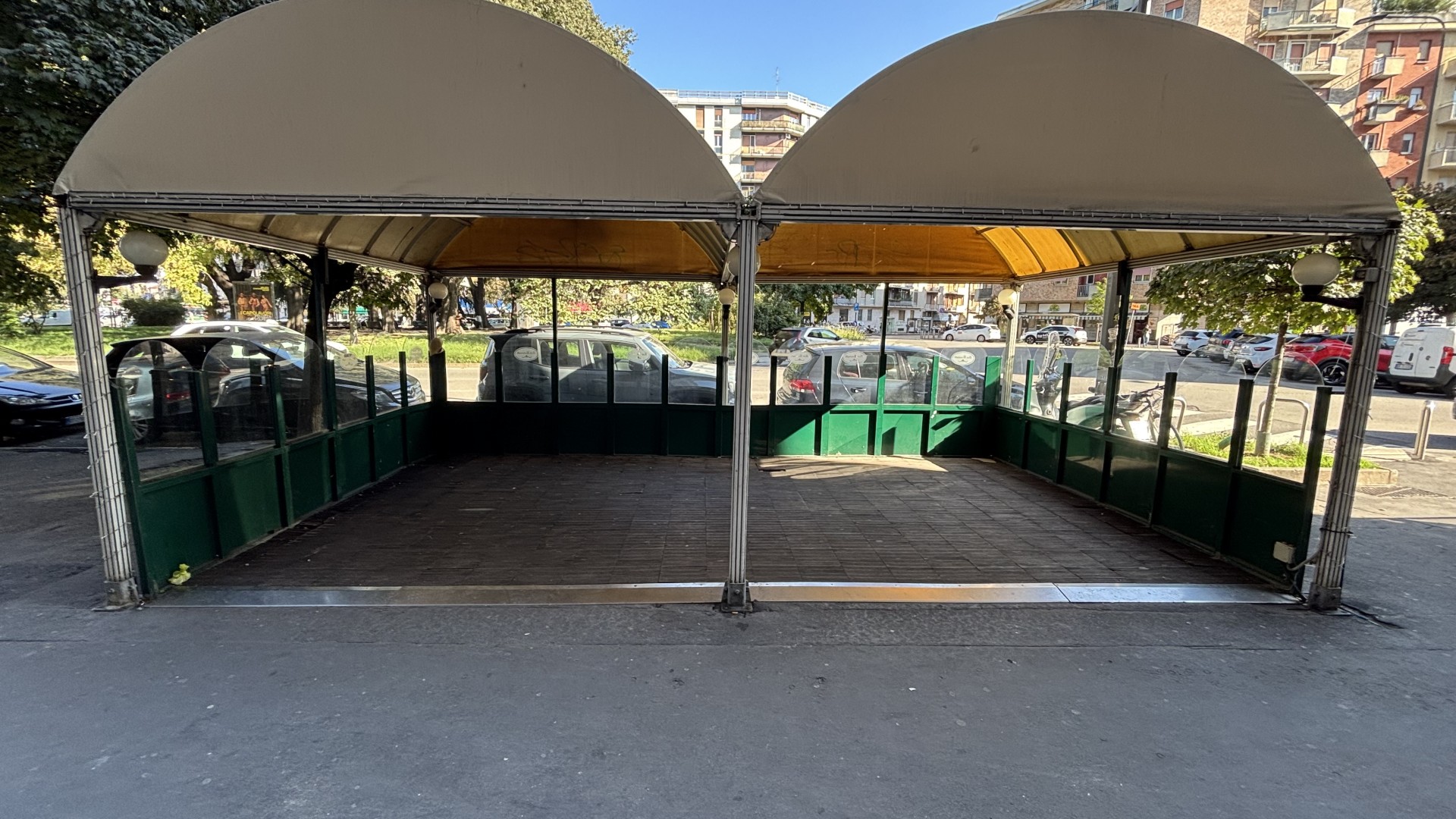 Parallelamente all’ingresso su strada, il locale dispone di un affaccio sul cortile interno, che offre un ulteriore punto di apertura e funzionalità. Su strada è inoltre presente un piccolo gazebo, utile come elemento di supporto o area espositiva esterna.