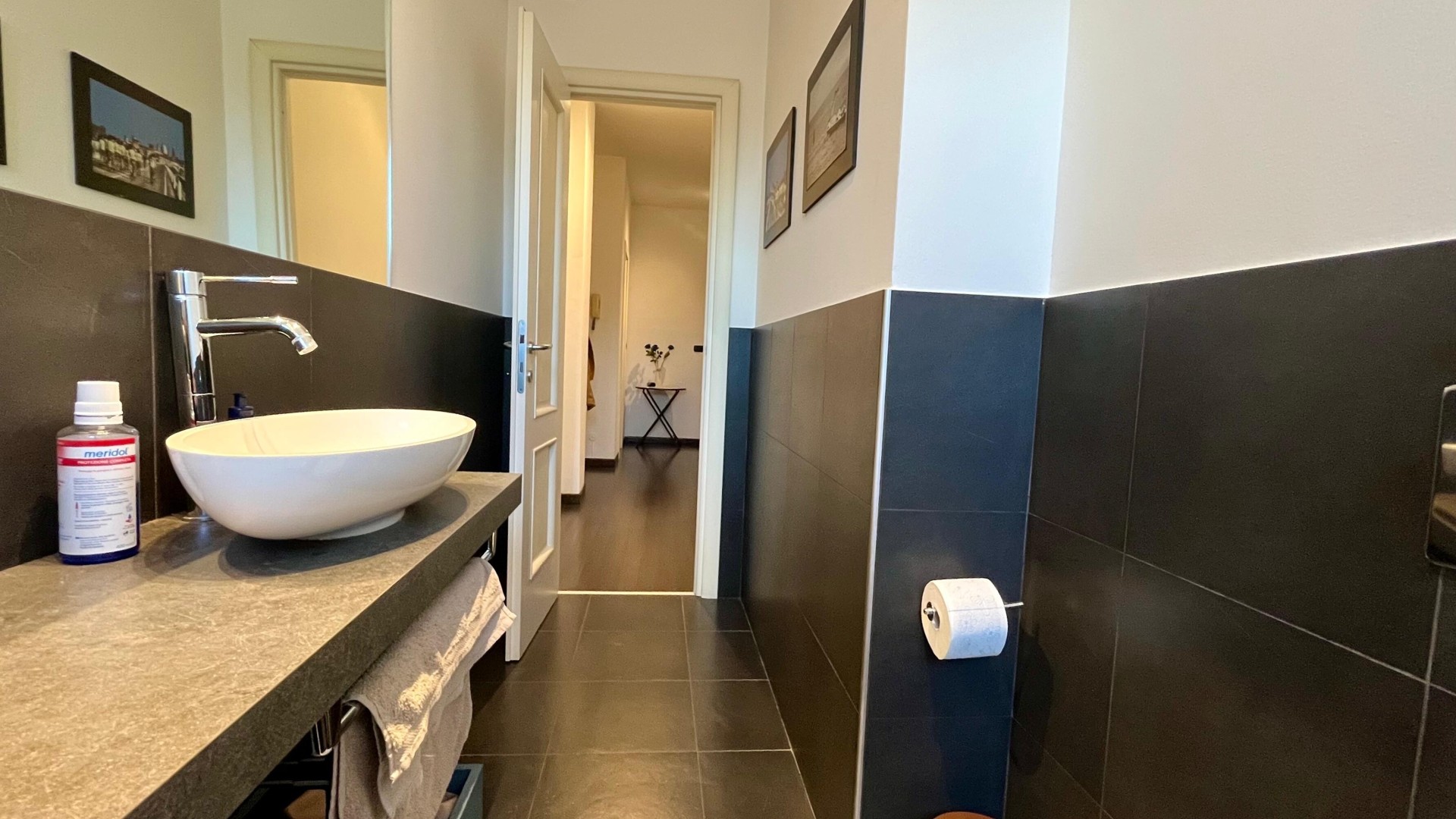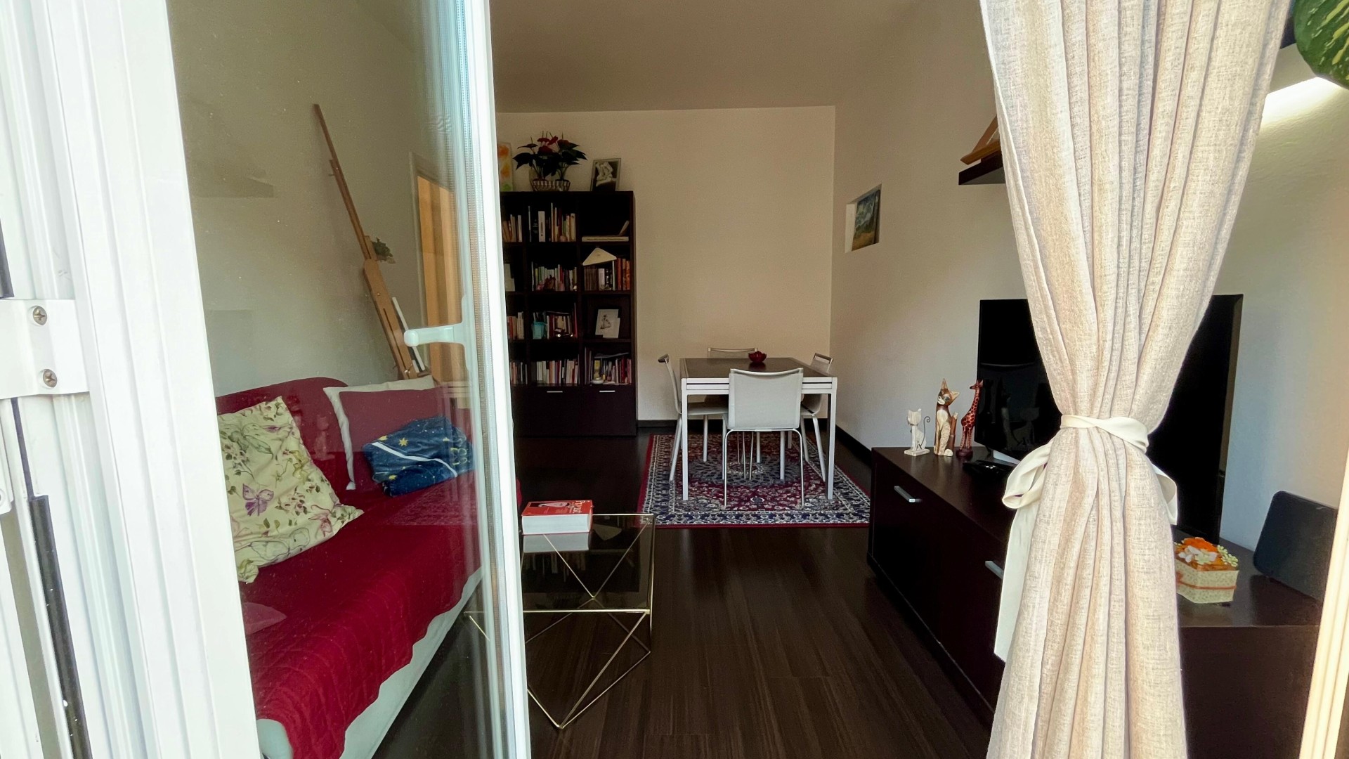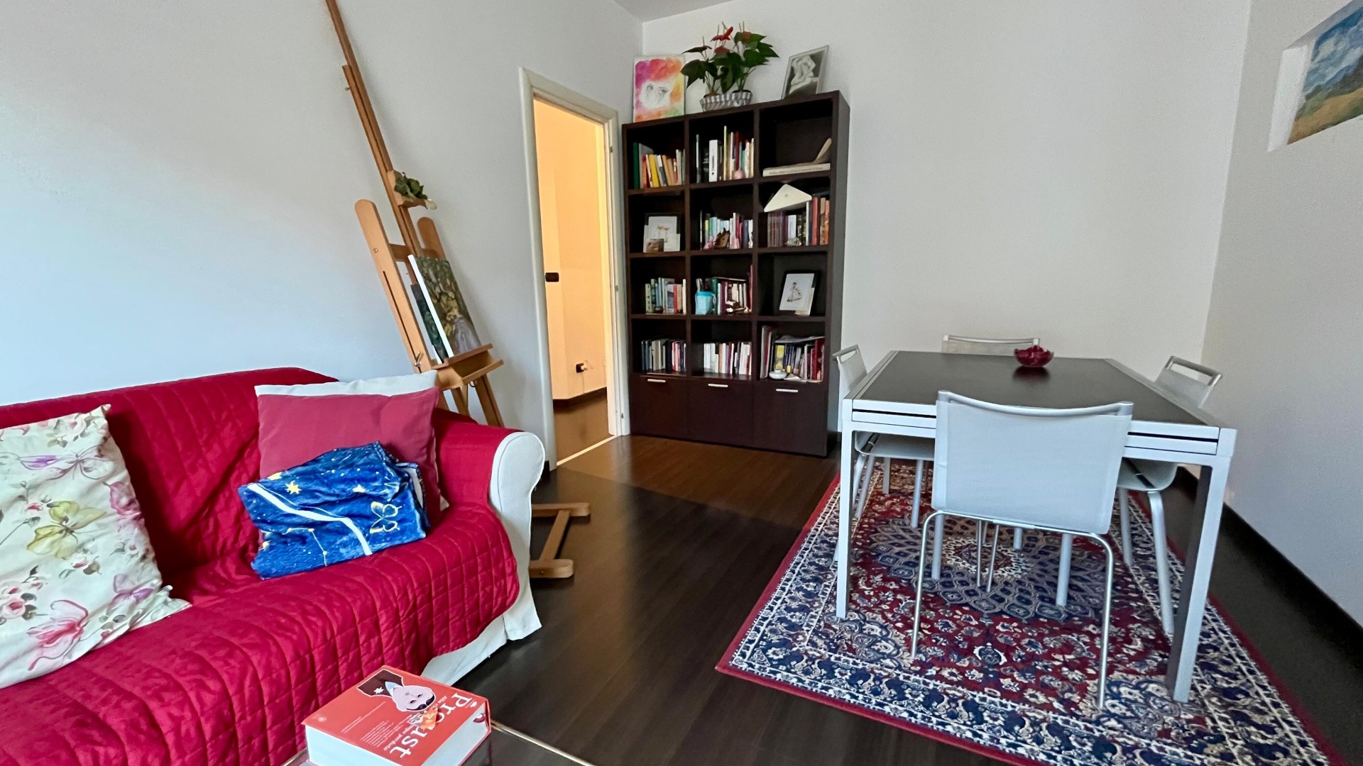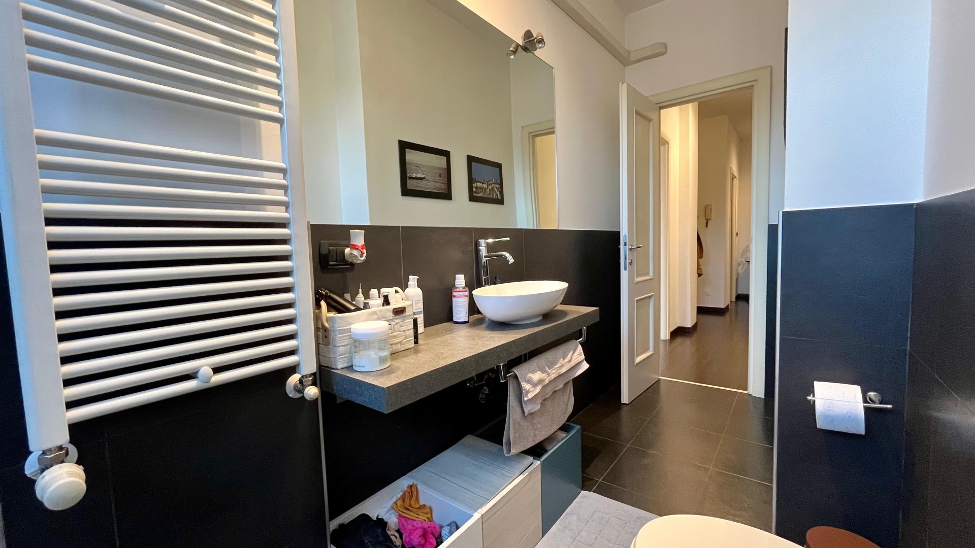 L’appartamento si apre su un ingresso con corridoio che collega in modo funzionale la zona giorno alla zona notte. La zona giorno è composta da un disimpegno che conduce a un ampio e luminoso soggiorno, arricchito da un piccolo balcone con affaccio esterno, e da una cucina abitabile, anch’essa molto luminosa grazie alla porta finestra. La zona notte è caratterizzata da una camera da letto di generose dimensioni, con accesso a un secondo balcone con affaccio interno. Completa la proprietà un ampio bagno finestrato, dotato di sanitari e vasca.