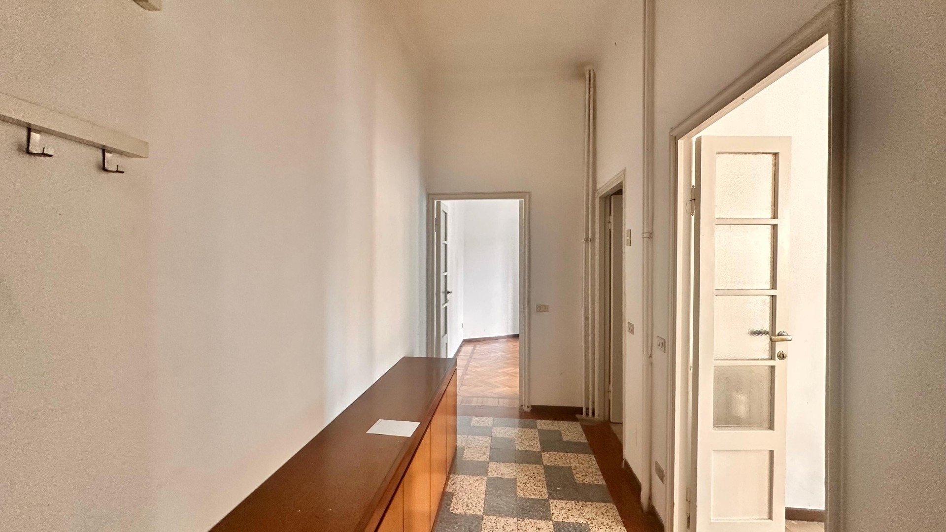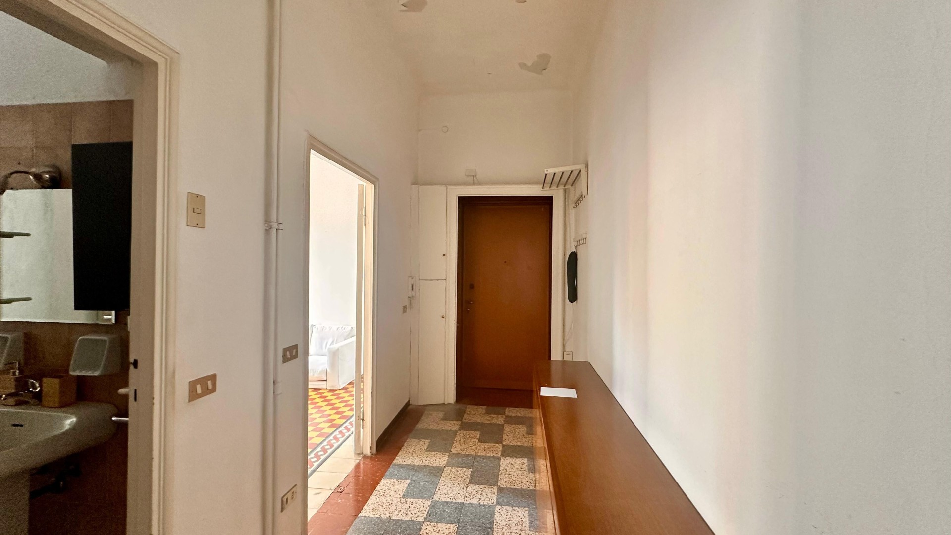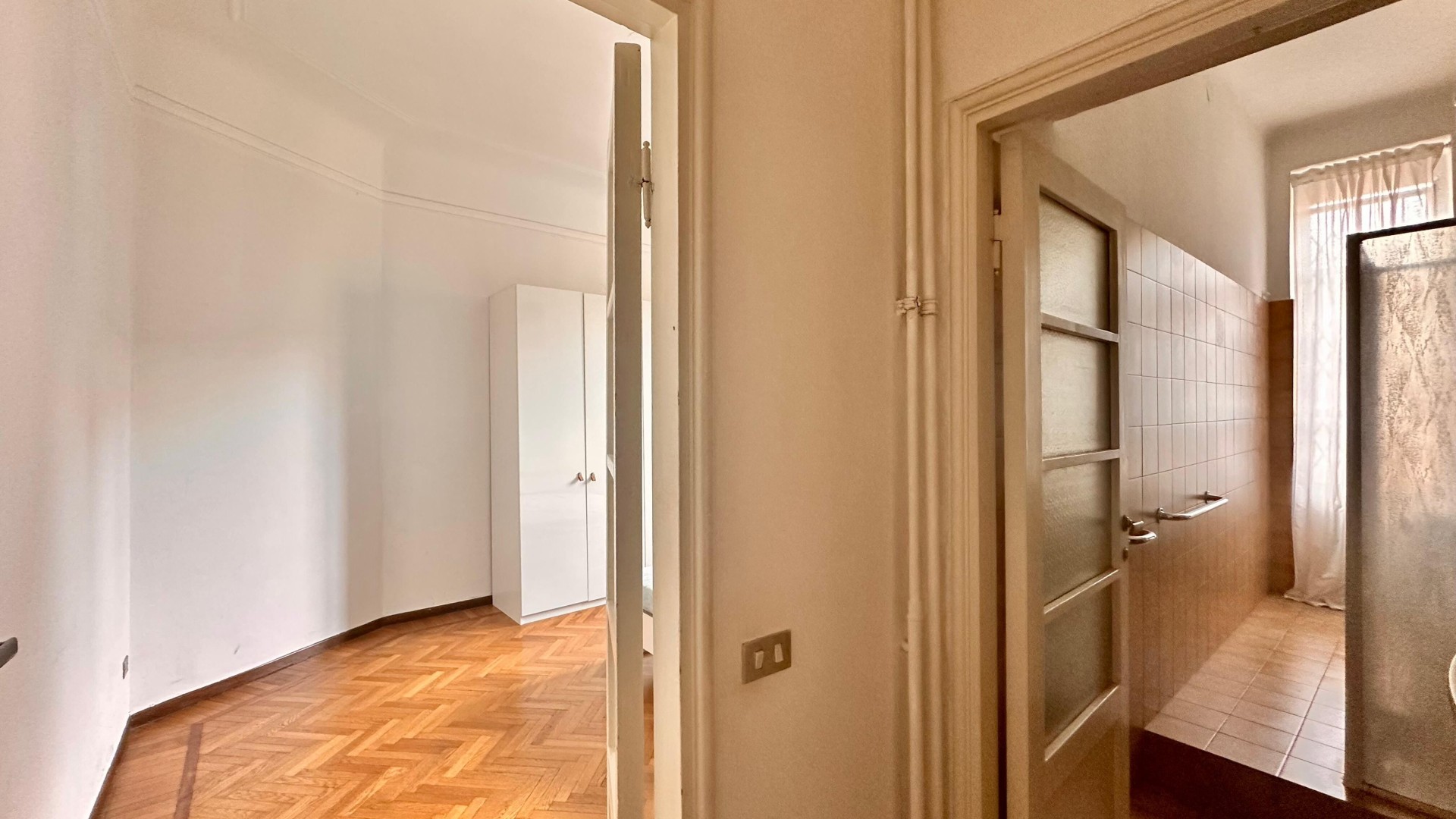 L’ingresso si apre su un corridoio che collega i vari ambienti della casa. La zona giorno è composta da un ampio e luminoso soggiorno, con accesso a un comodo balcone. È inoltre presente un cucinotto funzionale. La zona notte è caratterizzata da una camera da letto di generose dimensioni, arricchita da una finestra che dona grande luminosità all’ambiente. Completa l’immobile un bagno finestrato, dotato di doccia e sanitari.