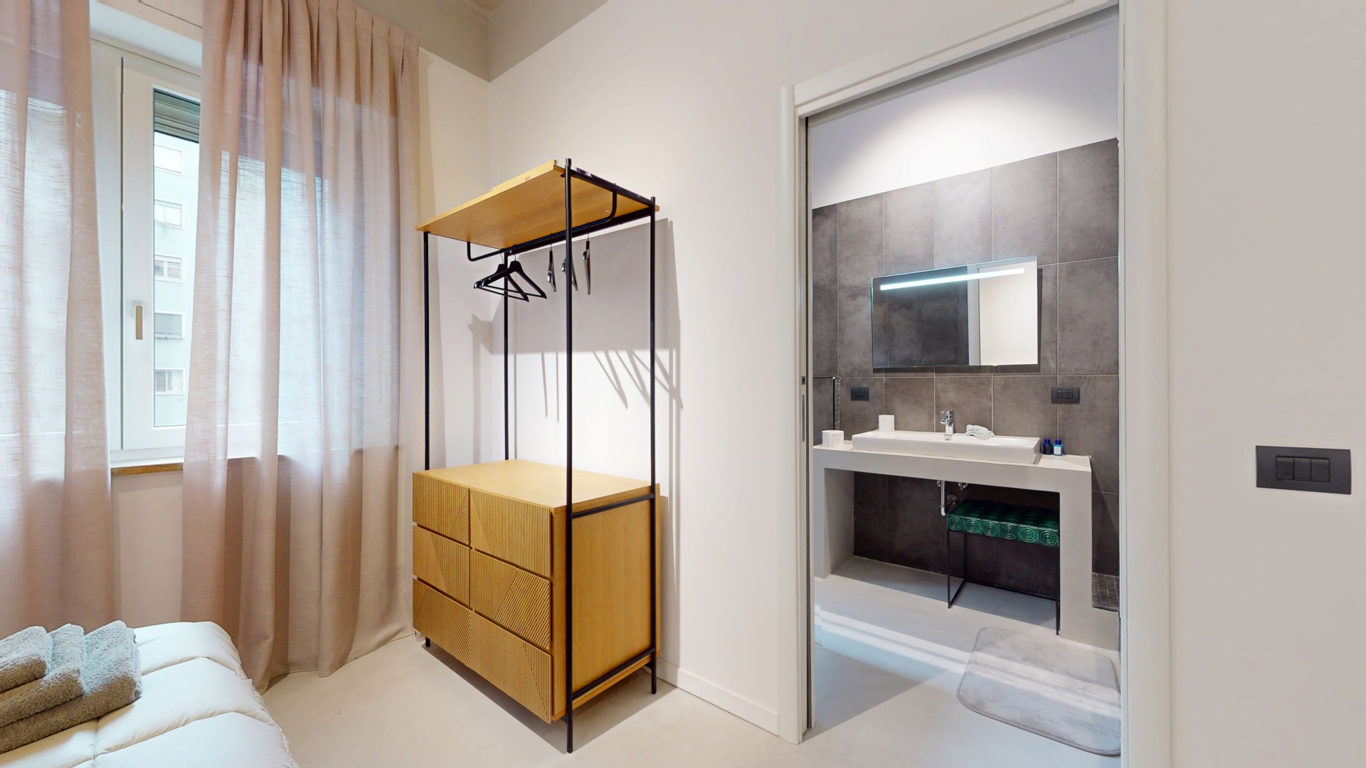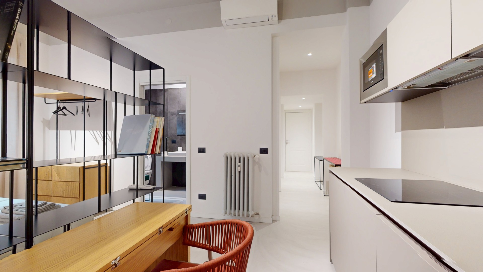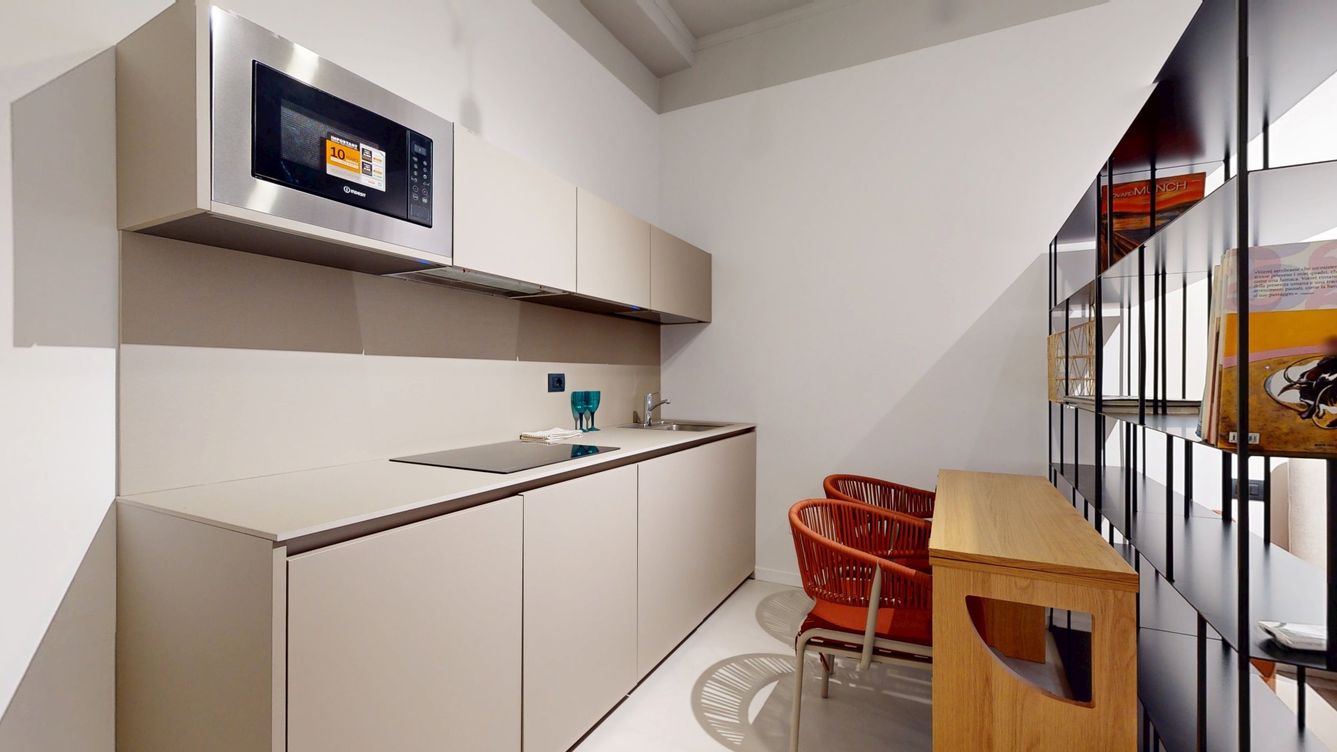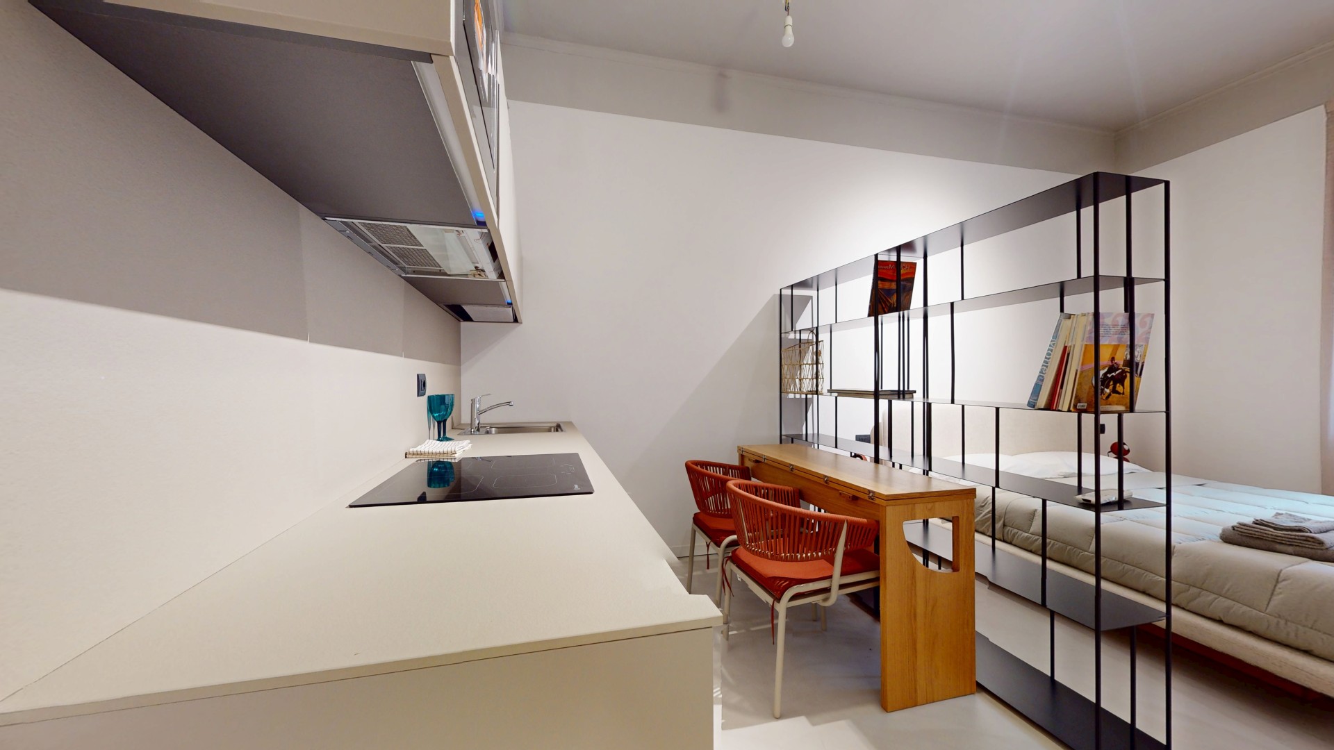 L’interno dell’abitazione si apre su un unico ambiente ben organizzato, che unisce in modo armonioso la zona giorno e la zona notte. Lo spazio è arredato con mobili di pregio e pensato per offrire il massimo della funzionalità. La zona giorno è caratterizzata da una cucina a vista funzionale e ben attrezzata, completa di tutto il necessario per cucinare e vivere la quotidianità in modo semplice e confortevole. Mentre nella zona notte è presente un comodo letto matrimoniale, situato vicino alla finestra che dona luminosità all'ambiente. Conclude l'abitazione un comodo bagno finestrato, con doccia e finiture di ottima qualità.