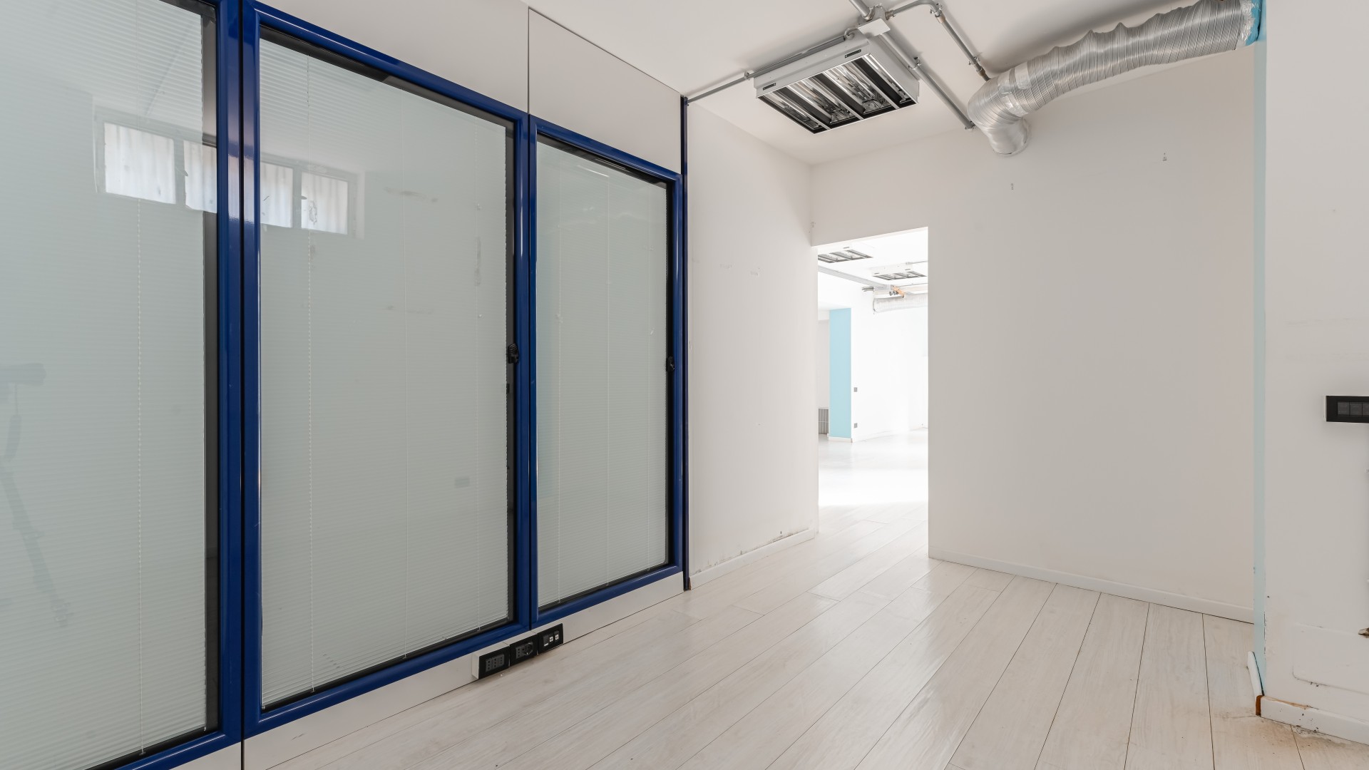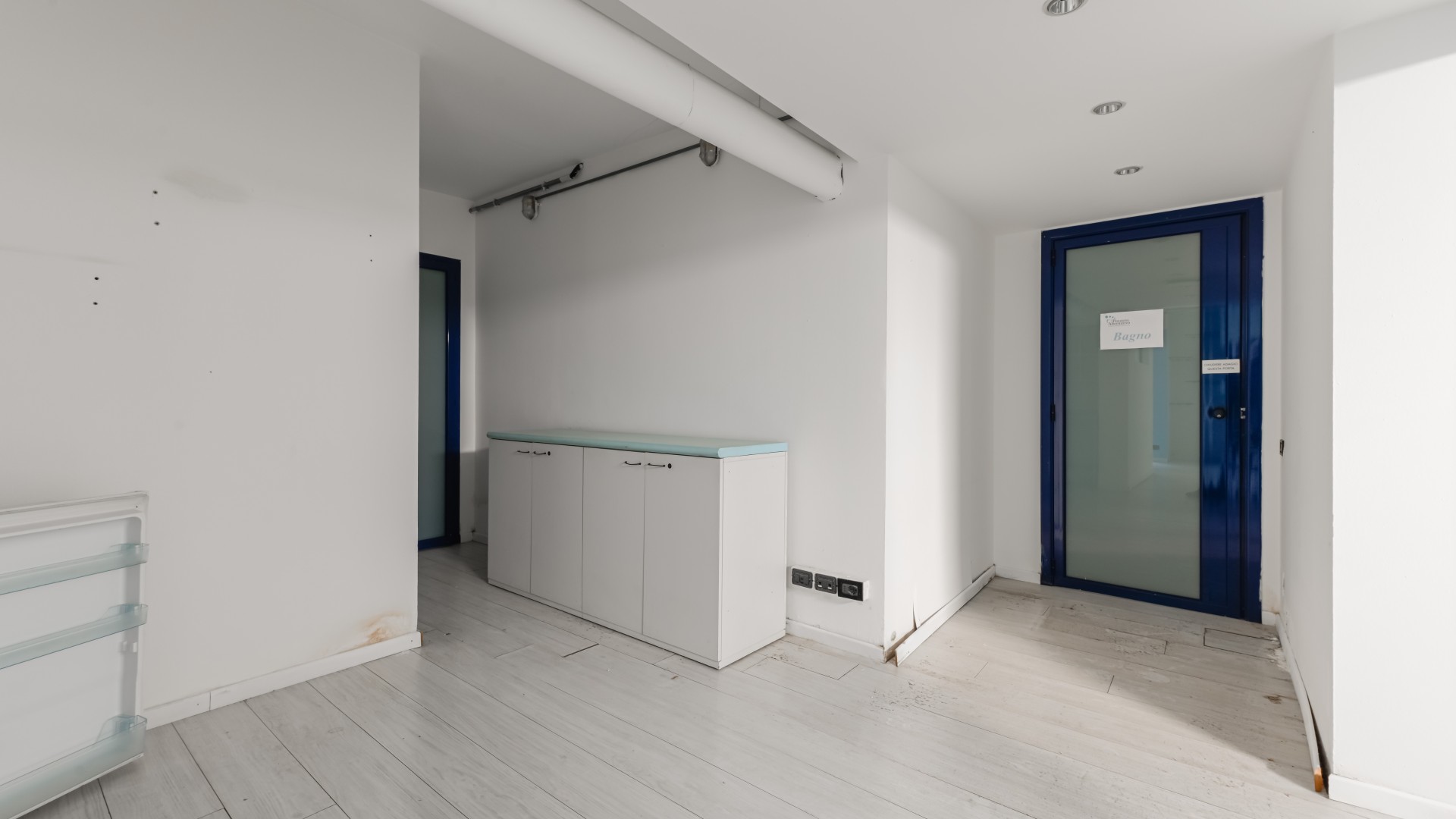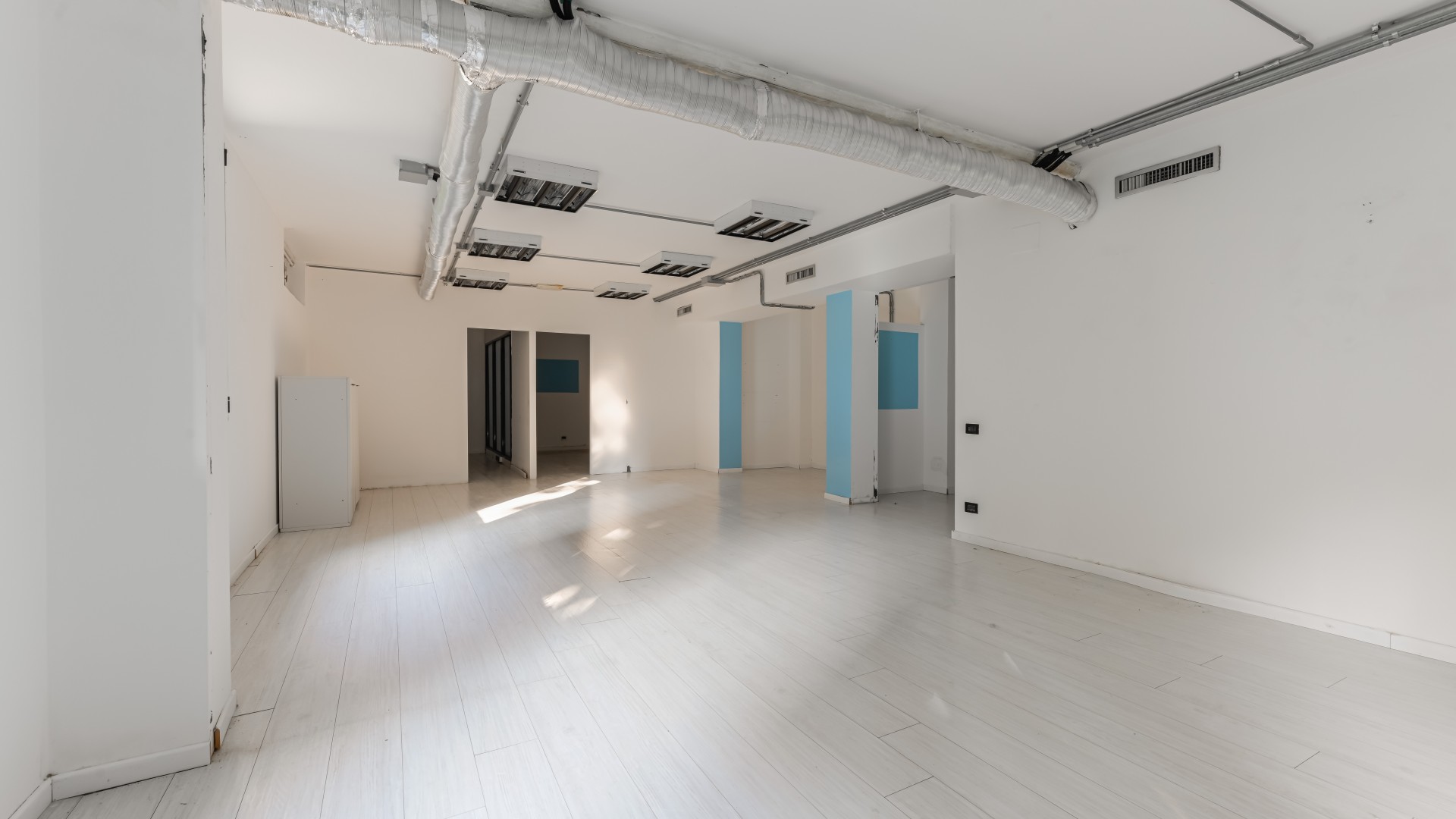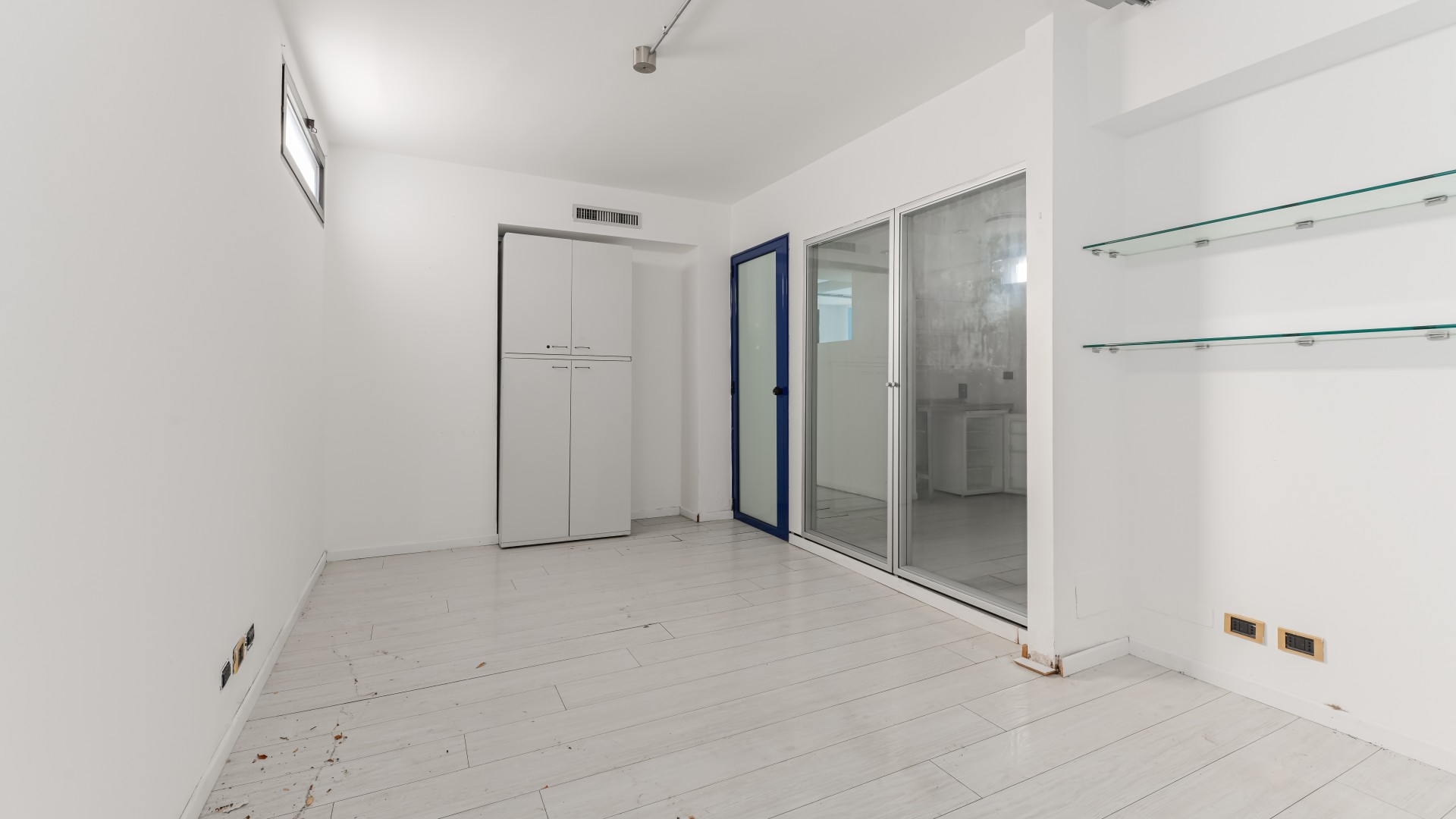 L’ufficio si sviluppa con spazi ampi e ben distribuiti, caratterizzati da una configurazione prevalentemente open space e da una forte luminosità, grazie alla presenza di numerose finestre. All’ingresso, sulla sinistra, si apre una grande zona multifunzionale, adatta a ospitare postazioni operative, un archivio o una sala riunioni, accompagnata da un pratico ripostiglio. Sulla destra, un corridoio conduce ad altri ambienti e al bagno finestrato, con affaccio su via Negroli.