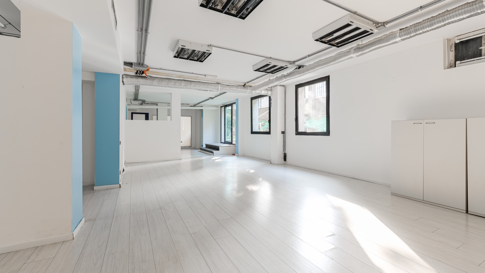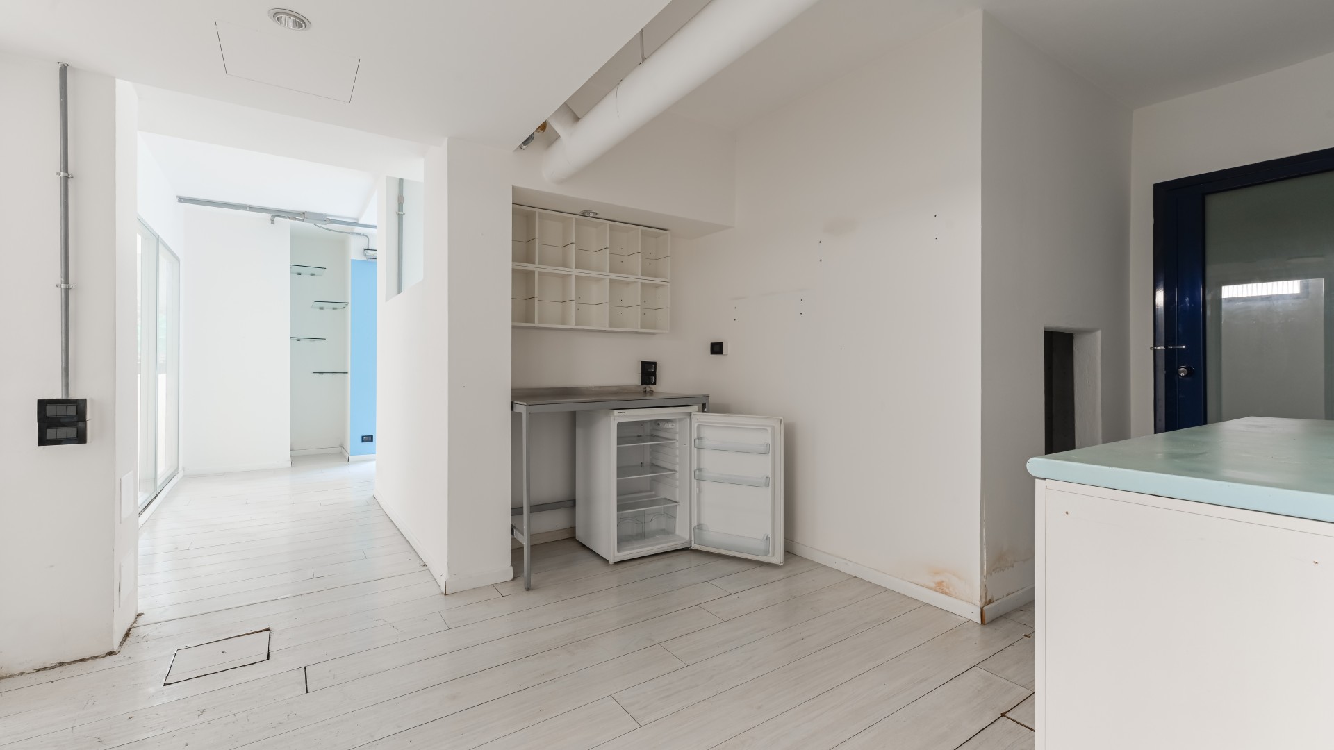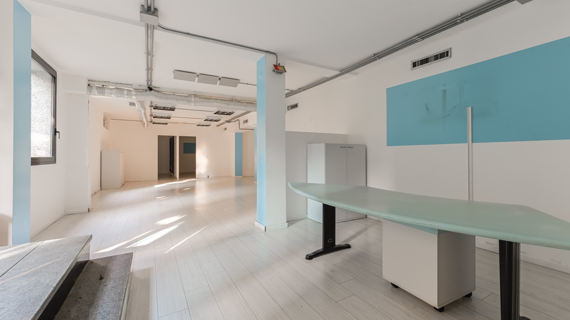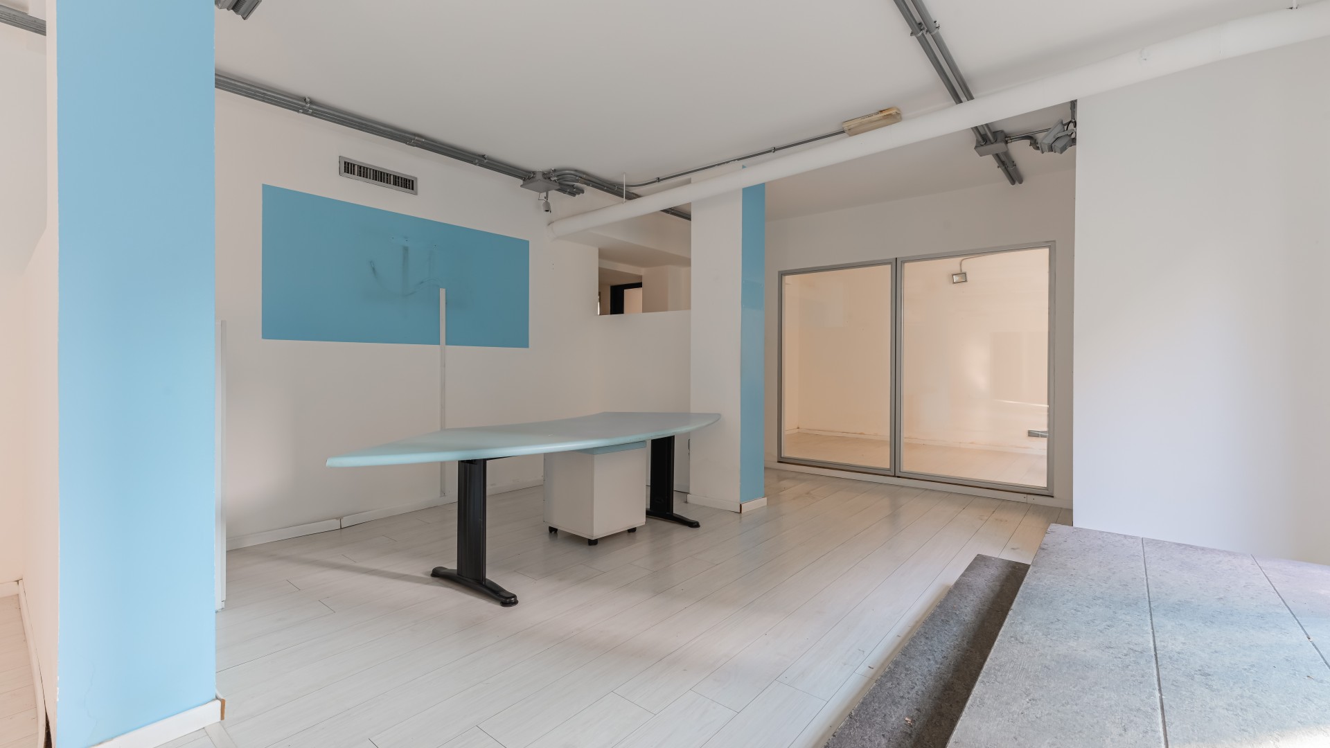 L’ufficio si sviluppa con spazi ampi e ben distribuiti, caratterizzati da una configurazione prevalentemente open space e da una forte luminosità, grazie alla presenza di numerose finestre. All’ingresso, sulla sinistra, si apre una grande zona multifunzionale, adatta a ospitare postazioni operative, un archivio o una sala riunioni, accompagnata da un pratico ripostiglio. Sulla destra, un corridoio conduce ad altri ambienti e al bagno finestrato, con affaccio su via Negroli.
