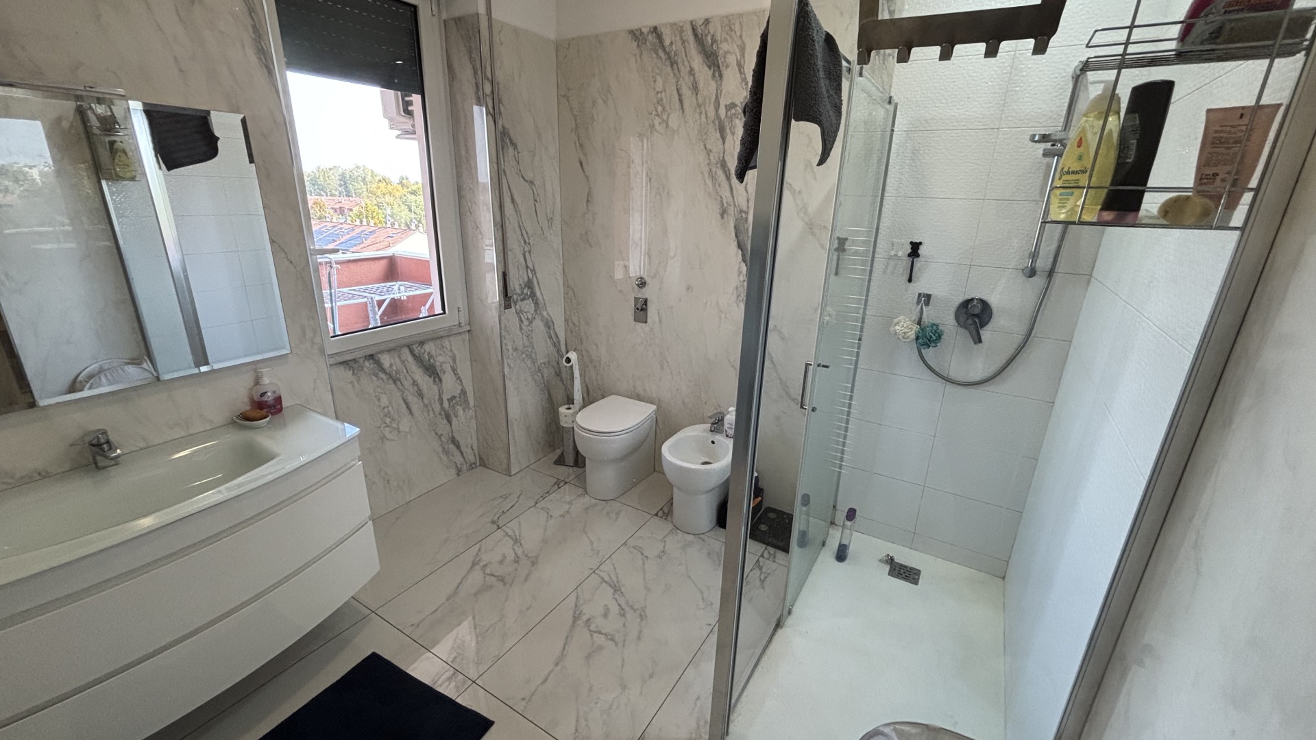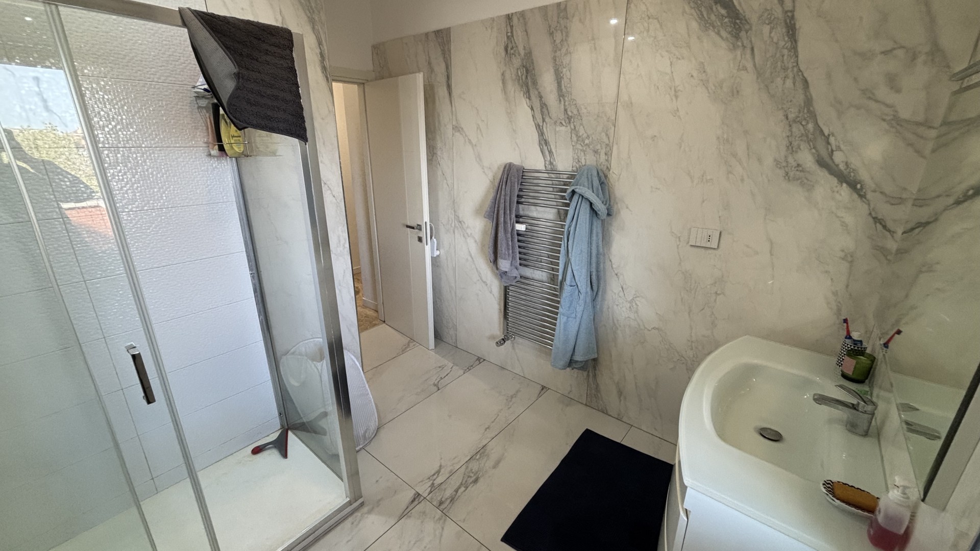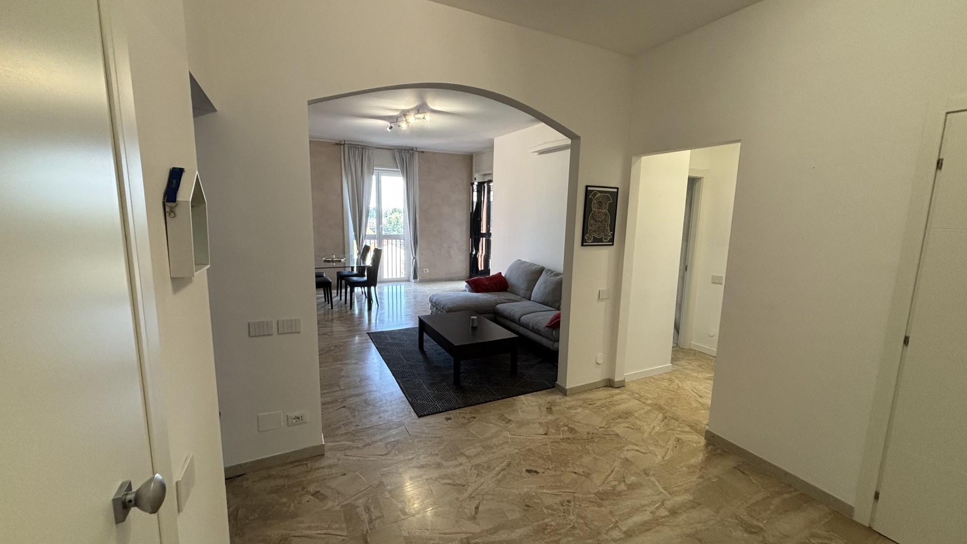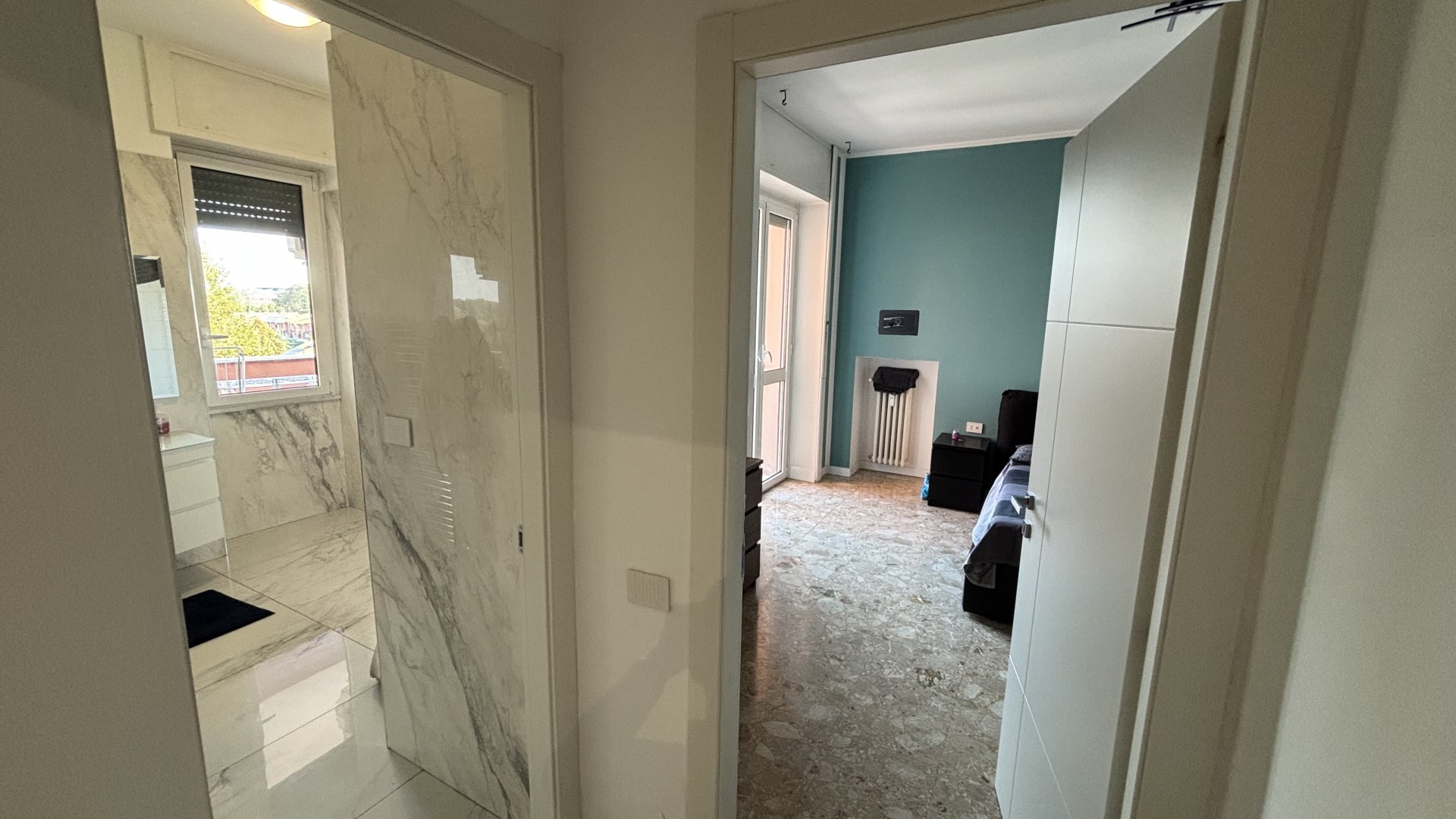 L’appartamento è rifinito con pavimento in marmo in tutti gli ambienti e dispone di doppi infissi, che garantiscono ottimo isolamento termico e acustico, contribuendo al comfort abitativo e al risparmio energetico.