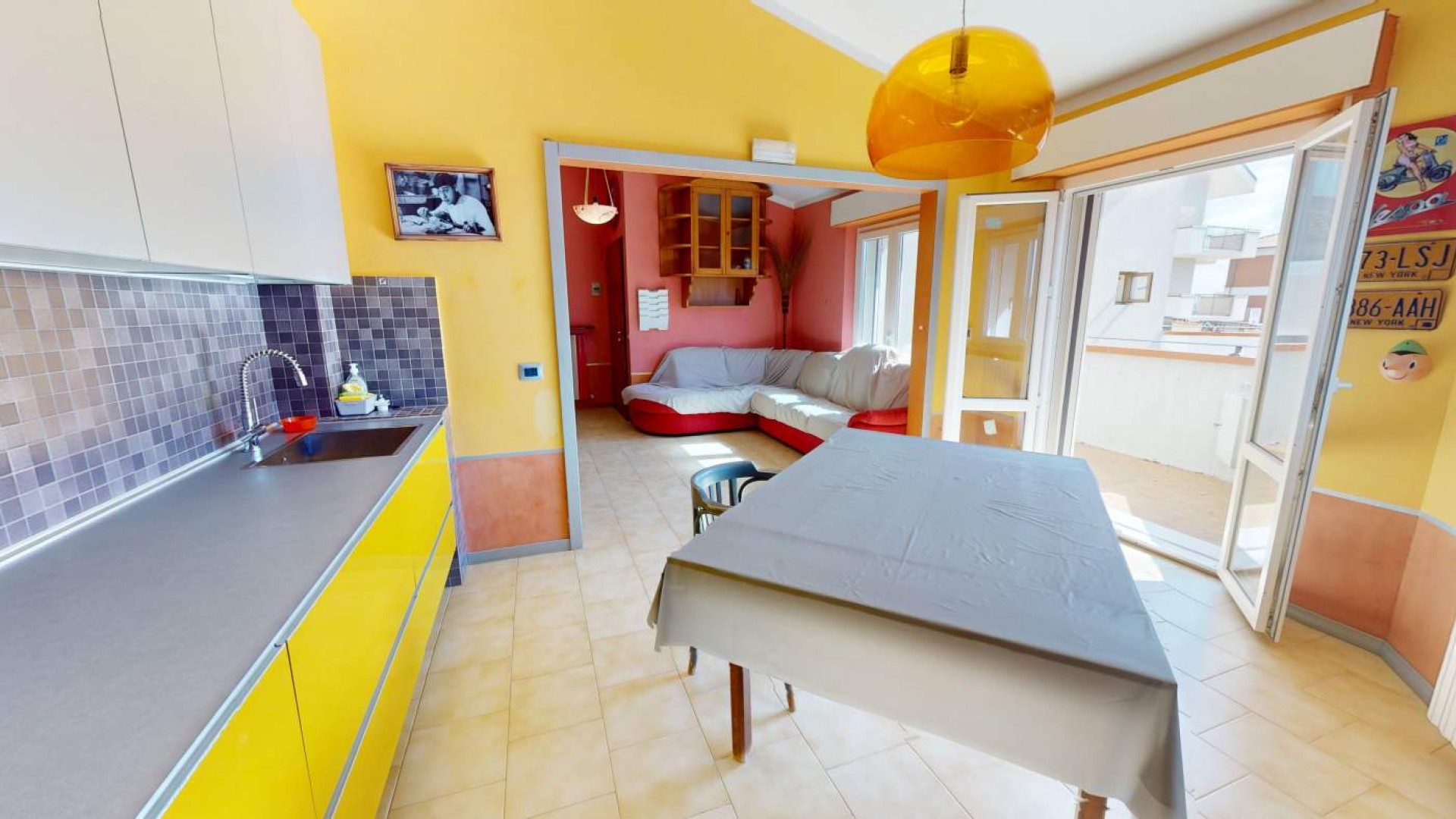 L’ingresso conduce direttamente in un’ampia zona living, caratterizzata da grande luminosità e ambienti ariosi, con cucina a vista moderna e funzionale.