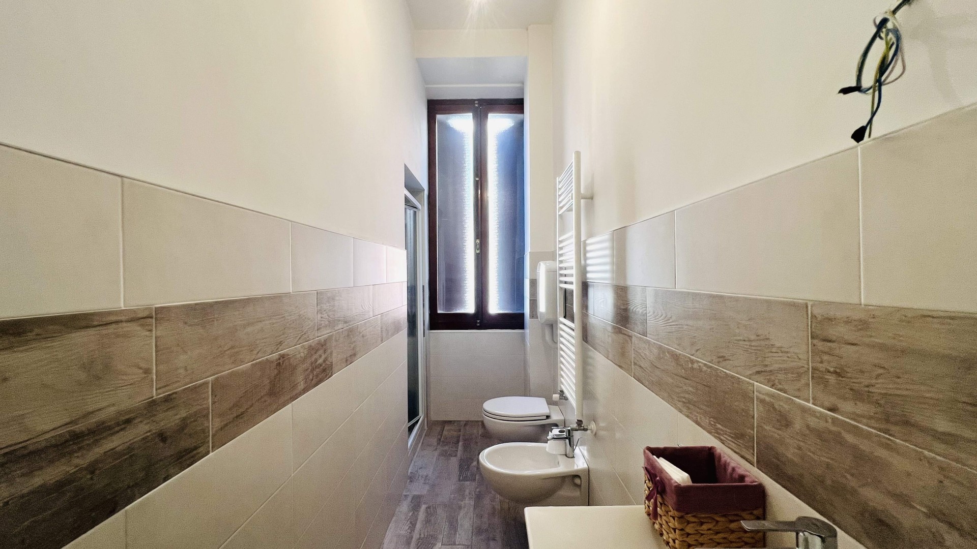 Vi è poi un bagno finestrato con box doccia.