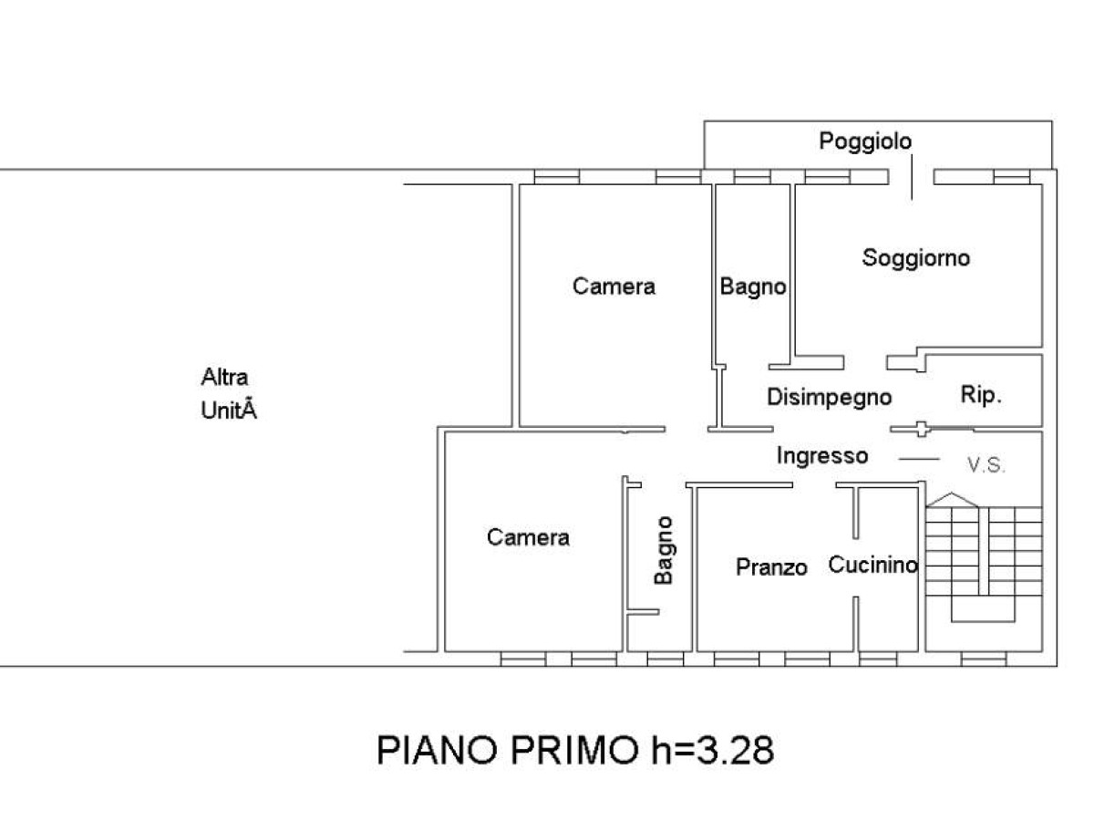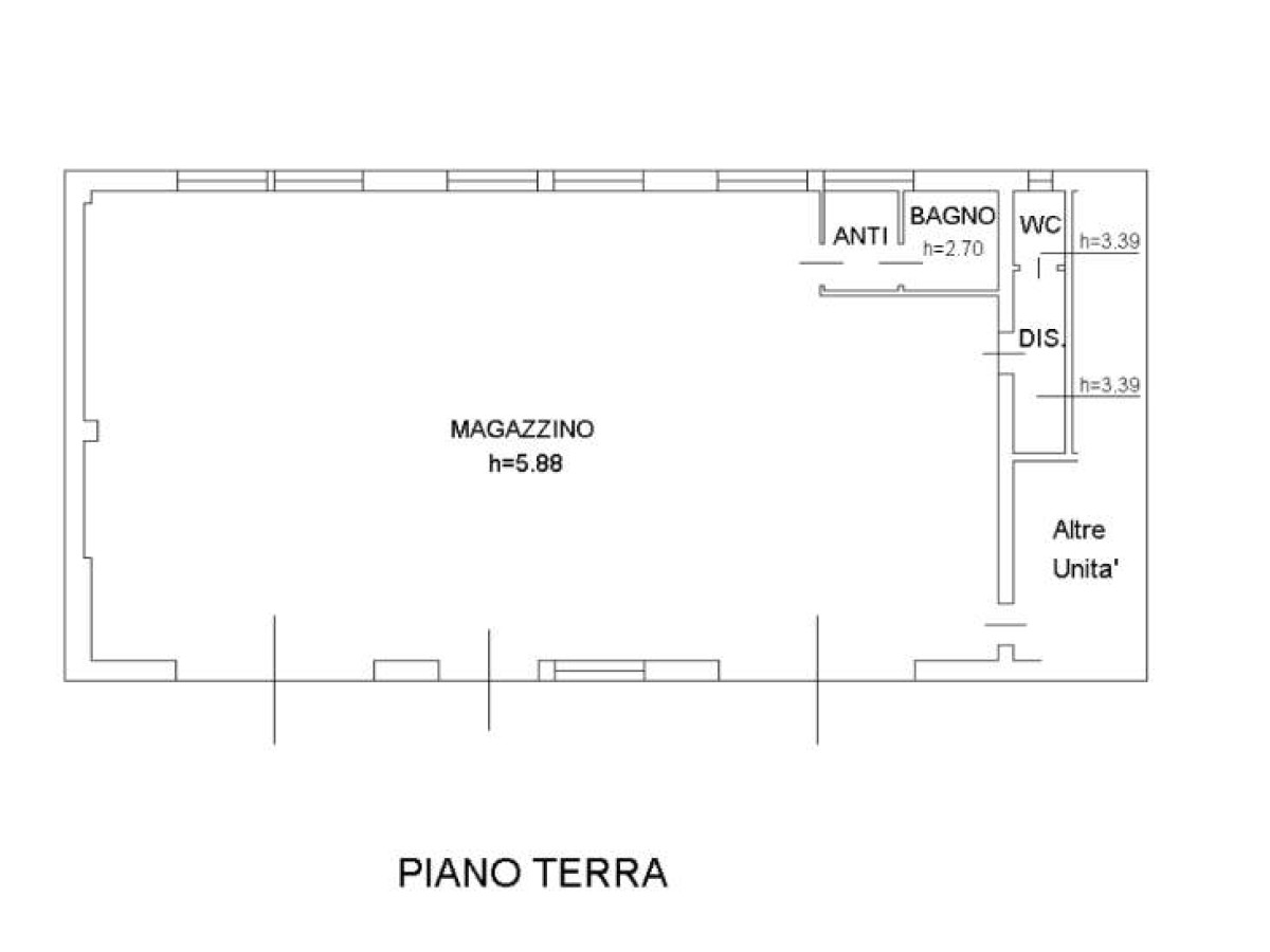 Lo stabile attualmente prevede un magazzino al piano terra affittato e due quadrilocali liberi.