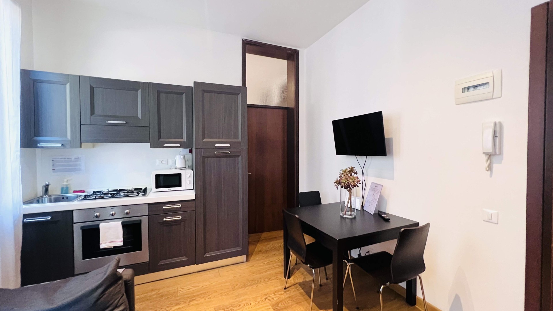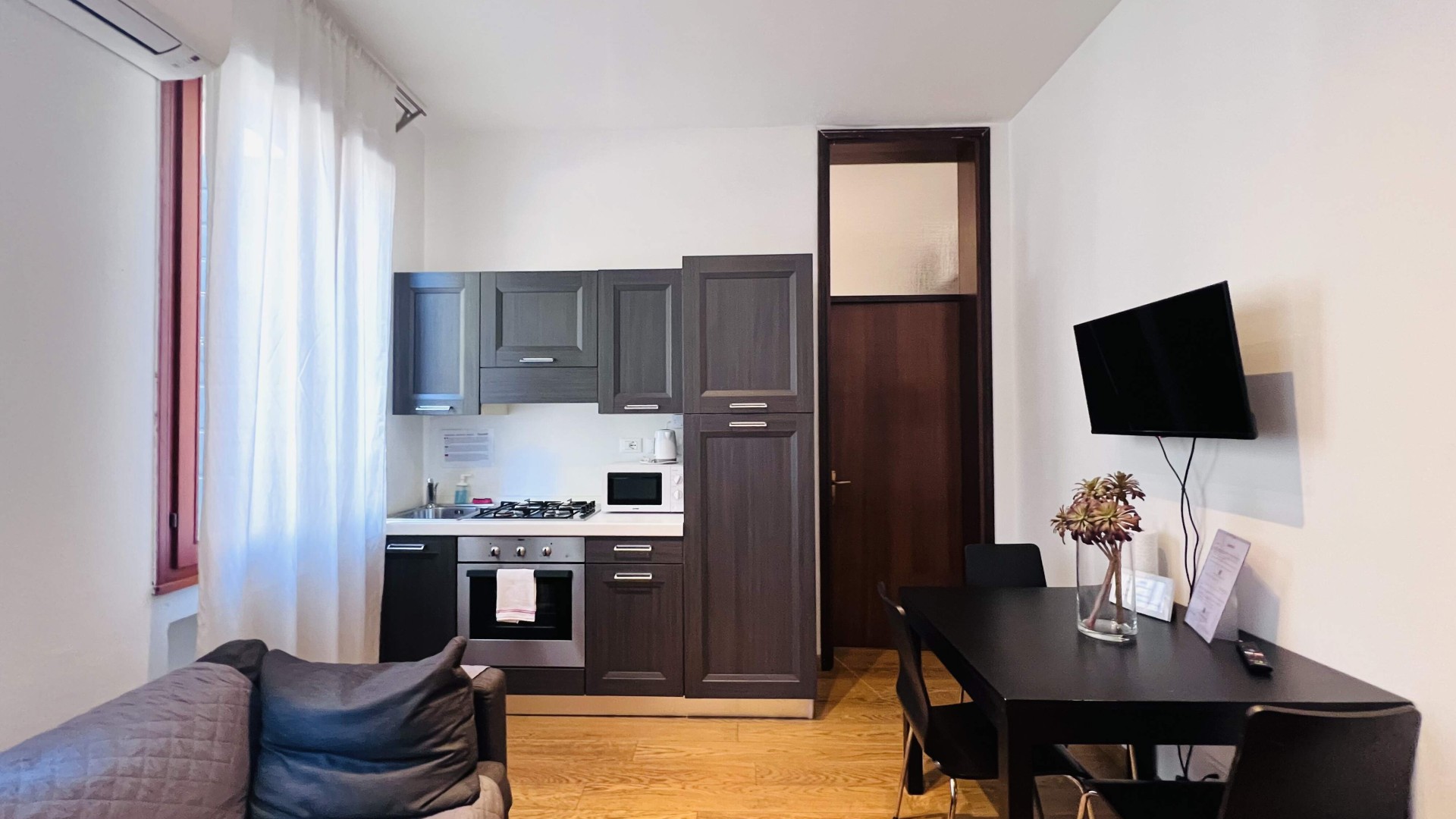 L'immobile è composto da un soggiorno con angolo cottura ed una camera da letto matrimoniale con bagno in camera con box doccia.