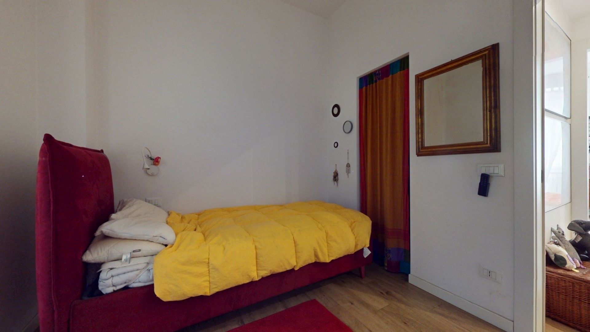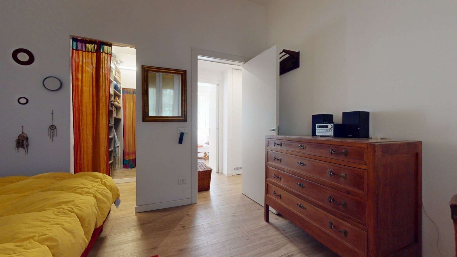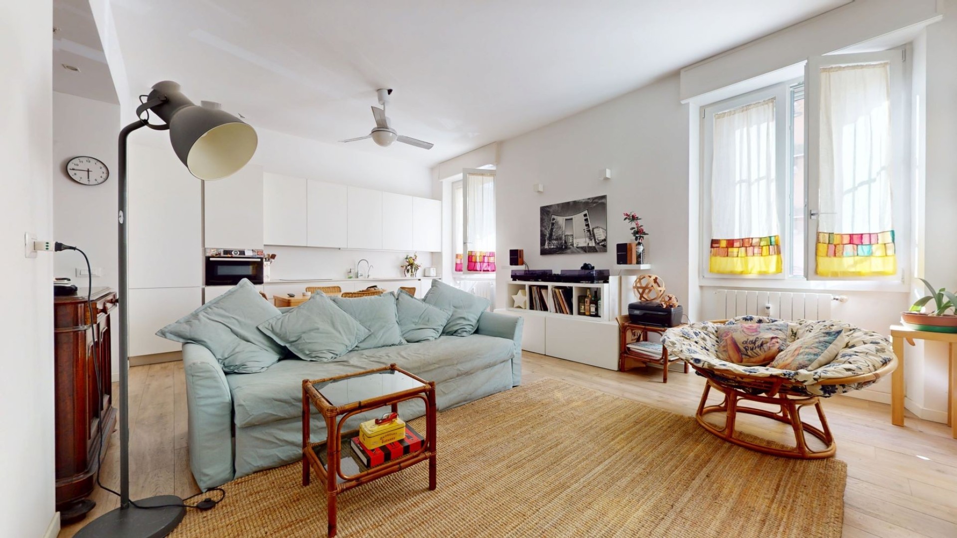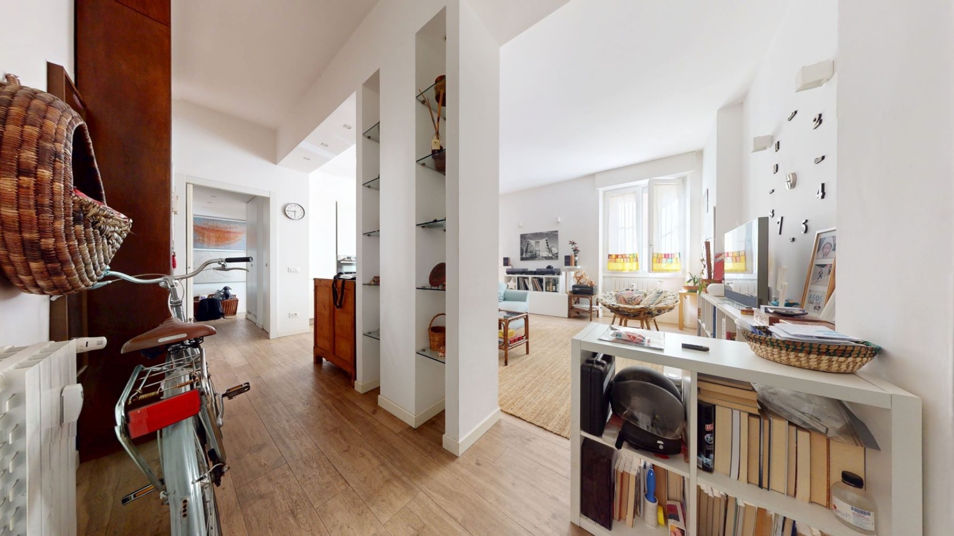 L’appartamento è situato al piano rialzato di un contesto tranquillo e ben tenuto in uno stabile d’epoca. L'ingresso si apre su un ampio soggiorno con cucina a vista, caratterizzato da grandi finestre che affacciano sulla strada e donano una piacevole luminosità agli ambienti. La zona notte è composta da due camere da letto, una delle quali dispone di una cabina armadio e dell’accesso a un balcone con affaccio interno sul cortile, mentre l’altra ha una finestra che guarda sulla strada. Nel disimpegno è presente un pratico armadio a muro che ospita un ripostiglio, ideale per ottimizzare lo spazio e mantenere ordine all’interno dell’abitazione. Il bagno è finestrato e affaccia sul balcone, risultando ben arieggiato. L’appartamento è rifinito con un parquet prefinito di ottima qualità, infissi in doppio vetro con apertura vasistas, inferriate di sicurezza e zanzariere.