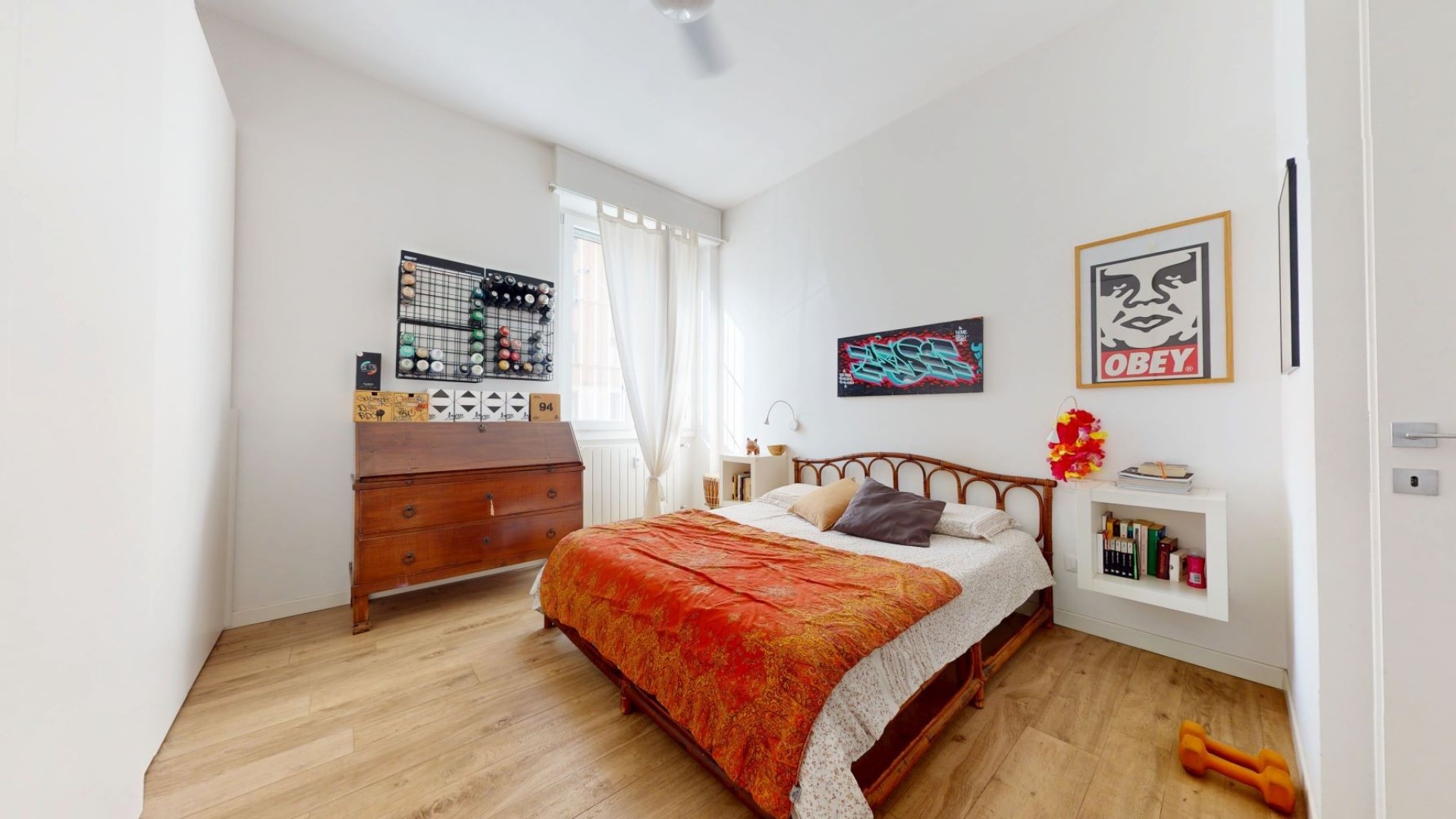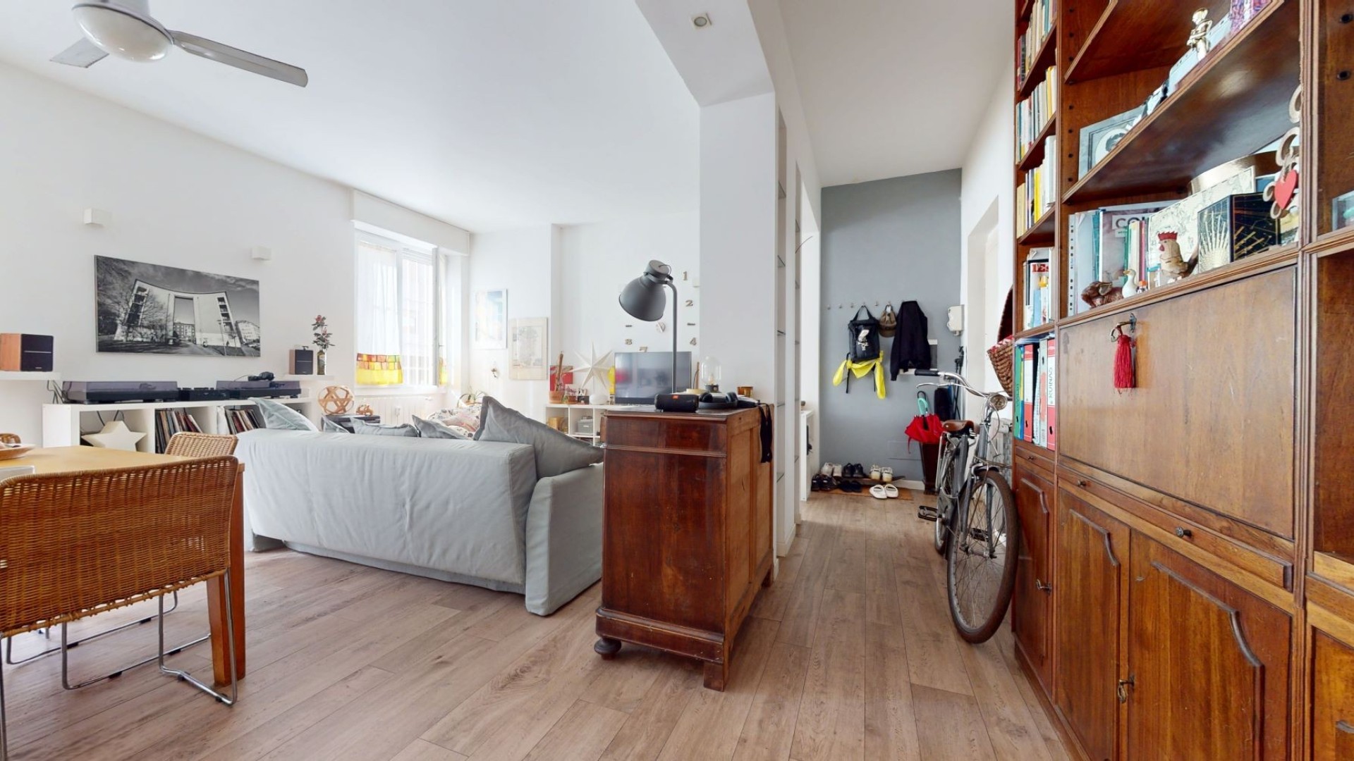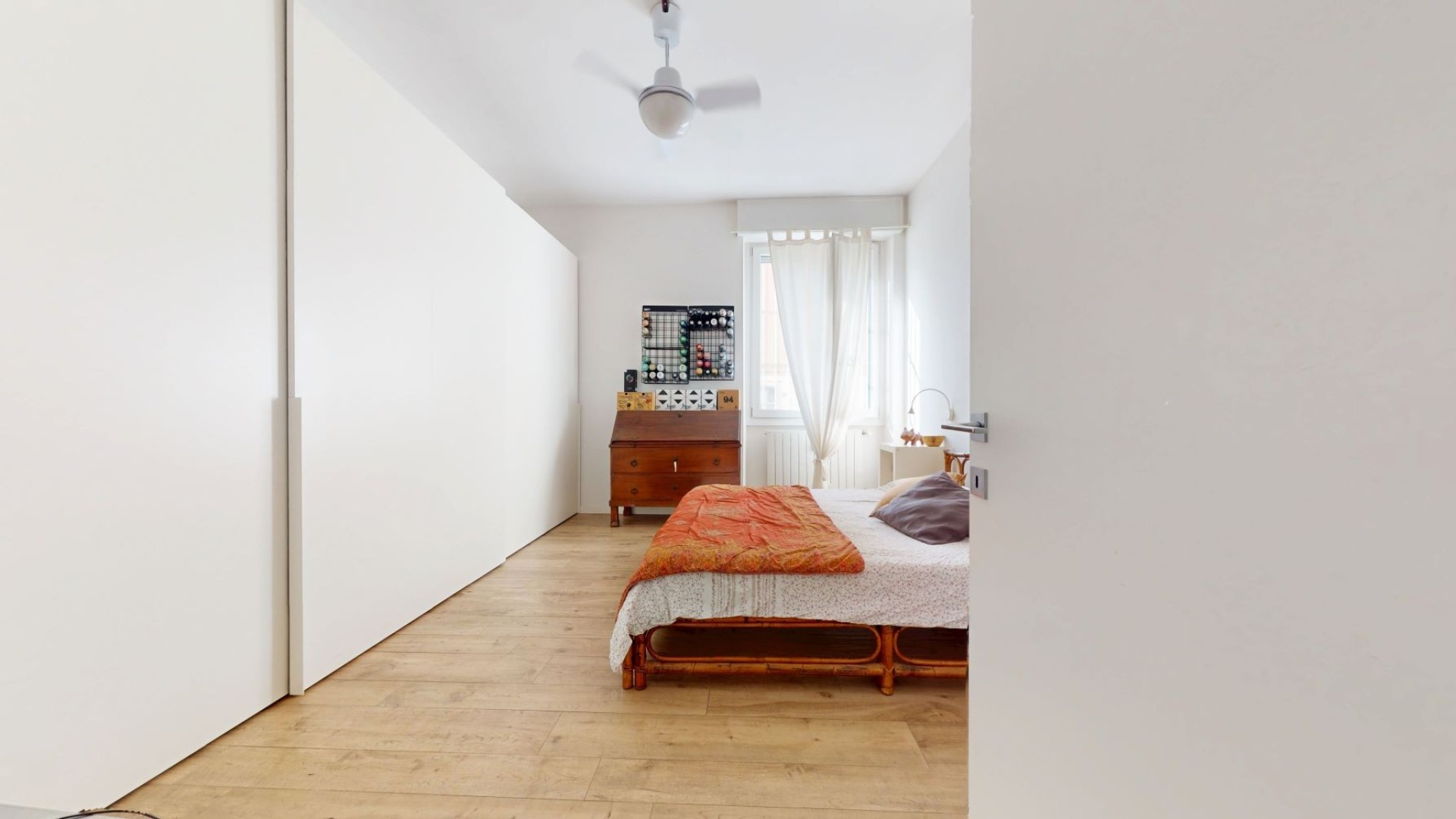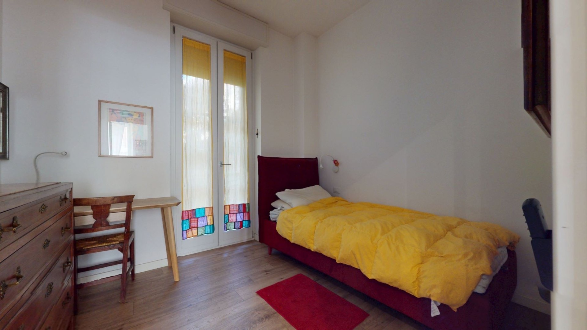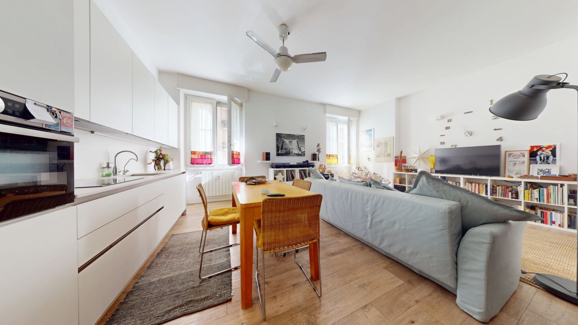 L’appartamento è situato al piano rialzato di un contesto tranquillo e ben tenuto in uno stabile d’epoca. L'ingresso si apre su un ampio soggiorno con cucina a vista, caratterizzato da grandi finestre che affacciano sulla strada e donano una piacevole luminosità agli ambienti. La zona notte è composta da due camere da letto, una delle quali dispone di una cabina armadio e dell’accesso a un balcone con affaccio interno sul cortile, mentre l’altra ha una finestra che guarda sulla strada. Nel disimpegno è presente un pratico armadio a muro che ospita un ripostiglio, ideale per ottimizzare lo spazio e mantenere ordine all’interno dell’abitazione. Il bagno è finestrato e affaccia sul balcone, risultando ben arieggiato. L’appartamento è rifinito con un parquet prefinito di ottima qualità, infissi in doppio vetro con apertura vasistas, inferriate di sicurezza e zanzariere.