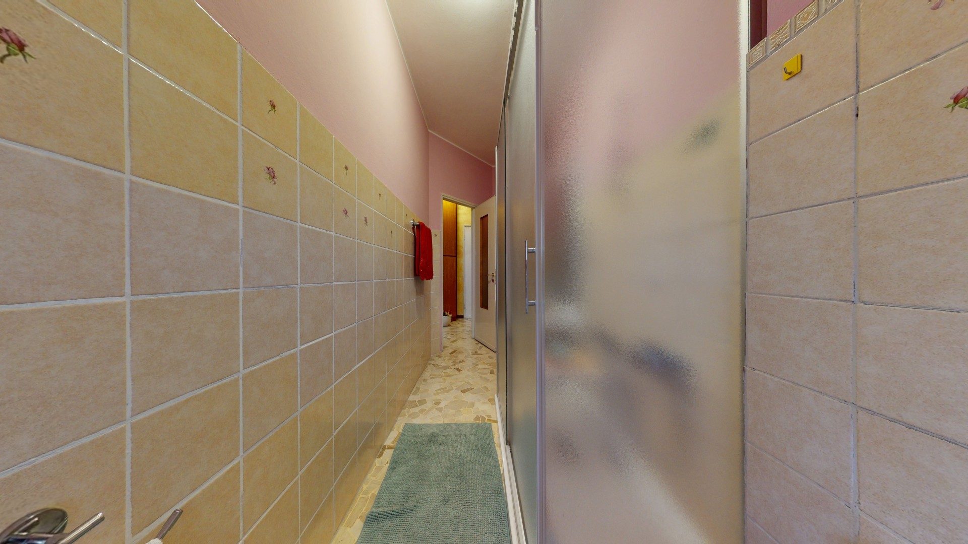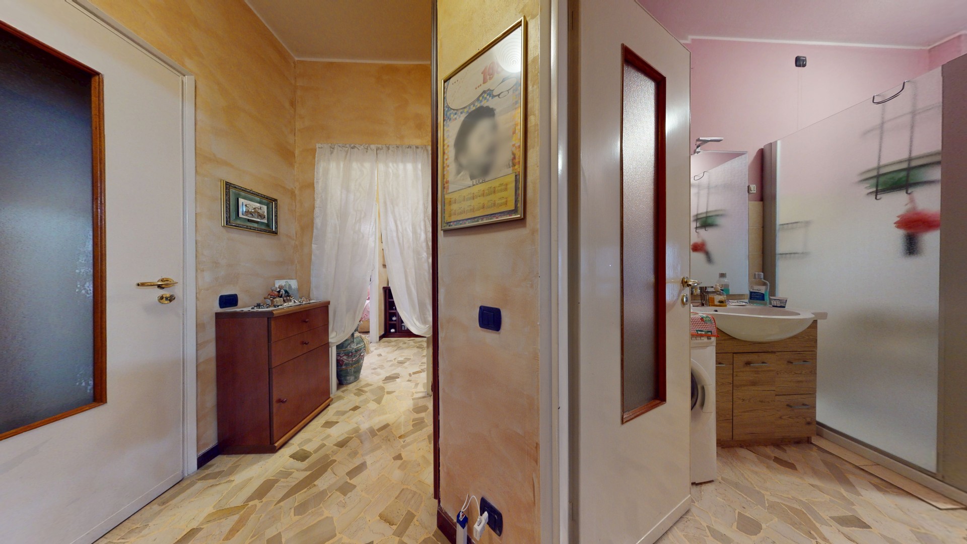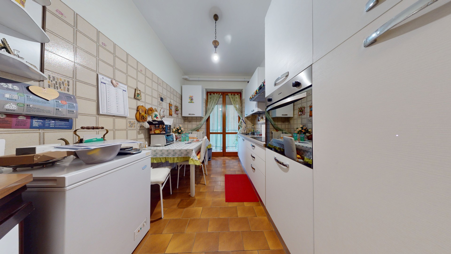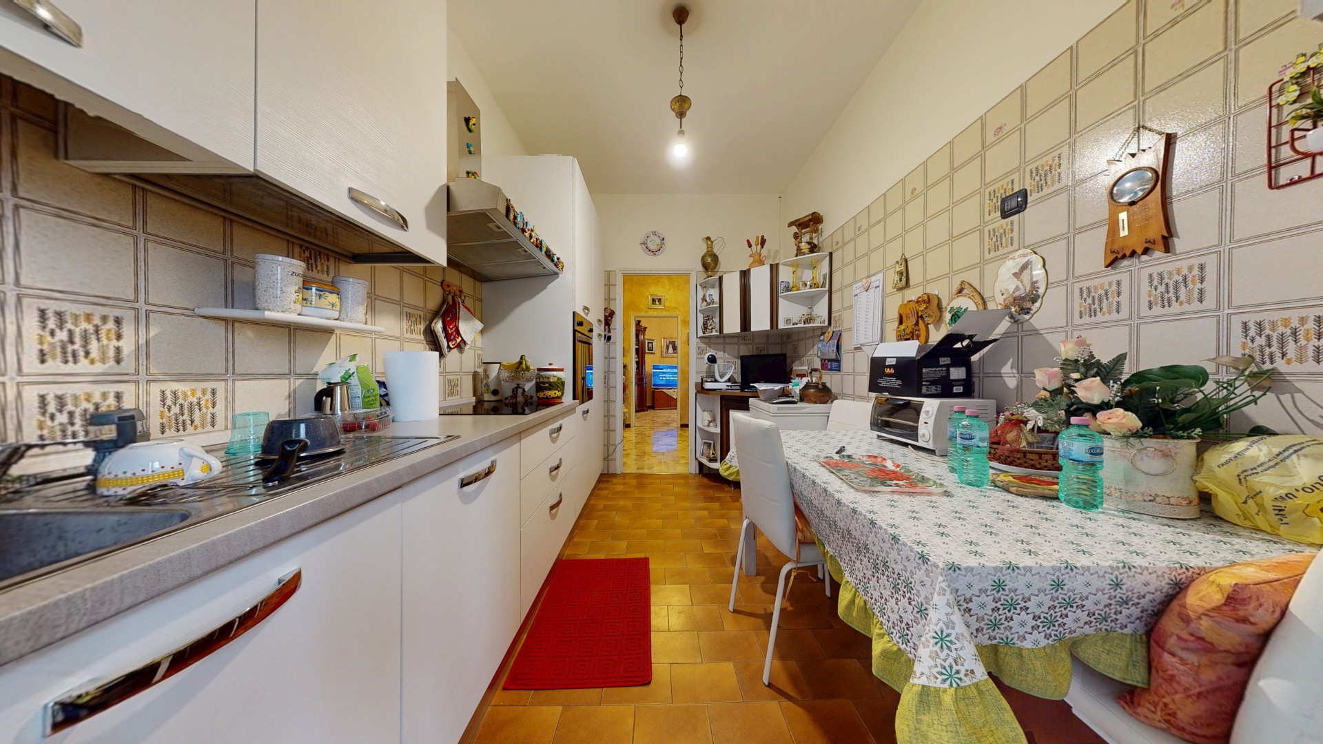 L’appartamento si compone di un ingresso su disimpegno che conduce, sulla sinistra, alla cucina abitabile con balcone ed esposizione a sud, mentre sulla destra si accede al soggiorno, dotato di porta finestra ed esposto a nord. Proseguendo dal disimpegno si entra nel corridoio, dove si trovano un comodo ripostiglio, il bagno finestrato con box doccia e sanitari sospesi, anch'esso esposto a sud e la camera da letto con balcone, dotata di split per l'aria condizionata ed esposizione a ovest.