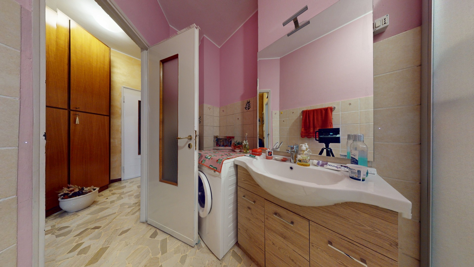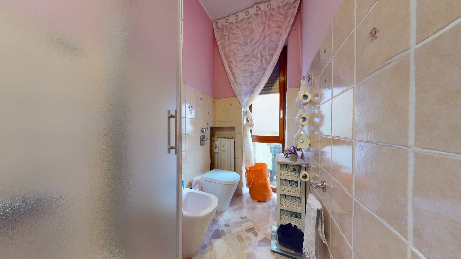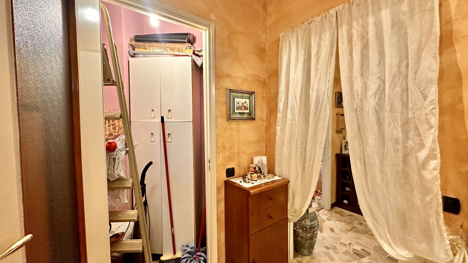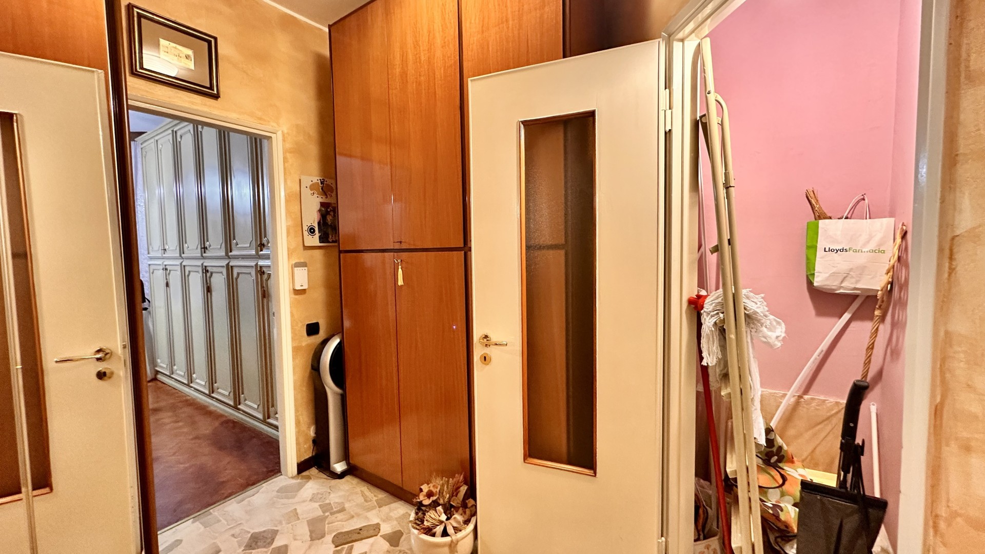 L’appartamento si compone di un ingresso su disimpegno che conduce, sulla sinistra, alla cucina abitabile con balcone ed esposizione a sud, mentre sulla destra si accede al soggiorno, dotato di porta finestra ed esposto a nord. Proseguendo dal disimpegno si entra nel corridoio, dove si trovano un comodo ripostiglio, il bagno finestrato con box doccia e sanitari sospesi, anch'esso esposto a sud e la camera da letto con balcone, dotata di split per l'aria condizionata ed esposizione a ovest.