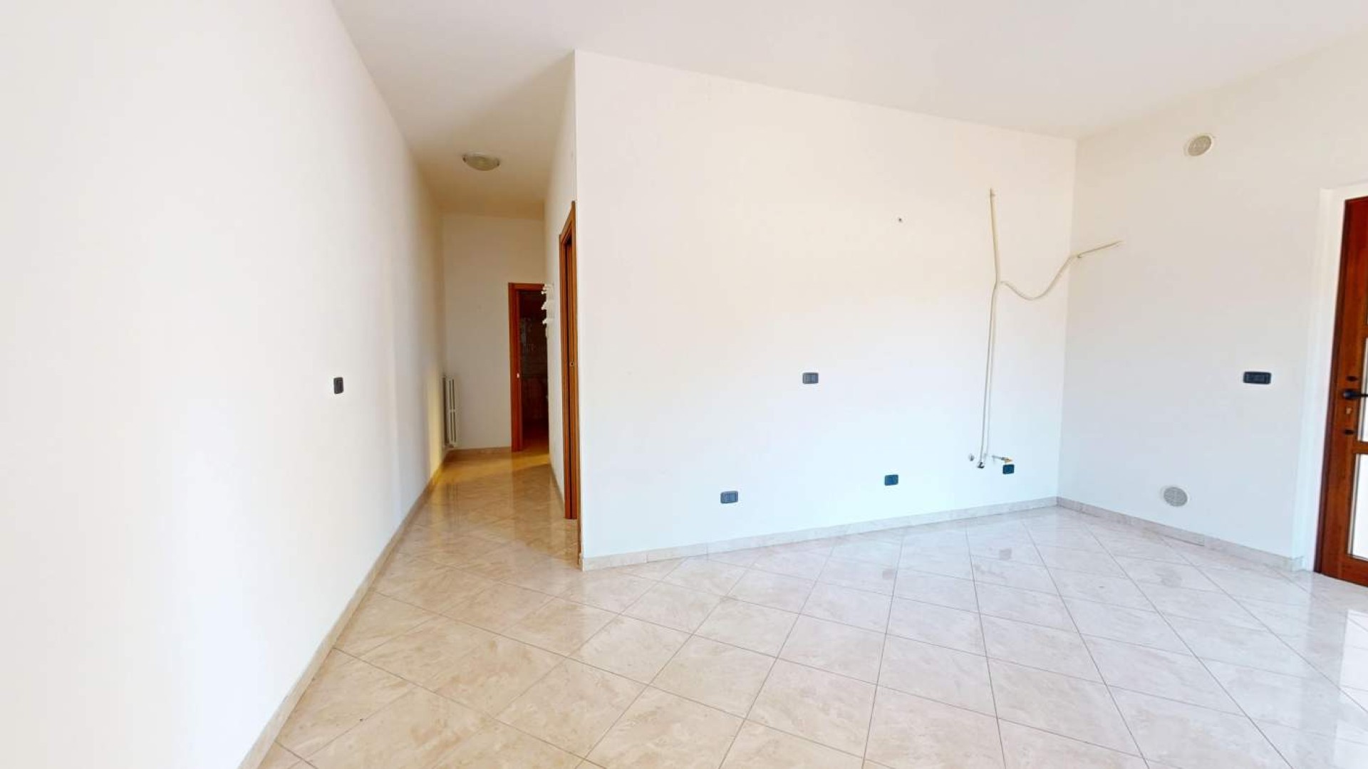 L’ingresso si apre su una luminosa zona giorno con cucina a vista, un ambiente accogliente e ben organizzato che offre uno spazio conviviale perfetto per la vita quotidiana.
