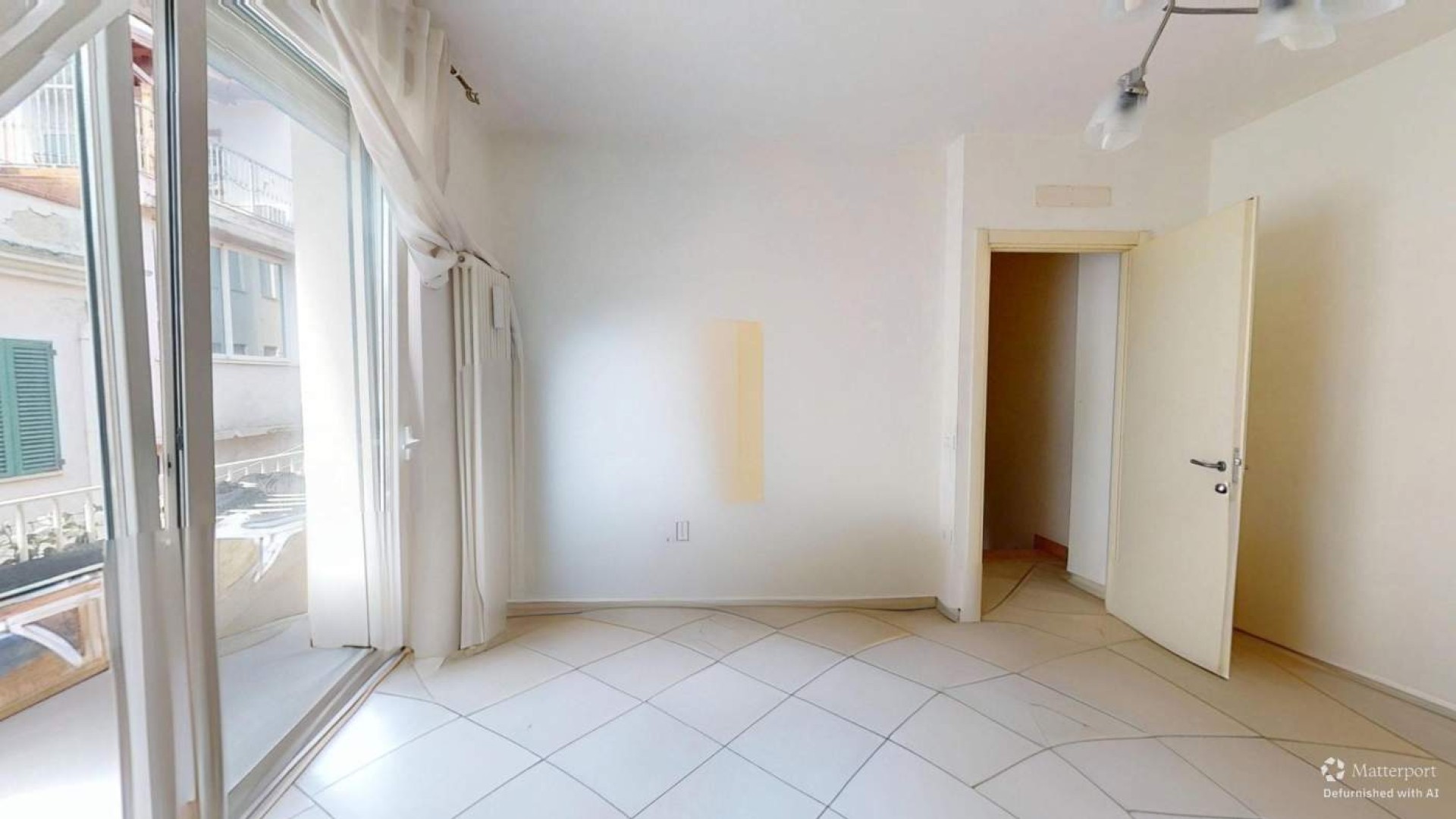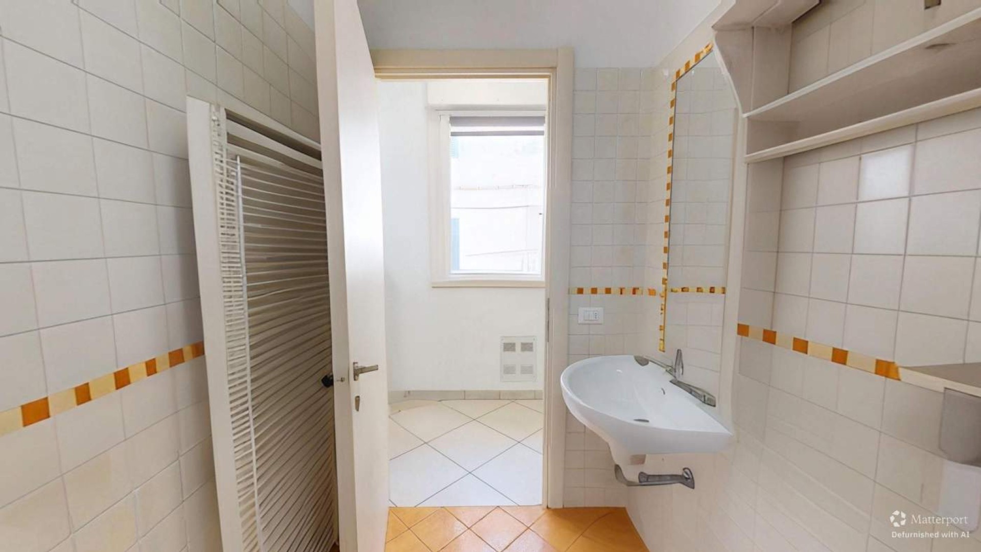Qui trovano spazio un disimpegno, un bagno con box doccia dotato di sistema di aerazione forzata e un ampio e luminoso soggiorno con cucina a vista, perfettamente organizzato e valorizzato dall’accesso diretto a un balcone che dona ariosità e luce naturale all’ambiente.