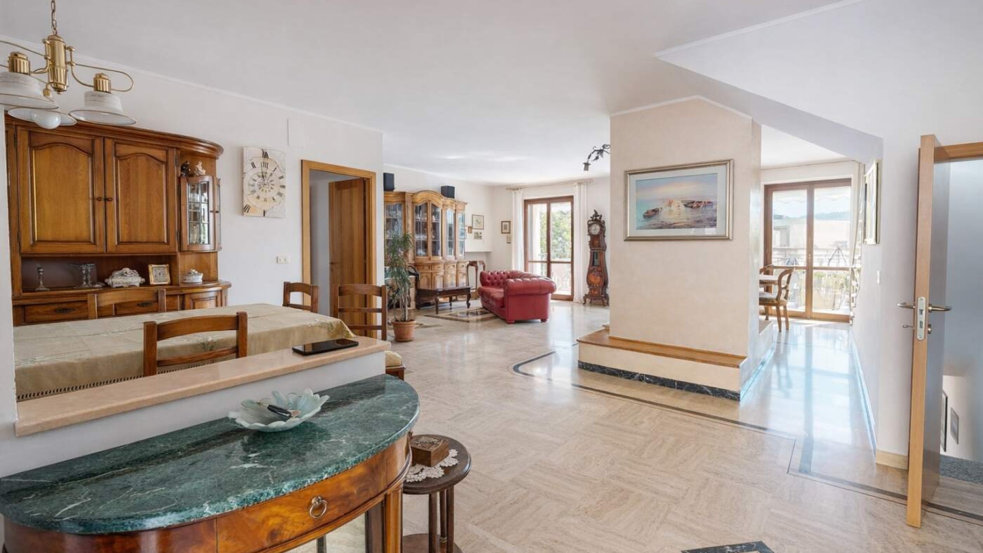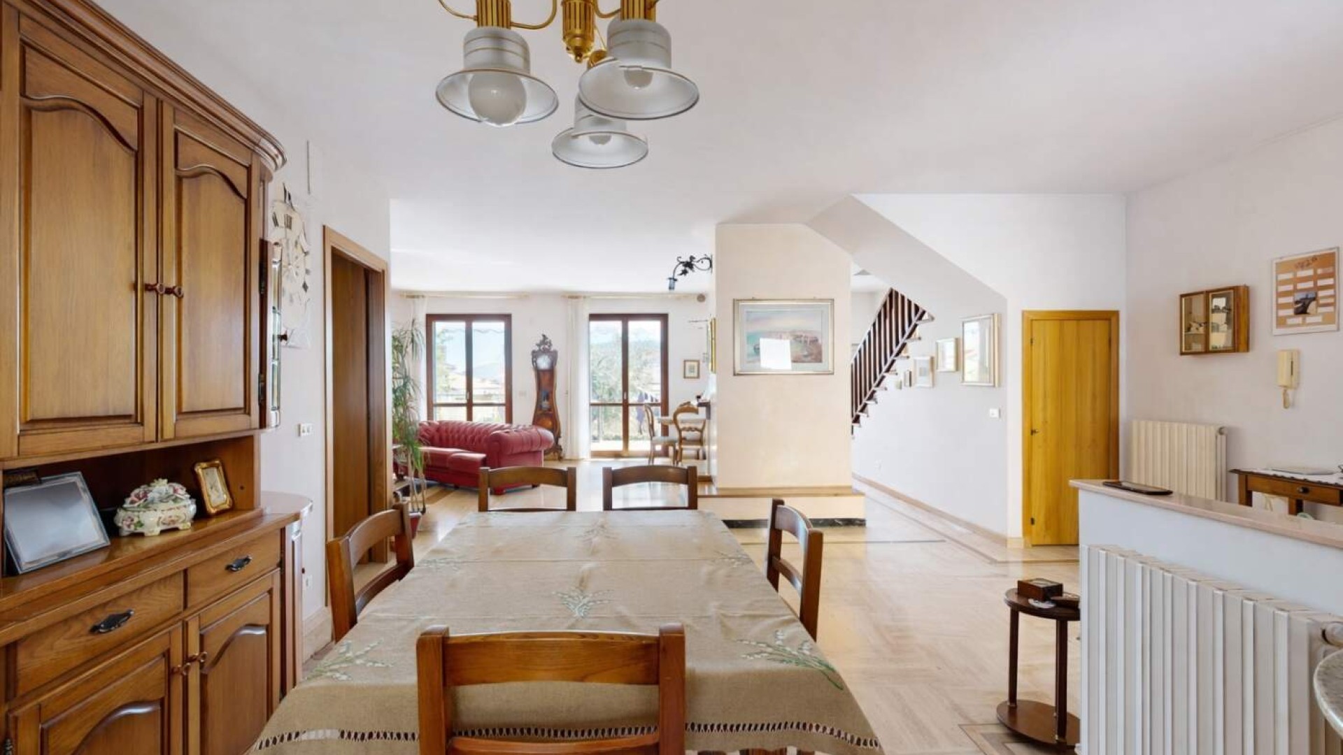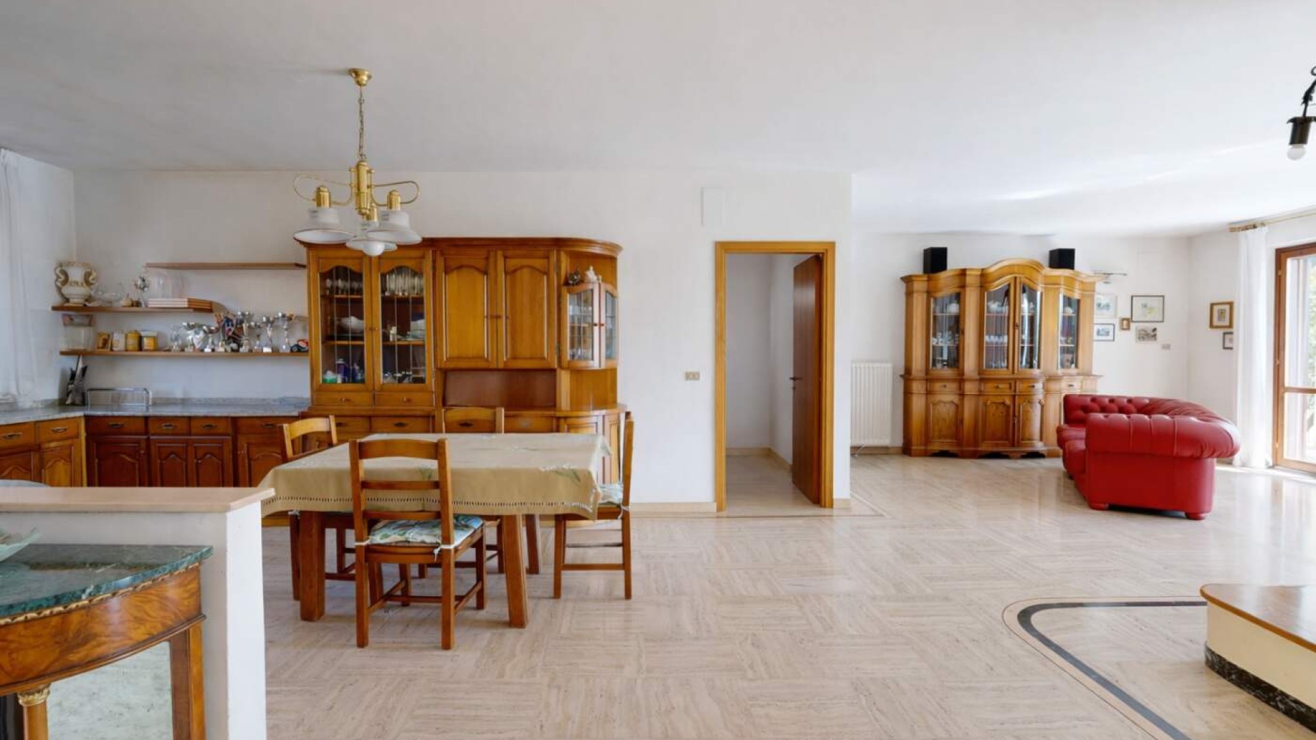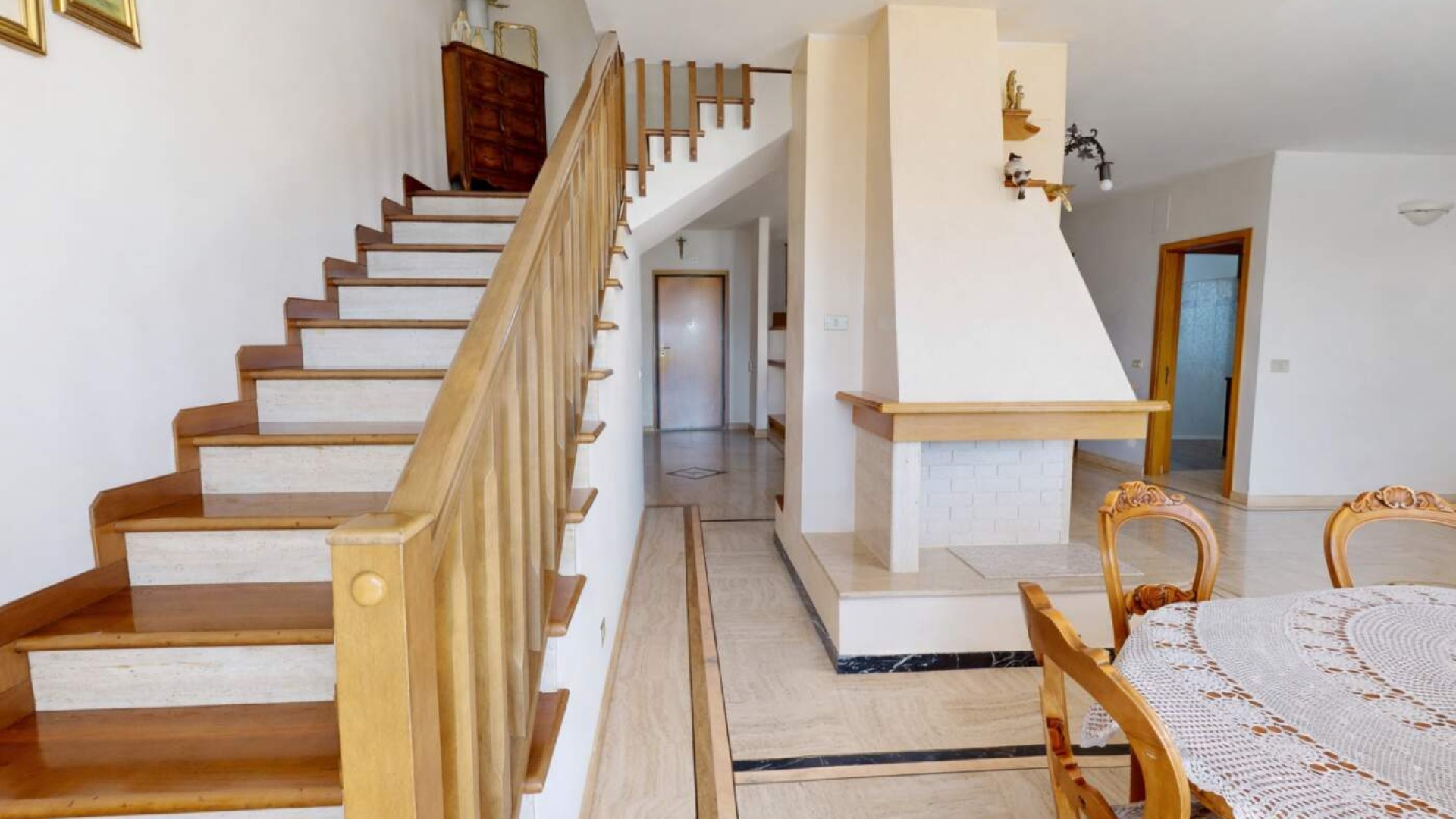 Varcata la soglia si viene accolti da un ampio e luminoso soggiorno, ambiente raffinato impreziosito dal camino, dove gli spazi sono pensati per offrire comfort e convivialità.