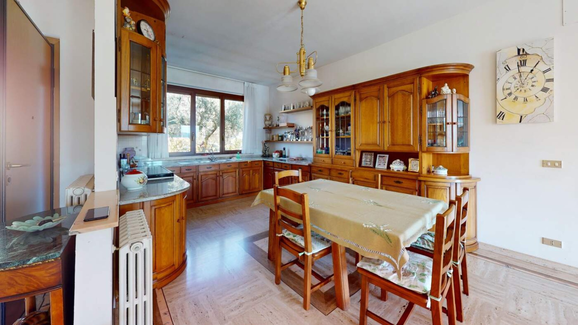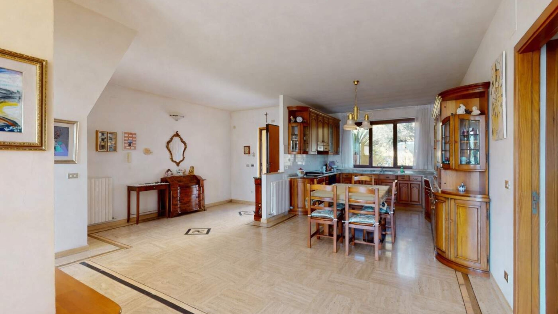 La cucina a vista abitabile si integra perfettamente con la zona living creando un’atmosfera calda e familiare, ideale per vivere momenti quotidiani e occasioni speciali.