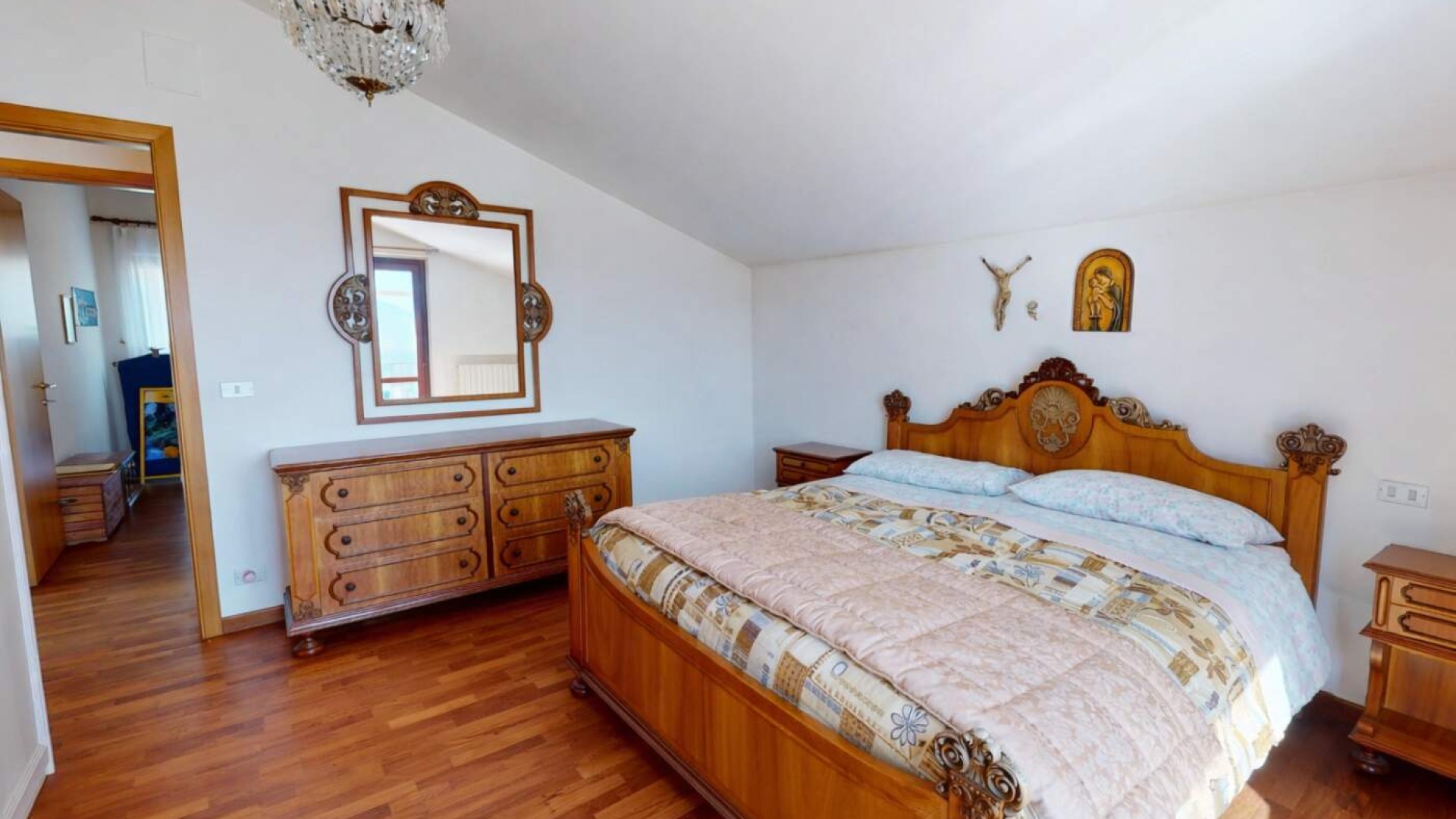Salendo al primo piano si sviluppa la zona notte, caratterizzata da ambienti ampi, luminosi e ben distribuiti.