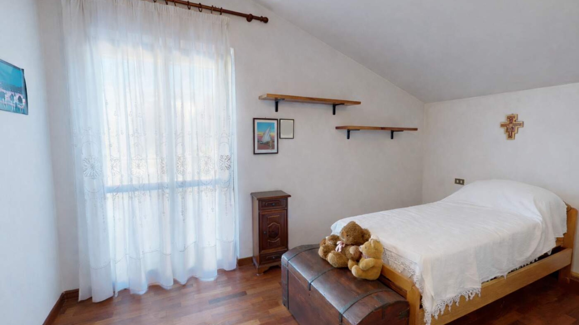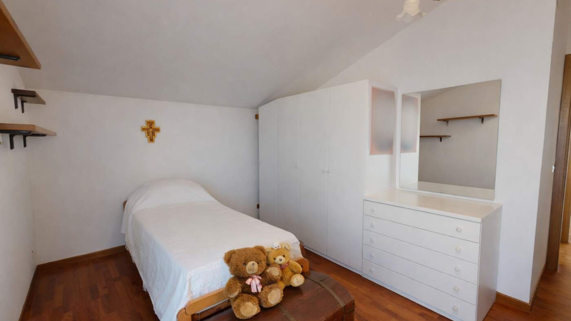 Il piano è completato da un bagno finestrato con vasca, anch’esso con uscita diretta sul terrazzo.