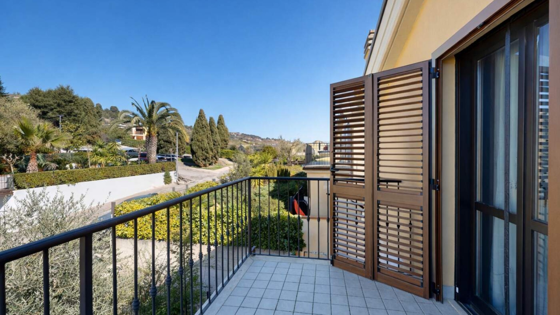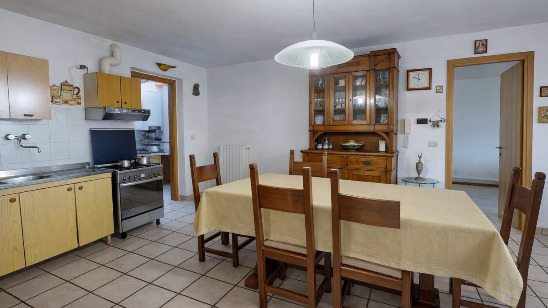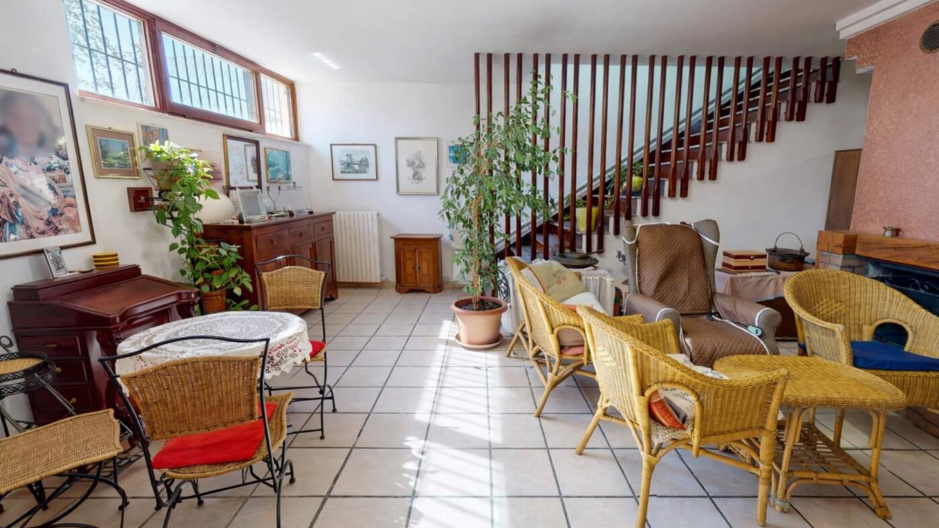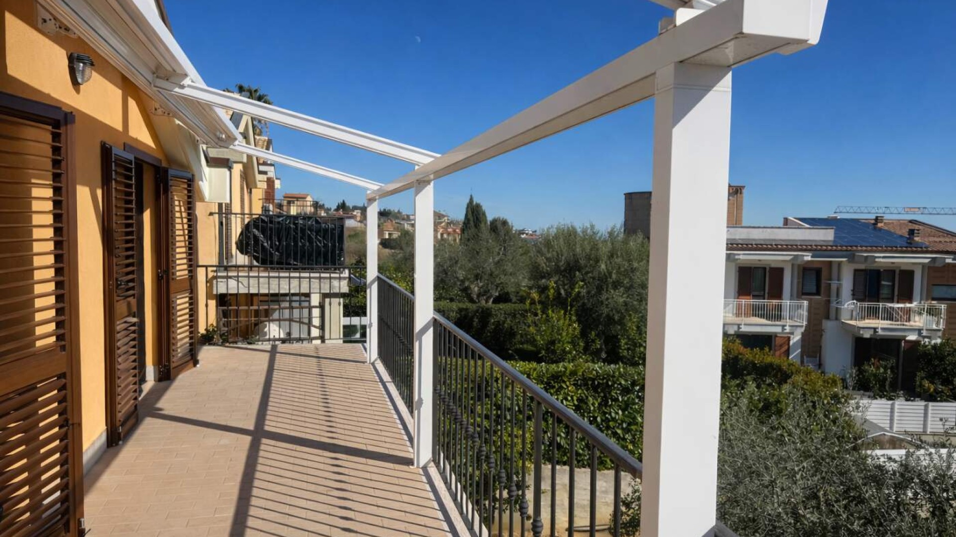 La zona giorno si apre naturalmente verso l’esterno grazie all’accesso diretto al terrazzo di circa 17 mq, uno spazio piacevole che collega la casa al giardino retrostante.
