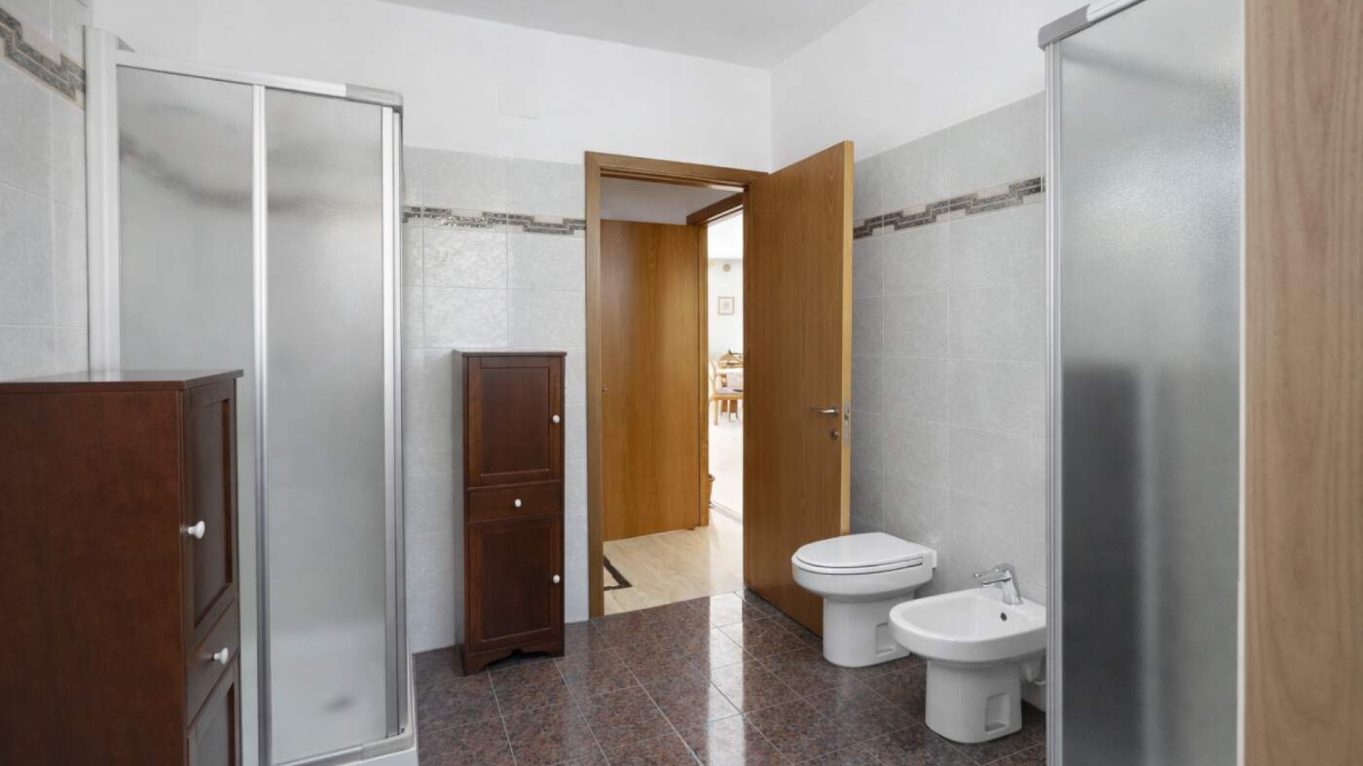 Qui troviamo quattro camere matrimoniali, tutte con accesso ai terrazzi abitabili per circa 42 mq complessivi, spazi ideali per godere della luce naturale e della continuità con l’esterno.