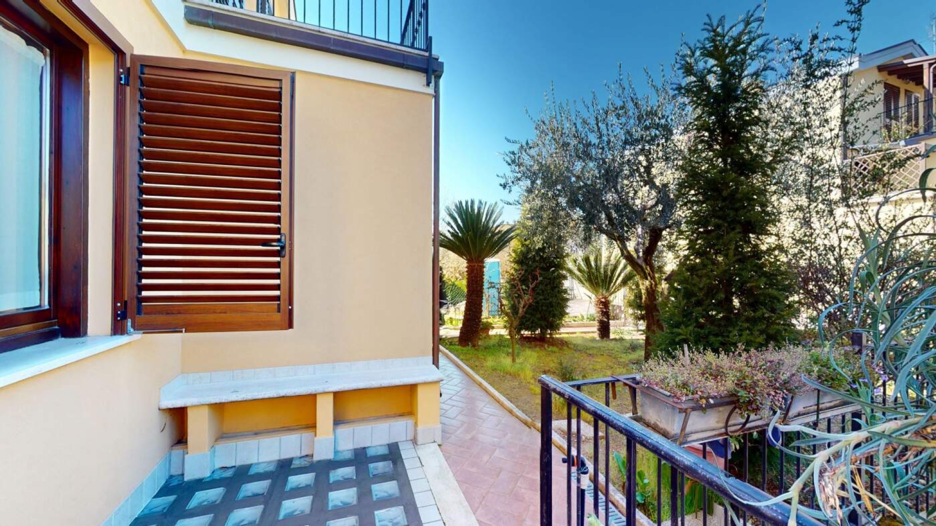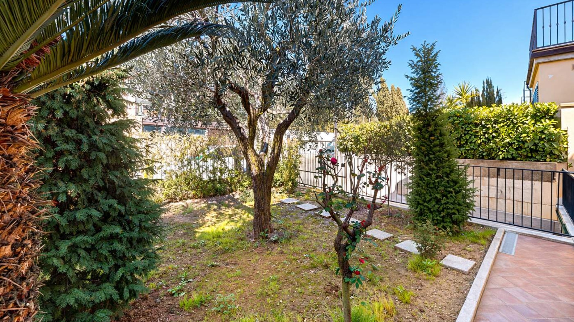Attraverso una graziosa scala esterna si raggiunge infatti una seconda area verde privata di oltre 125 mq, affiancata da una corte pavimentata di circa 12 mq, un contesto perfetto per trascorrere momenti di relax all’aria aperta, organizzare cene estive o vivere appieno gli spazi esterni in totale privacy.