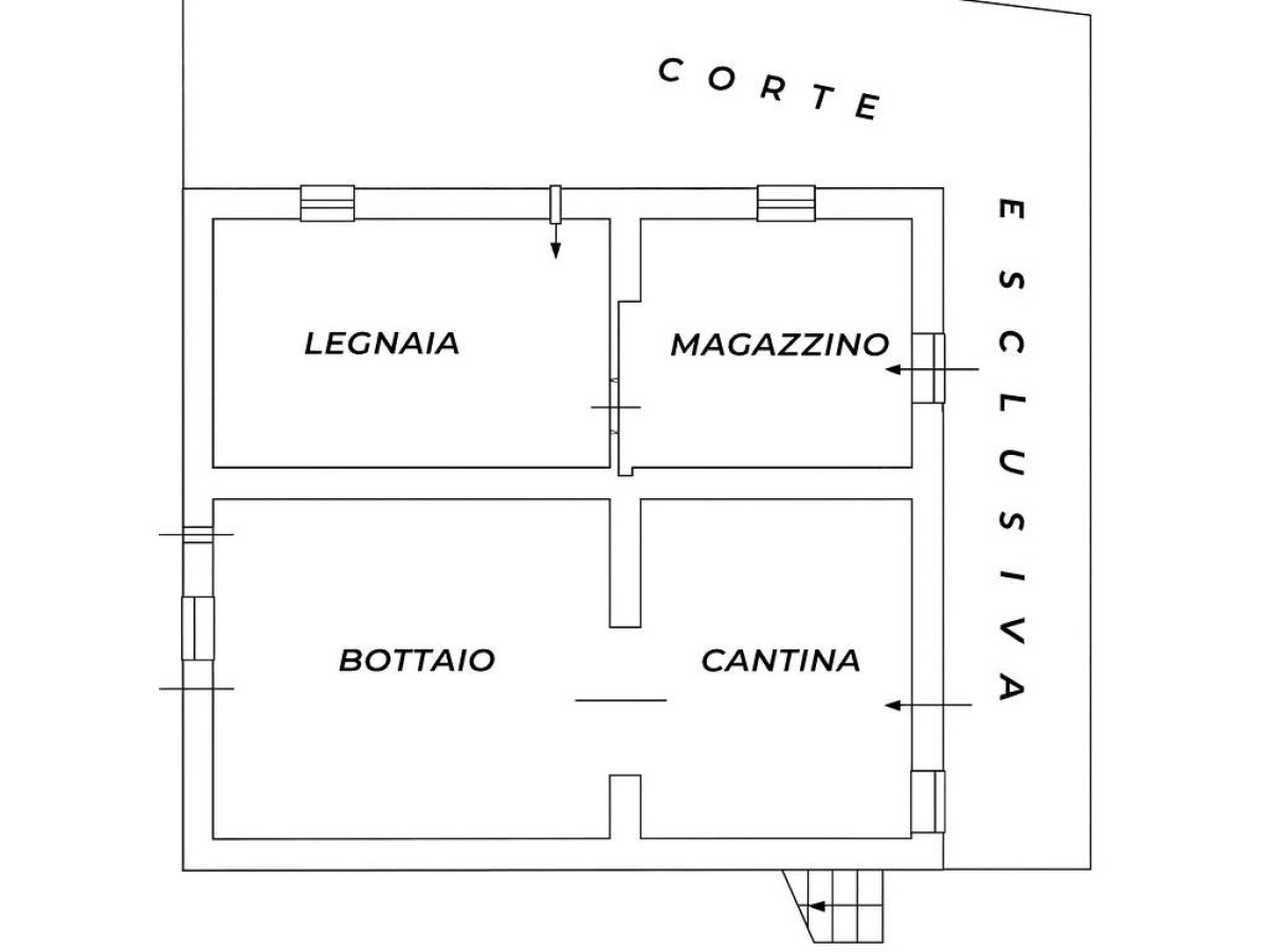Al piano terra troviamo una legnaia, un magazzino, un bottaio ed una cantina.