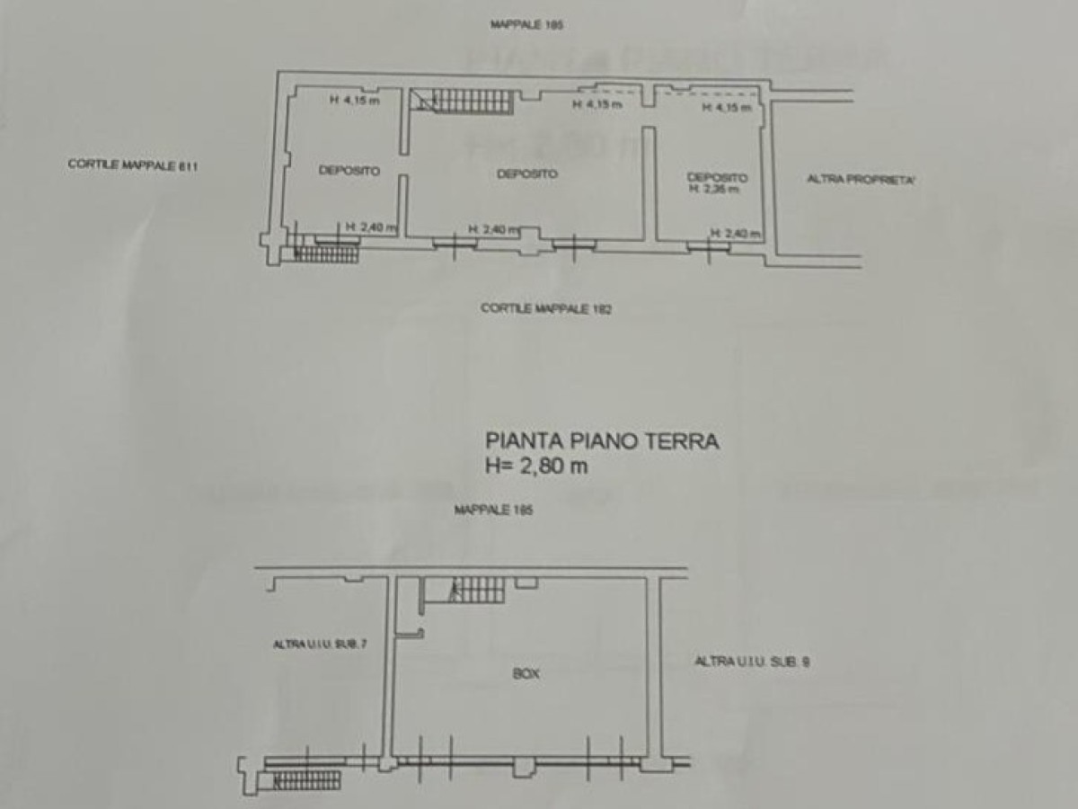 Al primo piano troviamo due box, uno doppio e uno singolo, che garantiscono una comoda capacità di accesso e ricovero per più veicoli oppure possono essere utilizzati come area di lavoro o carico e scarico merci. Proseguendo al piano superiore si accede a tre locali distinti, attualmente adibiti a deposito, ideali per organizzare al meglio materiali, attrezzature o archivi, grazie alla loro suddivisione interna che consente una gestione ordinata degli spazi.