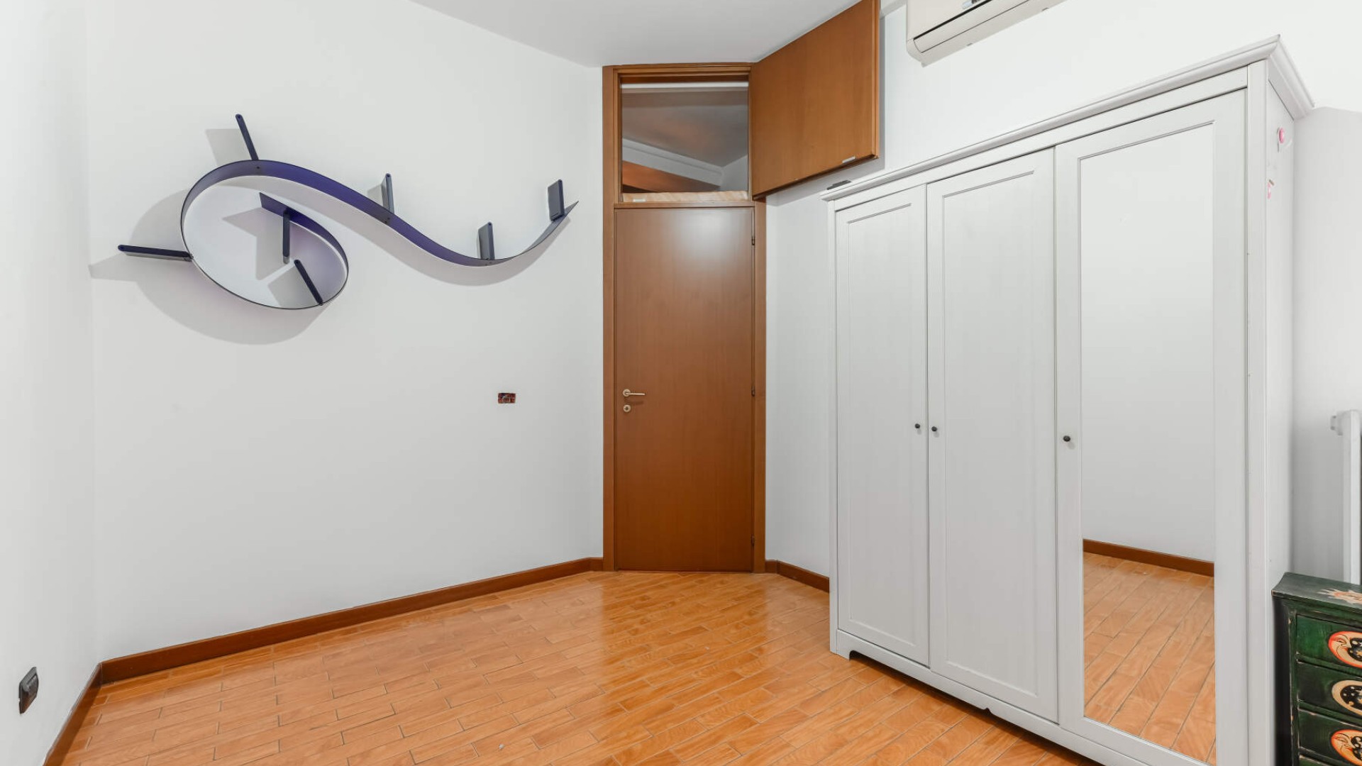 La zona notte comprende una camera matrimoniale padronale con cabina armadio e secondo balcone privato, oltre a una cameretta perfetta per figli, ospiti o come studio.