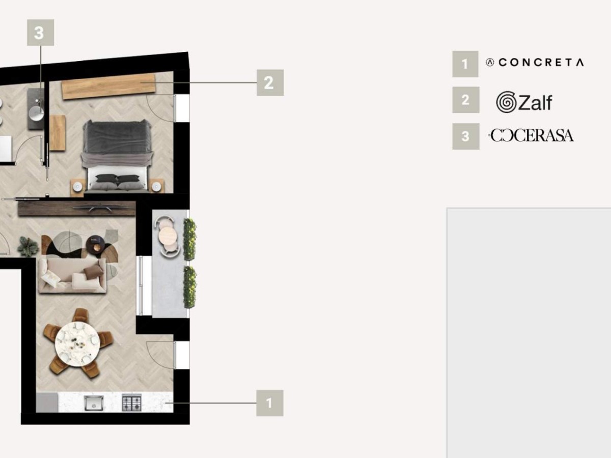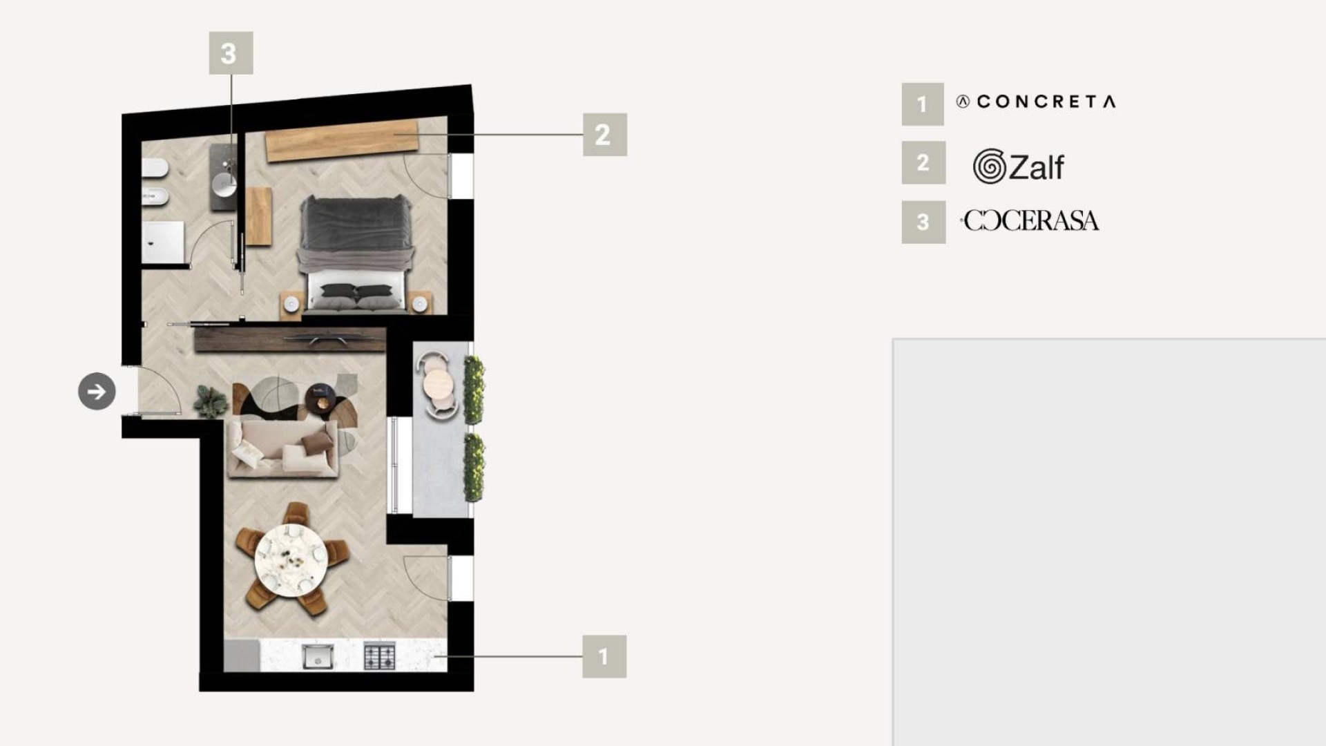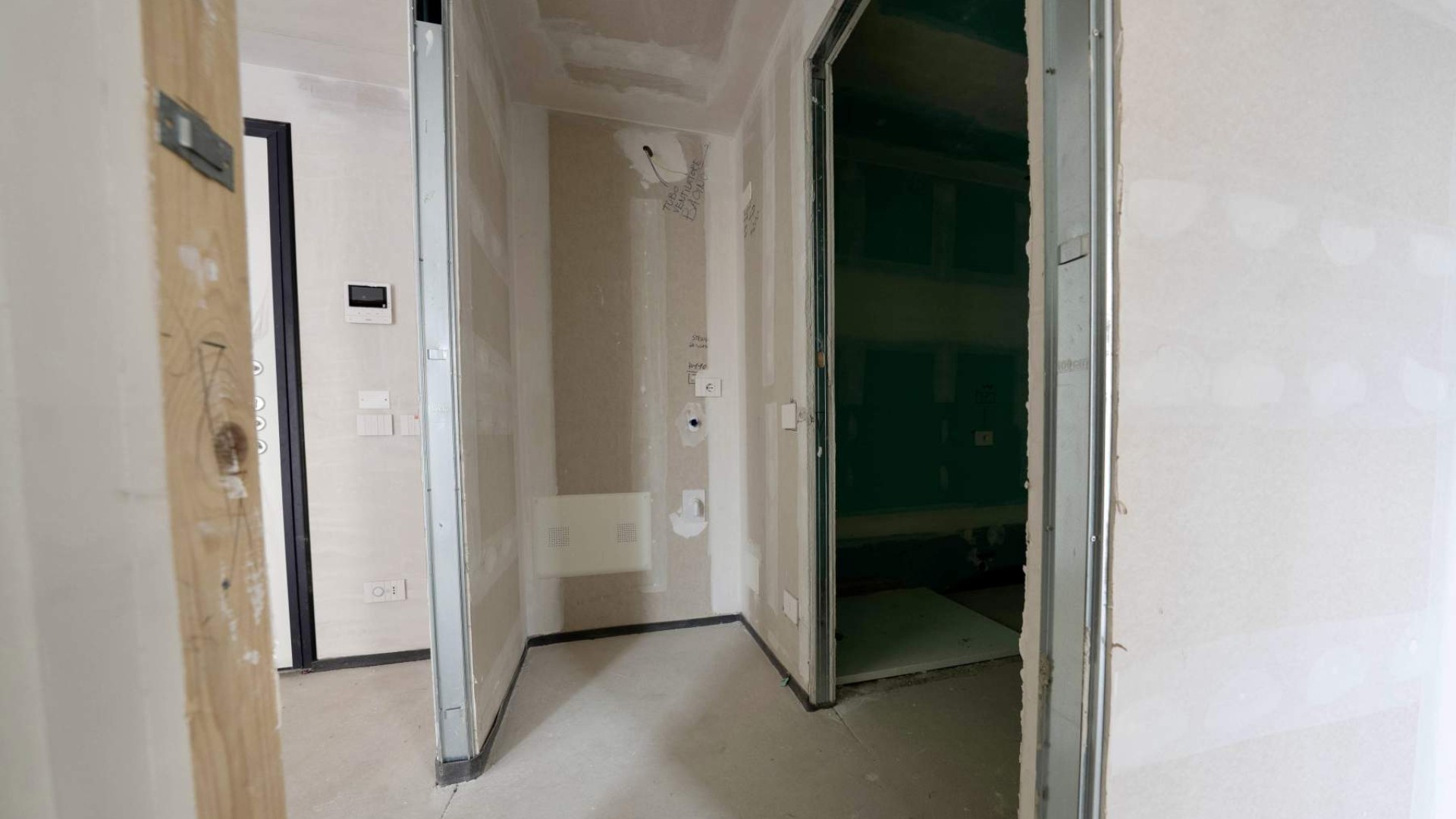 L’appartamento si apre su un ingresso con disimpegno che conduce all’ampio soggiorno con cucina a vista e accesso al balcone con affaccio esterno. Adiacente si trova la camera matrimoniale e un bagno finestrato completo di box doccia in cristallo.La soluzione, parzialmente arredata con gusto e mai abitata, offre comfort, efficienza e stile in un ambiente moderno e funzionale.