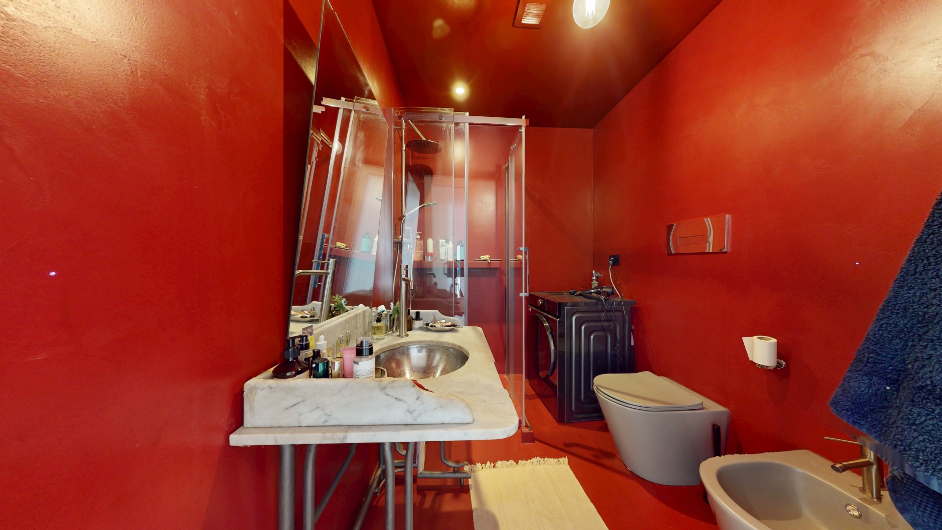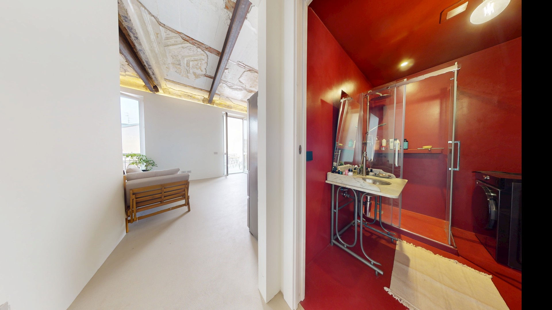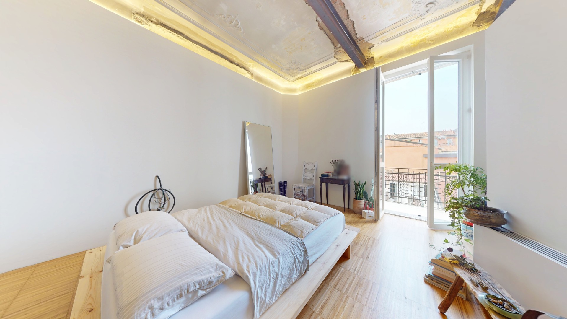 La zona notte è caratterizzata dalla camera da letto matrimoniale, ampia e luminosa, anch’essa dotata di accesso diretto al terrazzo, caratteristica che dona continuità tra gli spazi interni ed esterni e rende l’ambiente particolarmente arioso e piacevole.