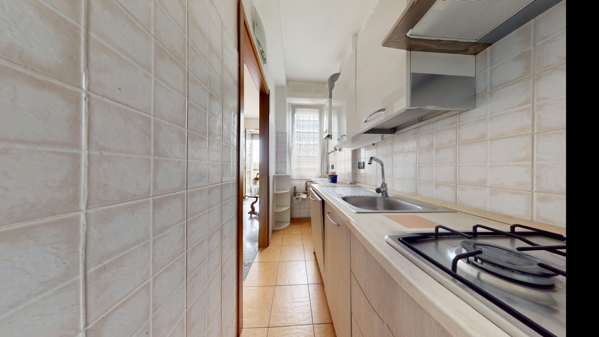 L’ingresso si apre su un disimpegno che collega direttamente alla zona giorno. Da qui si accede a un soggiorno ampio e luminoso, valorizzato dalla presenza di una finestra e di una porta finestra che conduce al balcone. Dal soggiorno si entra in un cucinotto finestrato, comodo e funzionale. Un corridoio conduce infine alla zona notte composta da una camera matrimoniale spaziosa e molto luminosa, anch’essa finestrata. Completa l’abitazione un bagno finestrato.