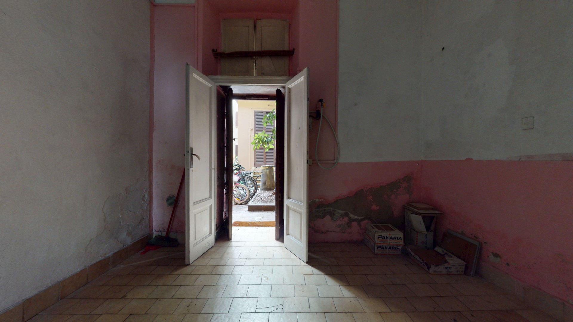 L’ingresso si apre sulla zona giorno, comoda e funzionale, resa particolarmente luminosa grazie alla grande vetrina che dona luce naturale e affaccio sulla strada, creando un ambiente accogliente e ben vivibile. Proseguendo troviamo un secondo ampio locale, facilmente adibibile a camera matrimoniale, studio o stanza hobby, con accesso al cortile interno che garantisce tranquillità e uno sfogo esterno riservato.