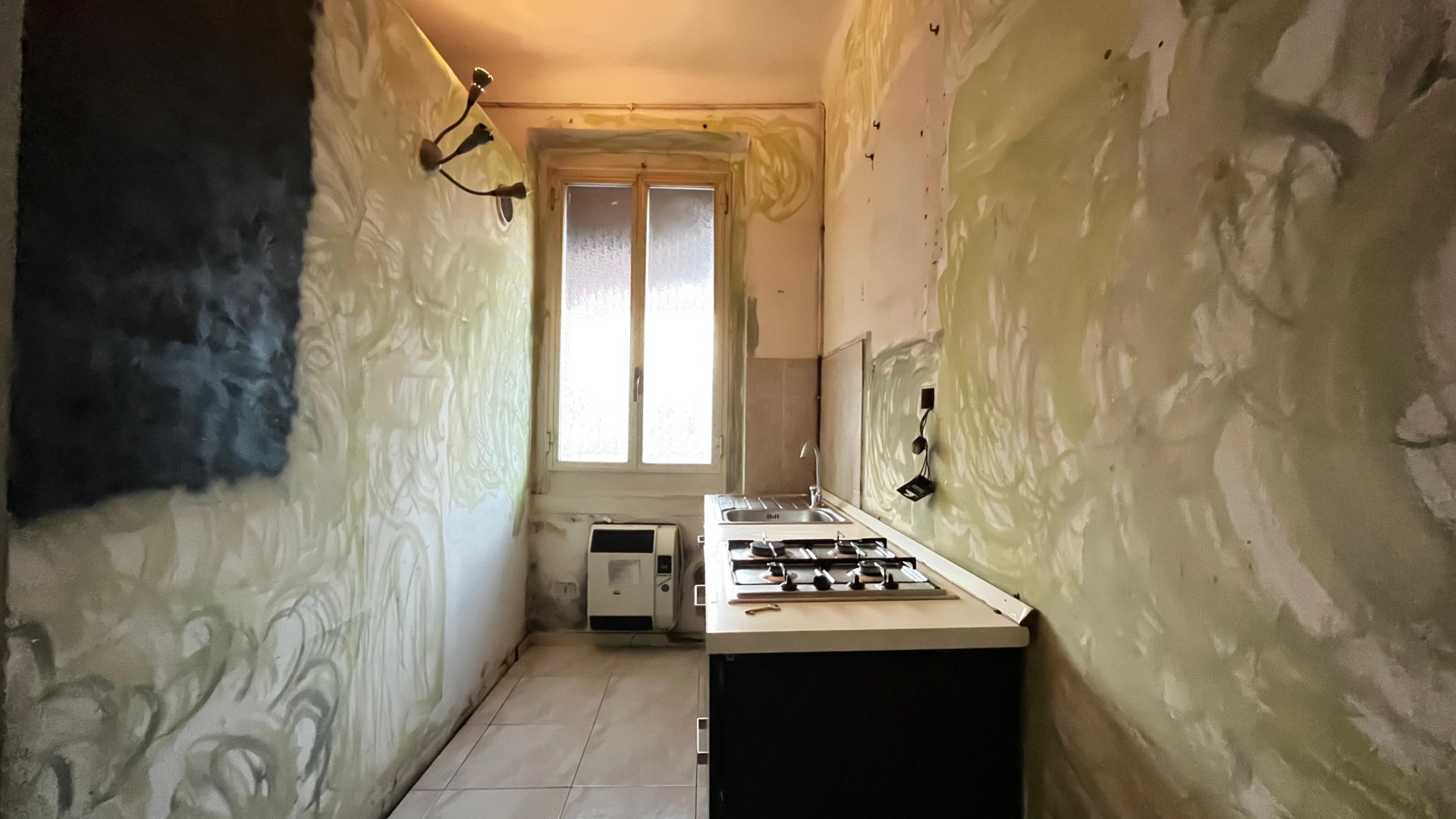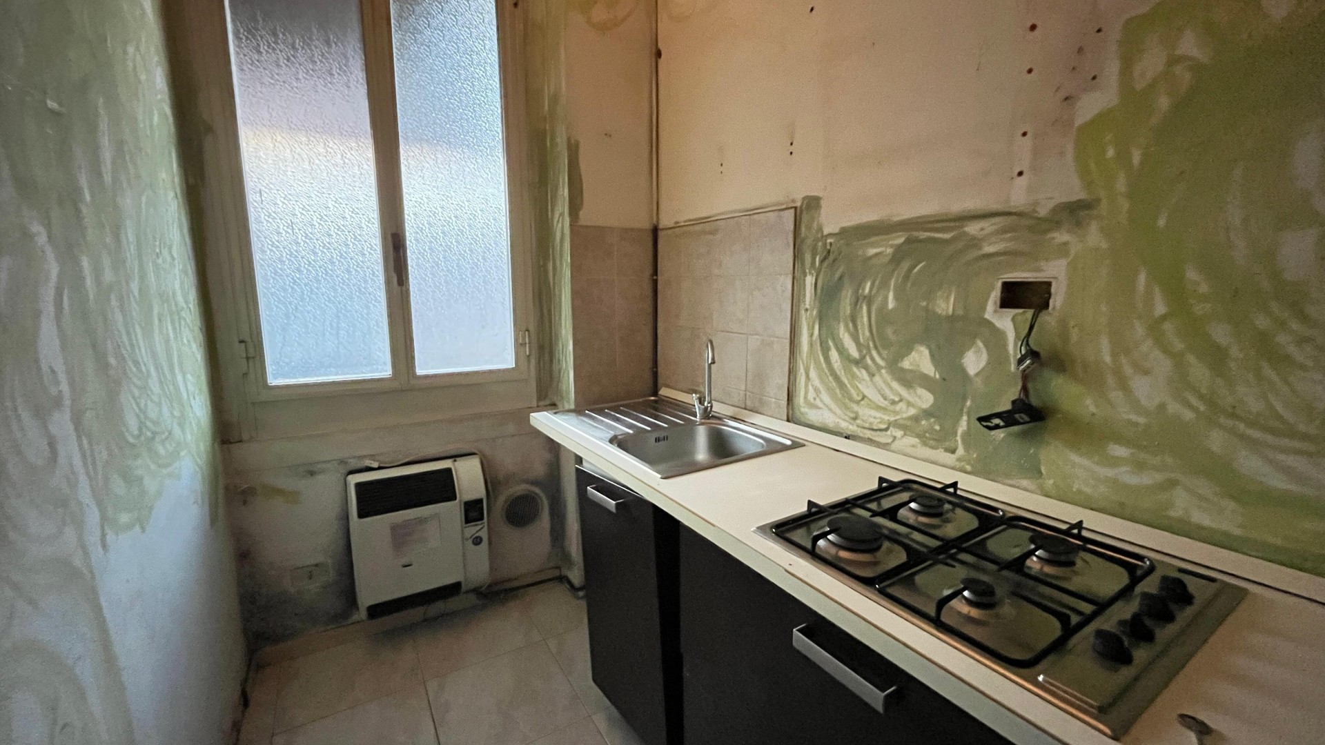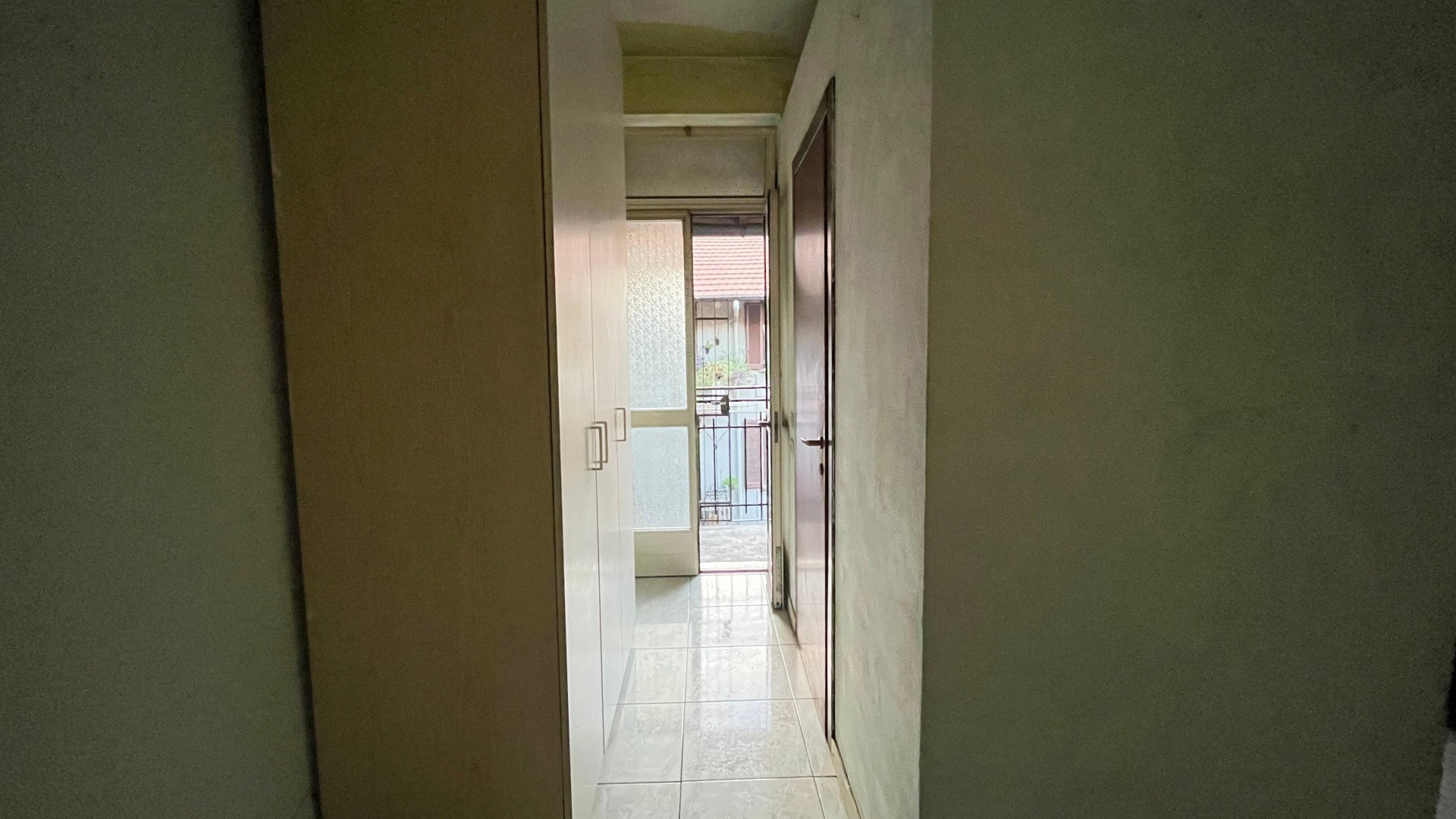 L’ingresso, posto sul ballatoio comune, conduce direttamente alla stanza principale, luminosa grazie a una finestra. L’unità abitativa è completata da un bagno e da una cucina.