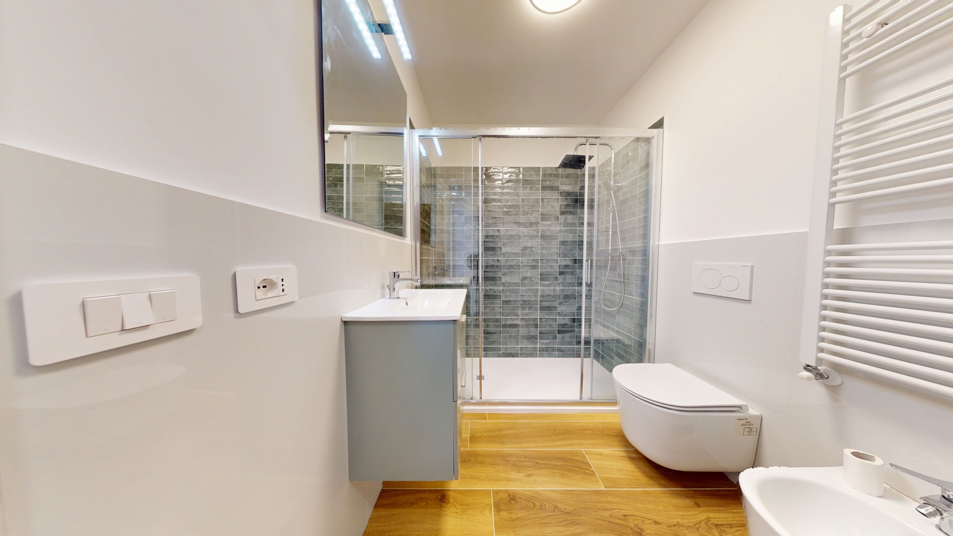 L’immobile, recentemente ristrutturato a nuovo, si presenta in ottime condizioni ed è rifinito con gres porcellanato.