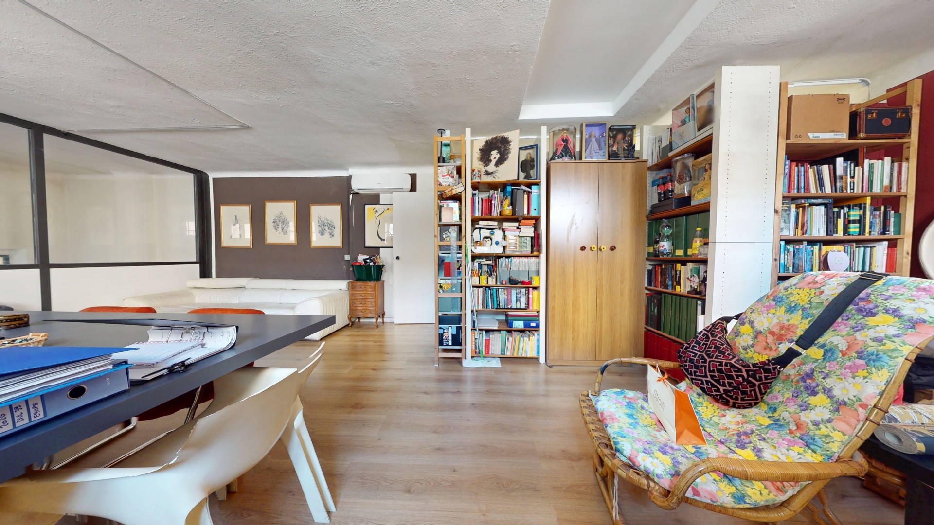 L'immobile gioca con i volumi e le altezze, distribuendo i suoi 200 mq su tre dimensioni connesse tra loro: