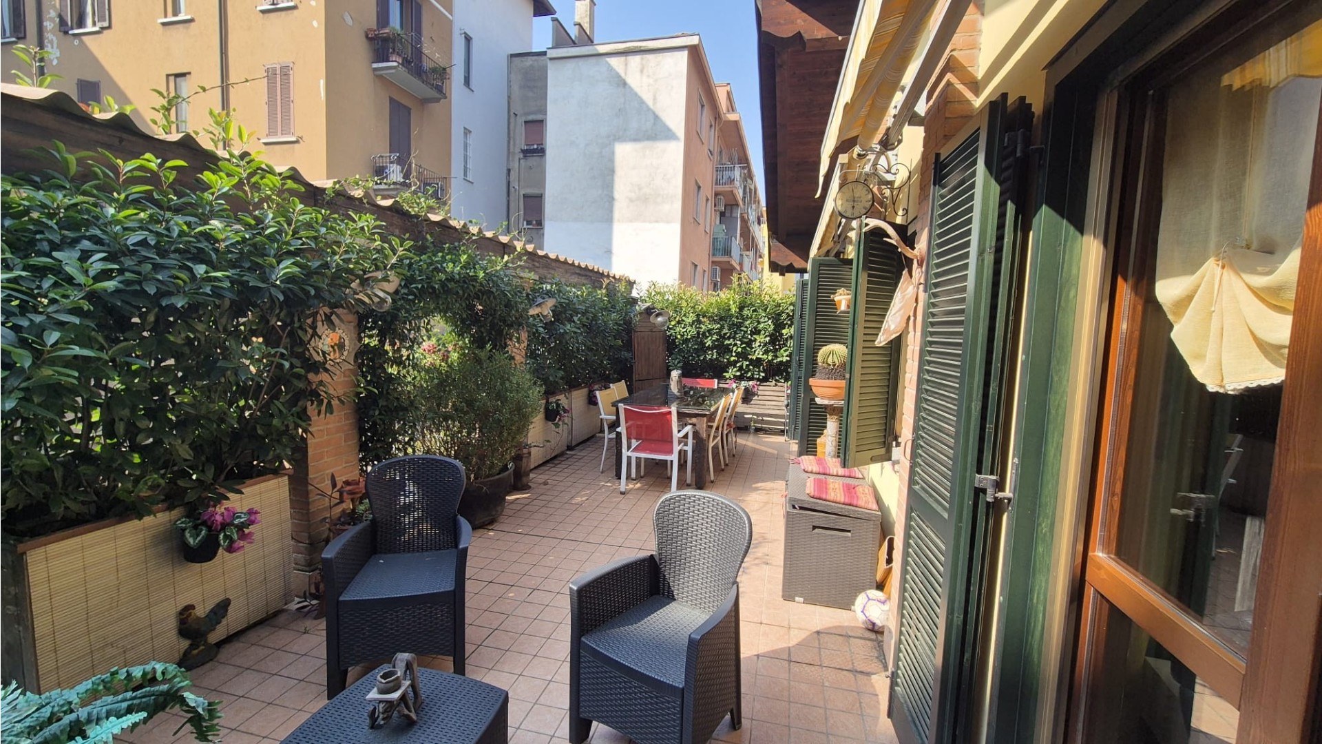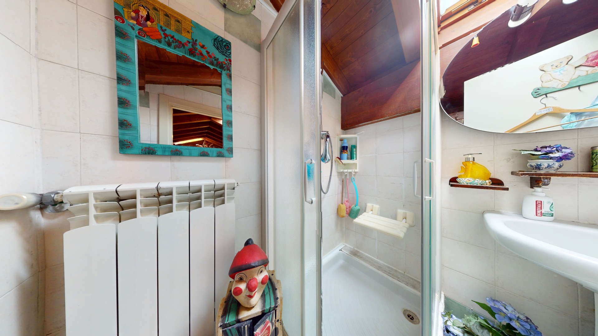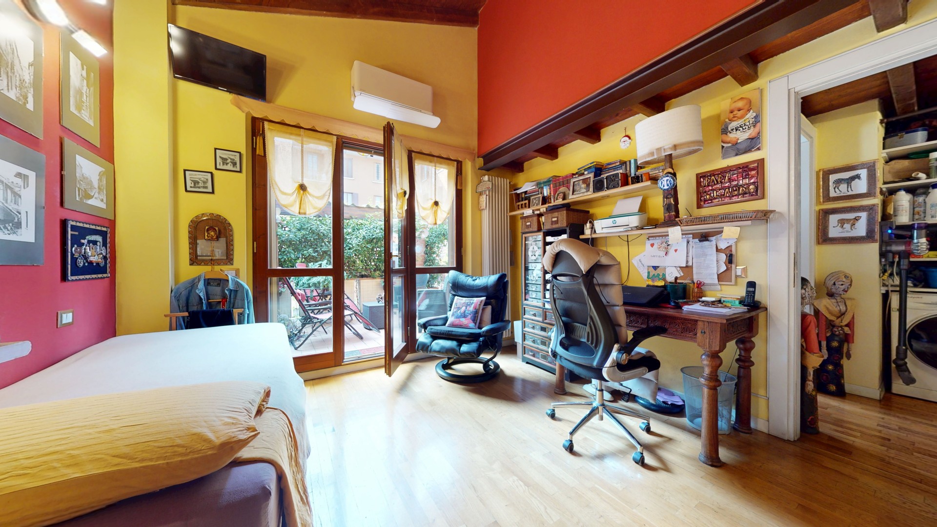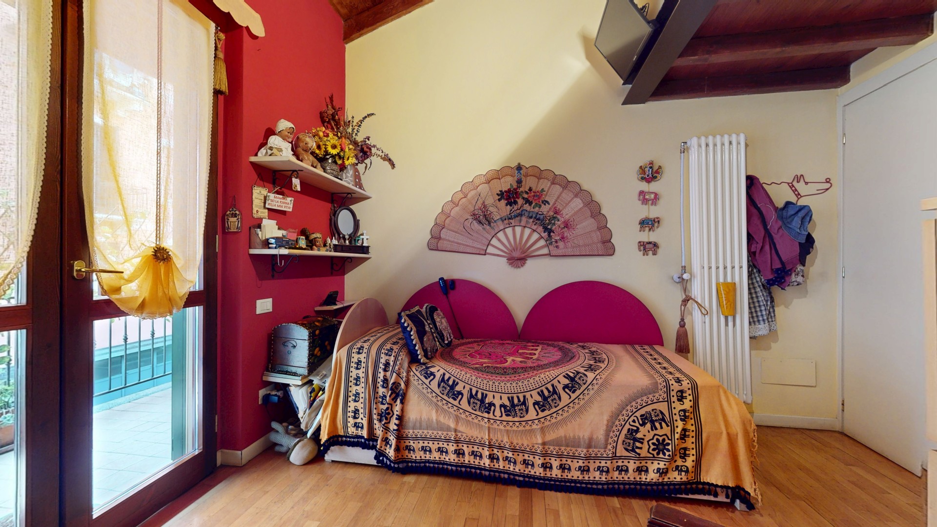 La zona notte è ben distribuita e comprende due camere da letto, entrambe luminose e silenziose: la prima dispone di un balcone privato, mentre la seconda si affaccia direttamente sul terrazzo. Completa il piano un bagno finestrato, anch’esso con affaccio al terrazzo, che garantisce luce naturale.