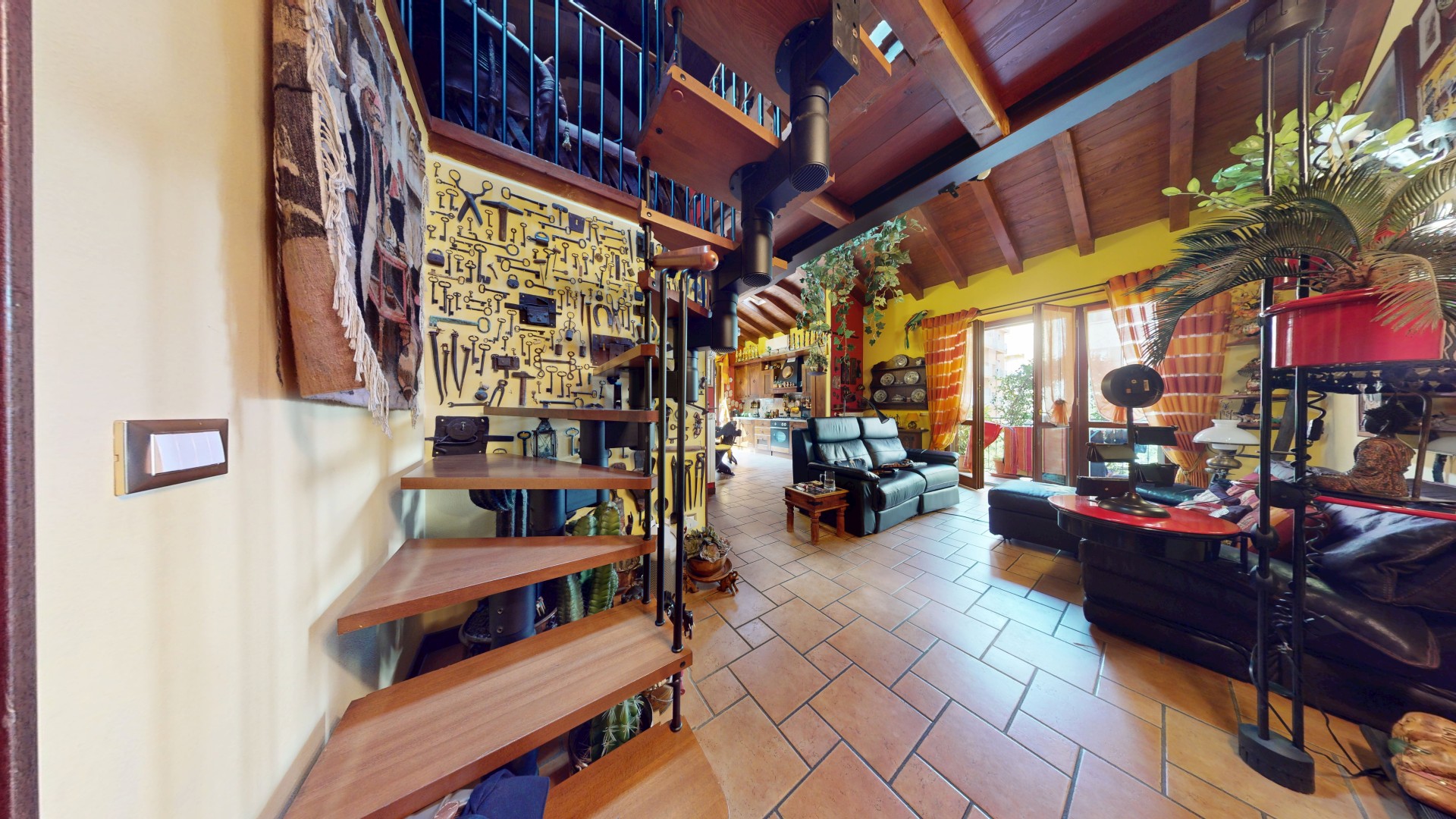 Una scala a chiocciola posta all’ingresso conduce direttamente al soppalco, ben attrezzato, funzionale e dotato di un bagno di pertinenza, perfetto come spazio aggiuntivo da adibire a studio, area relax o camera per gli ospiti.