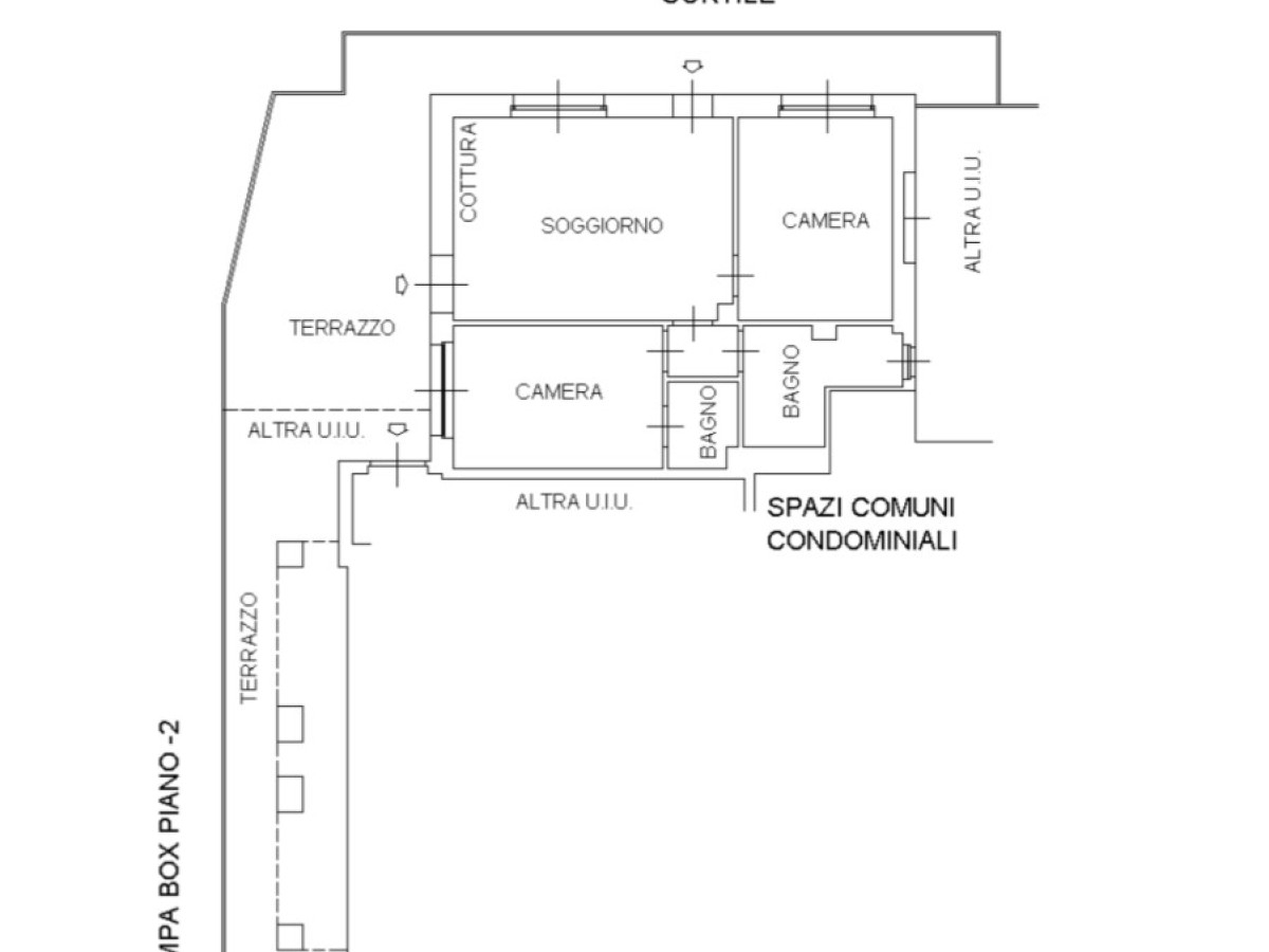 L’immobile si distingue anche per gli spazi esterni grazie al terrazzo di proprietà affacciato sull'interno, uno spazio perfetto per godersi momenti all’aperto in totale privacy, e all’ingresso semi indipendente con sole due unità abitative, che garantisce un elevato livello di tranquillità e riservatezza.