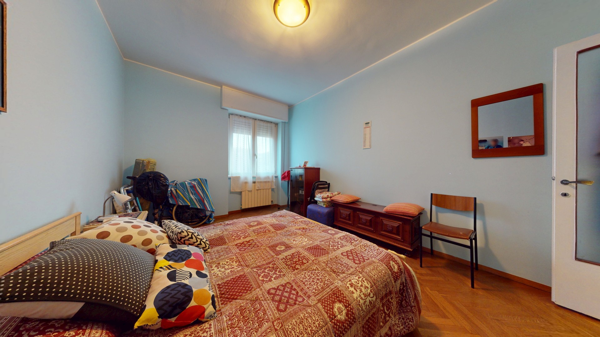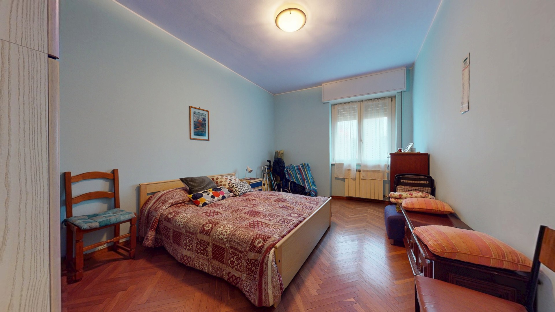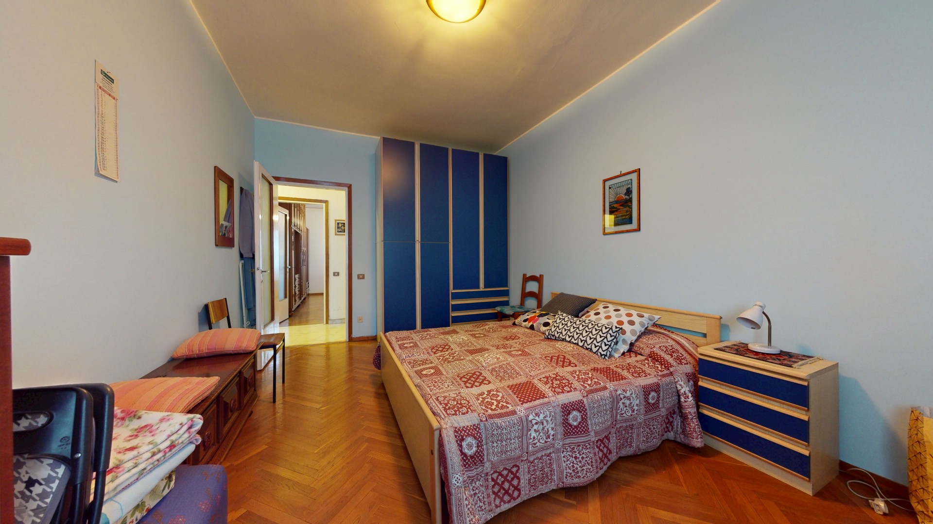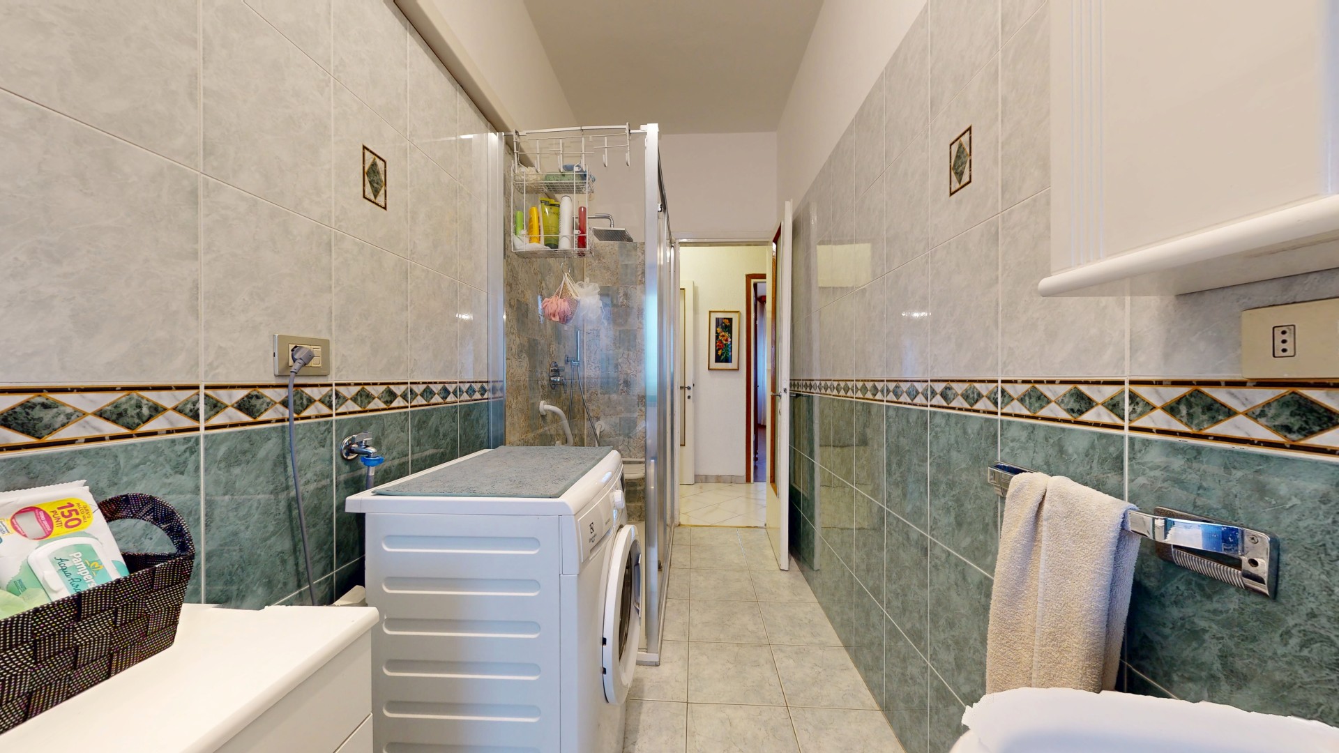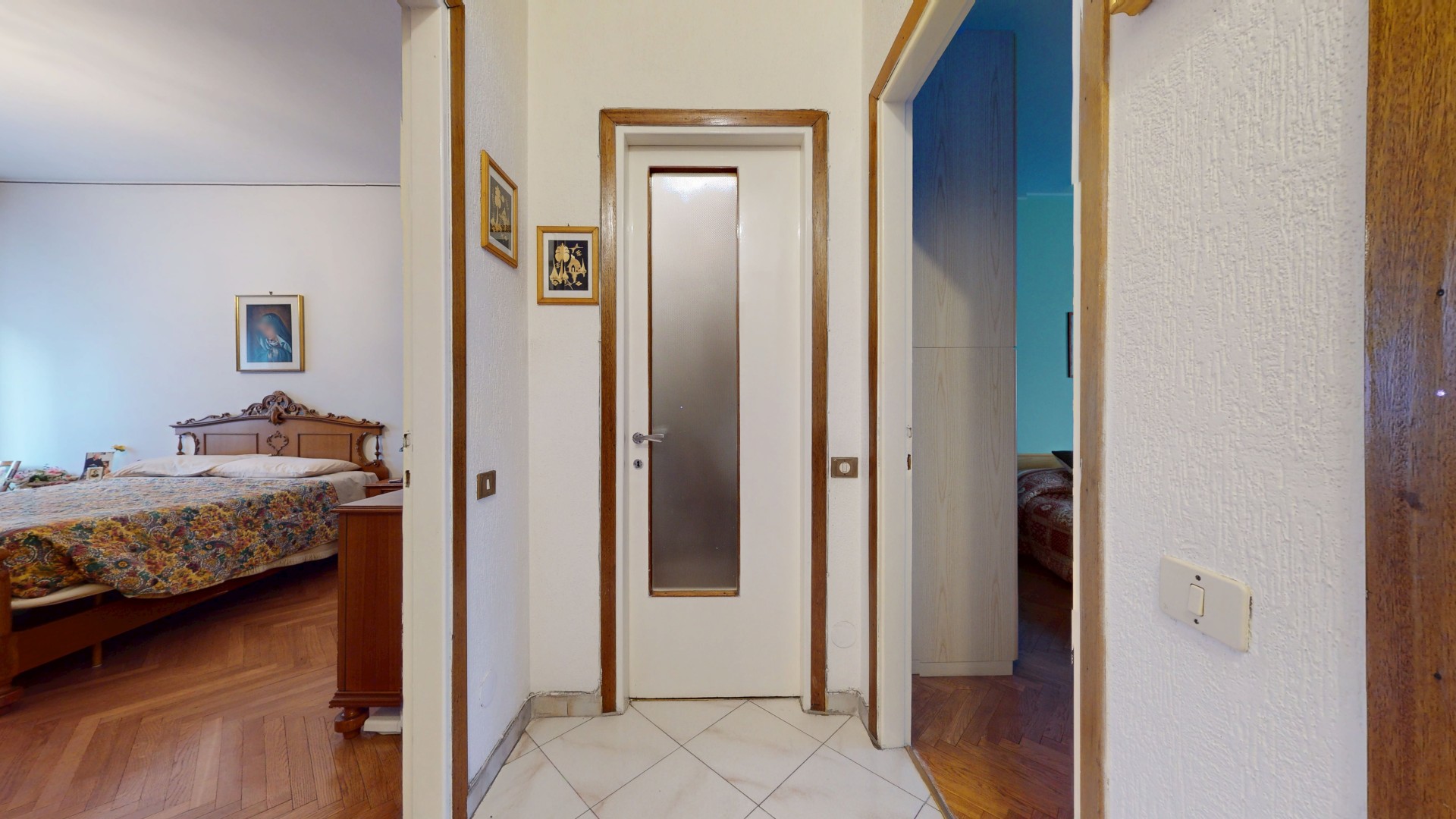 Un corridoio ben distribuito accompagna alla zona notte, composta da due spaziose camere matrimoniali, entrambe molto luminose e dotate di finestra. Una camera affaccia internamente, mentre l’altra gode di un affaccio esterno sulla via. Completa la proprietà un bagno di generose dimensioni, finestrato e con doccia, oltre a un pratico ripostiglio, ideale come spazio di servizio o dispensa.