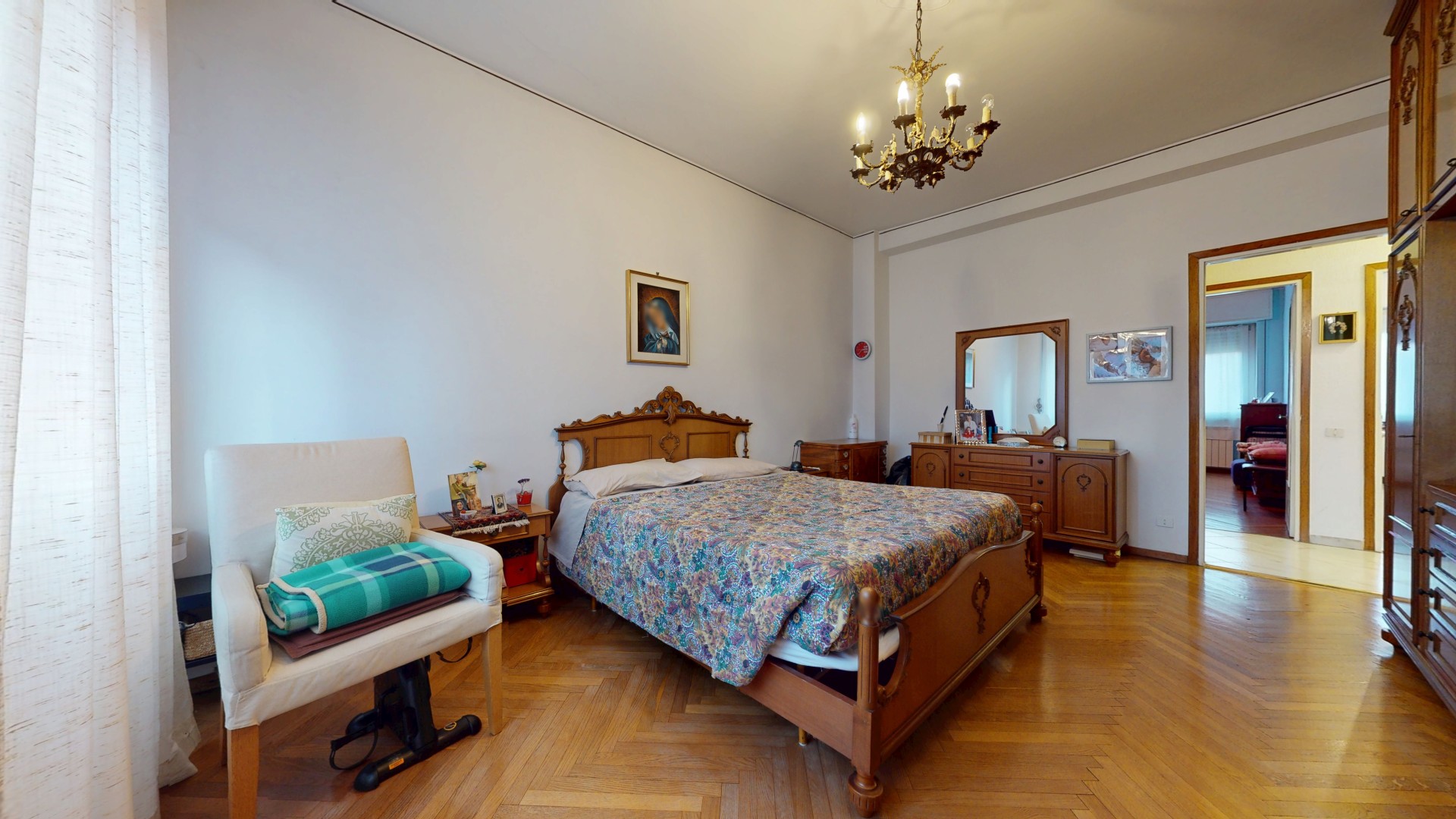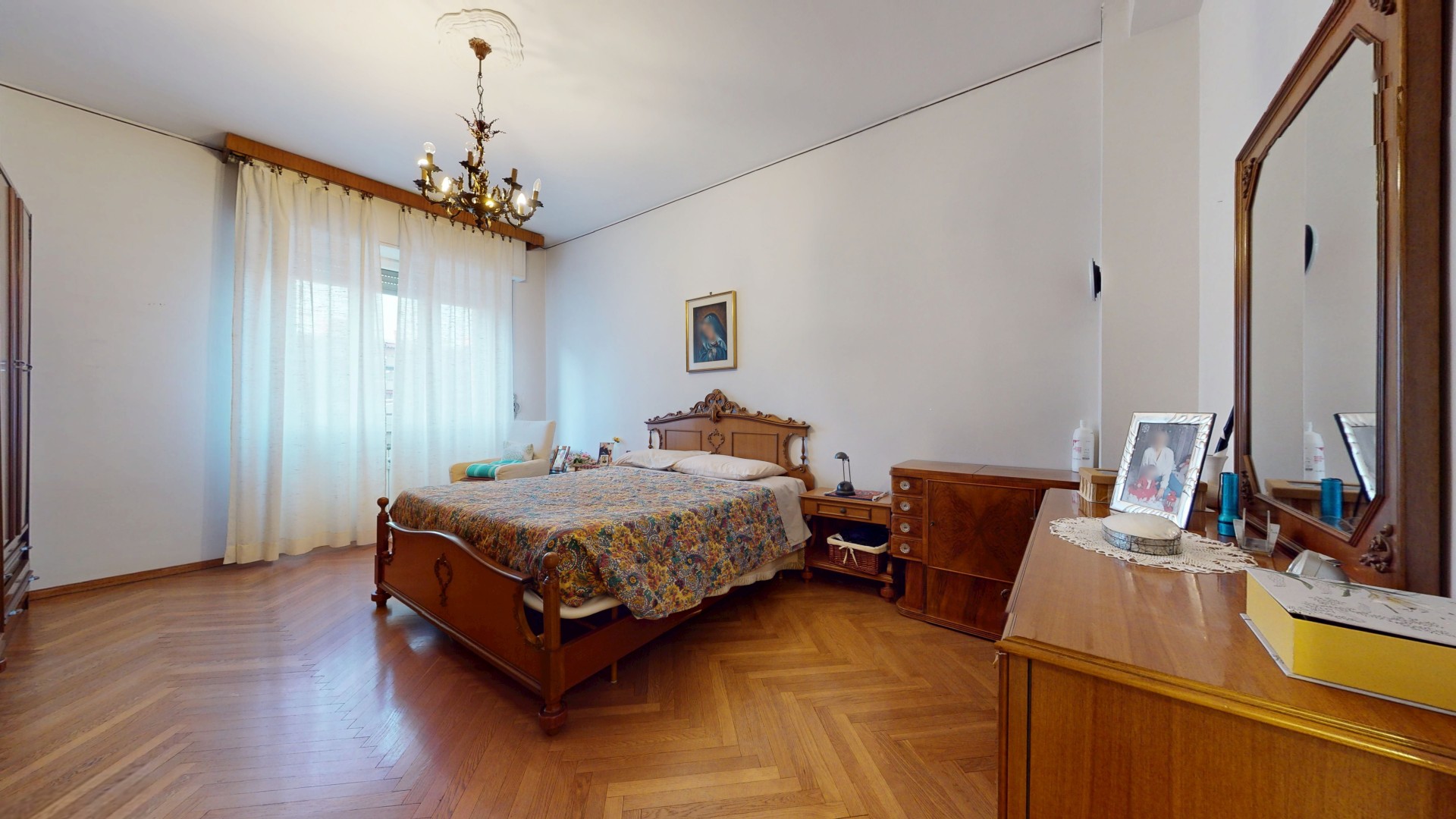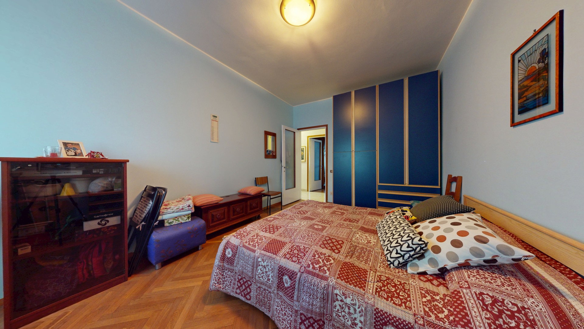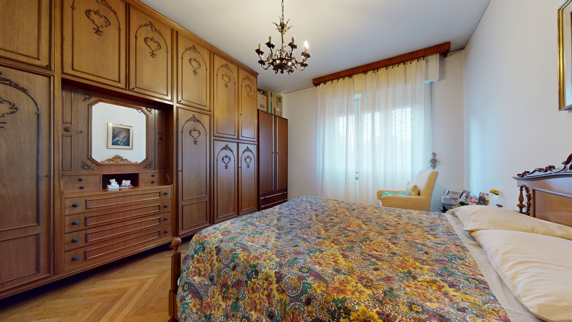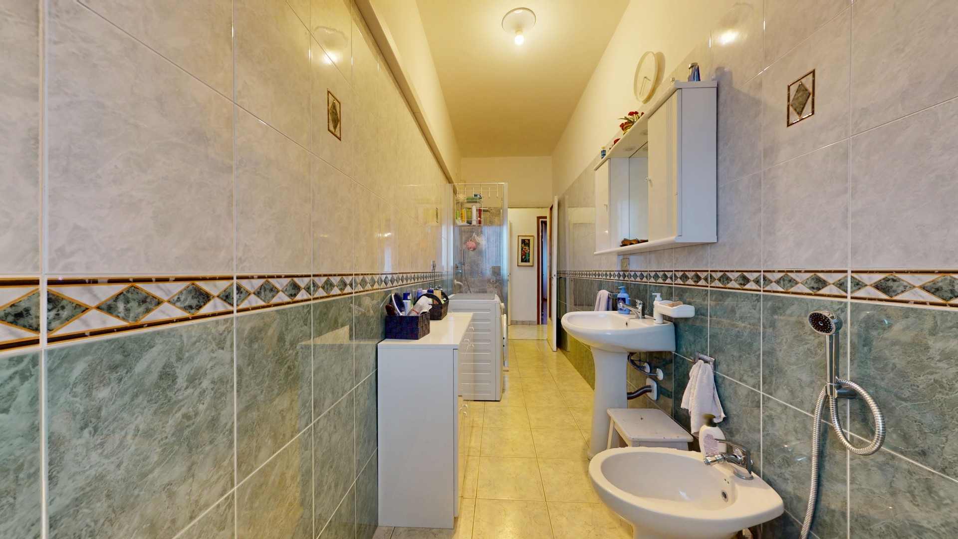 Un corridoio ben distribuito accompagna alla zona notte, composta da due spaziose camere matrimoniali, entrambe molto luminose e dotate di finestra. Una camera affaccia internamente, mentre l’altra gode di un affaccio esterno sulla via. Completa la proprietà un bagno di generose dimensioni, finestrato e con doccia, oltre a un pratico ripostiglio, ideale come spazio di servizio o dispensa.