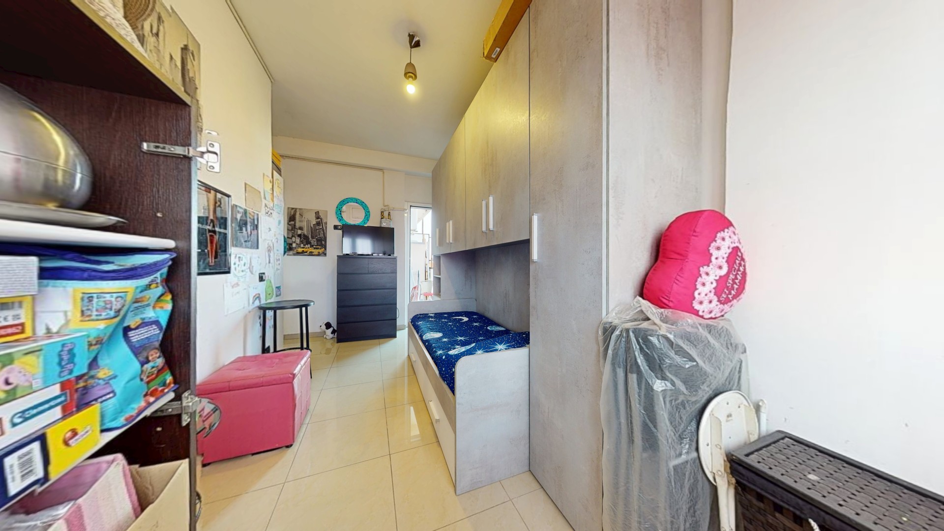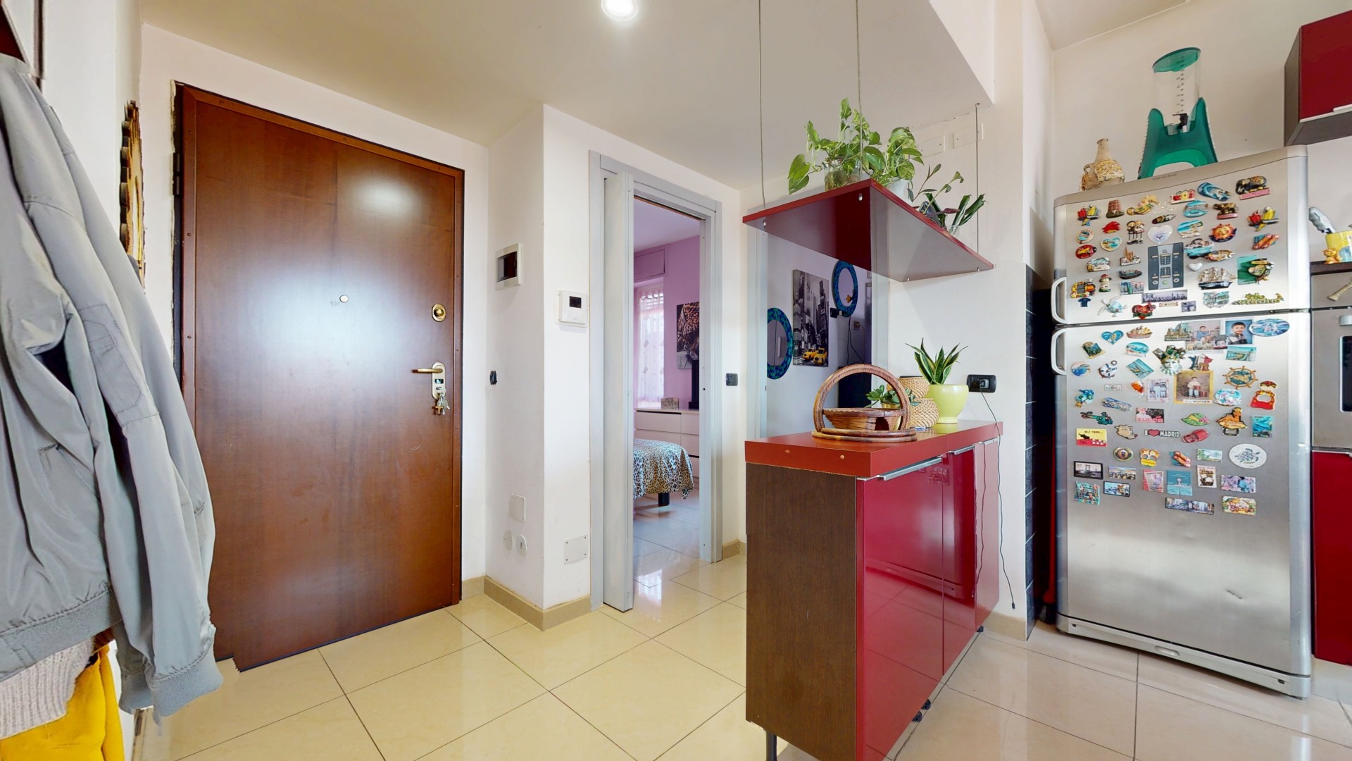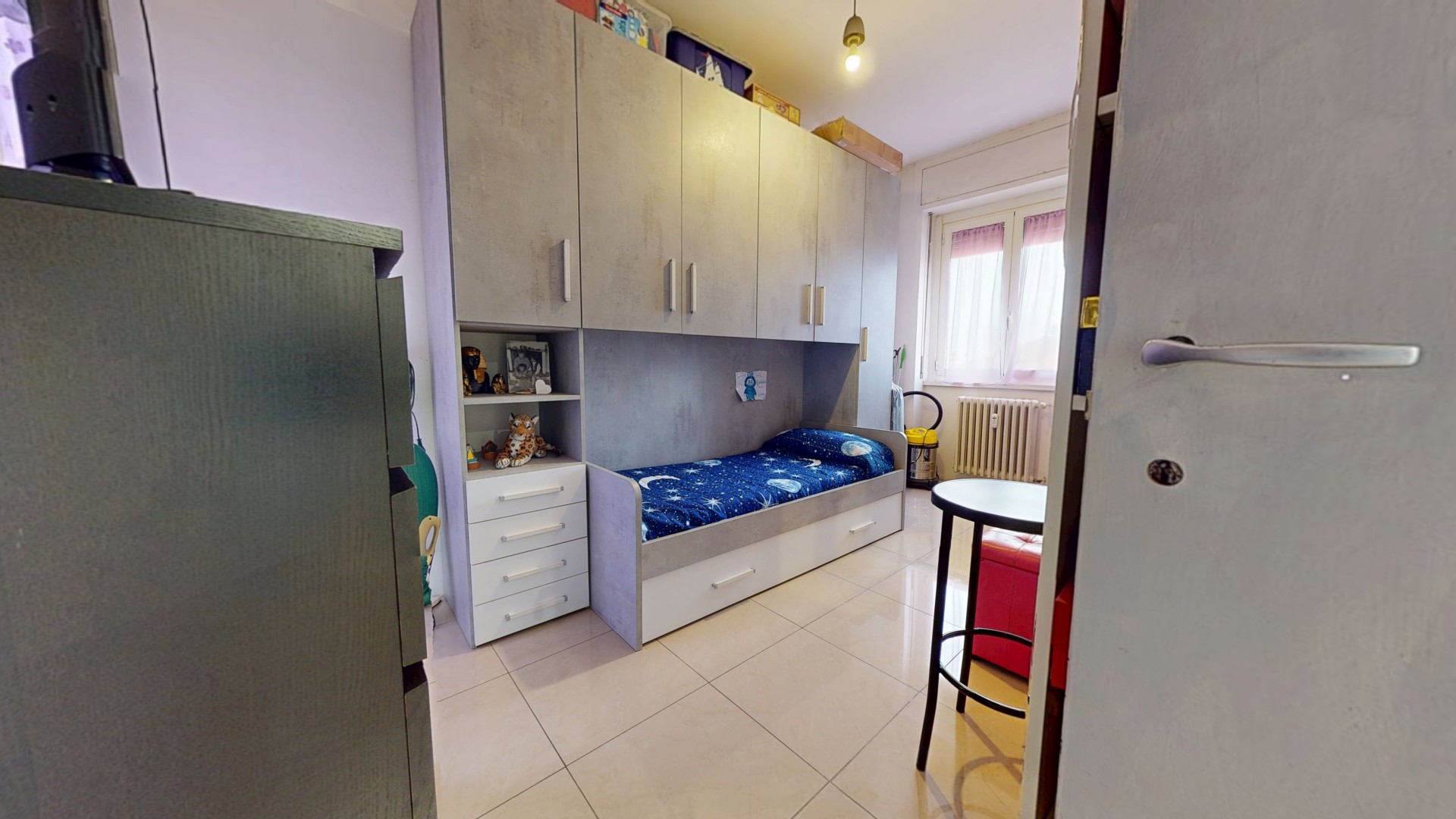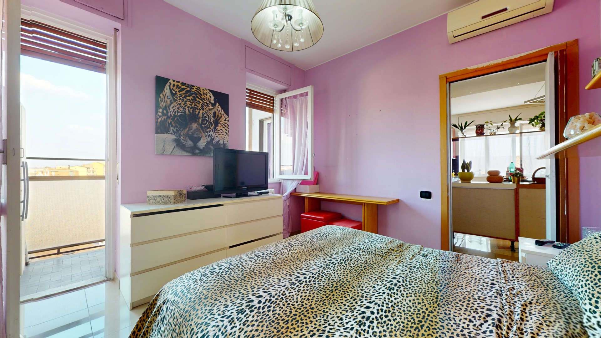 Il disimpegno porta alle due camere, entrambe dotate di una finestra ed una porta finestra che da accesso al balcone donando luminosità naturale agli ambienti.
