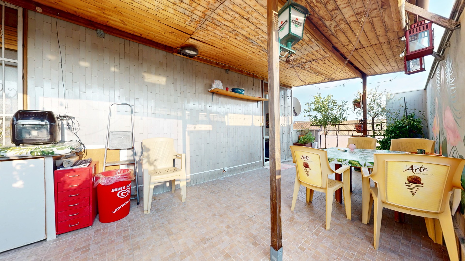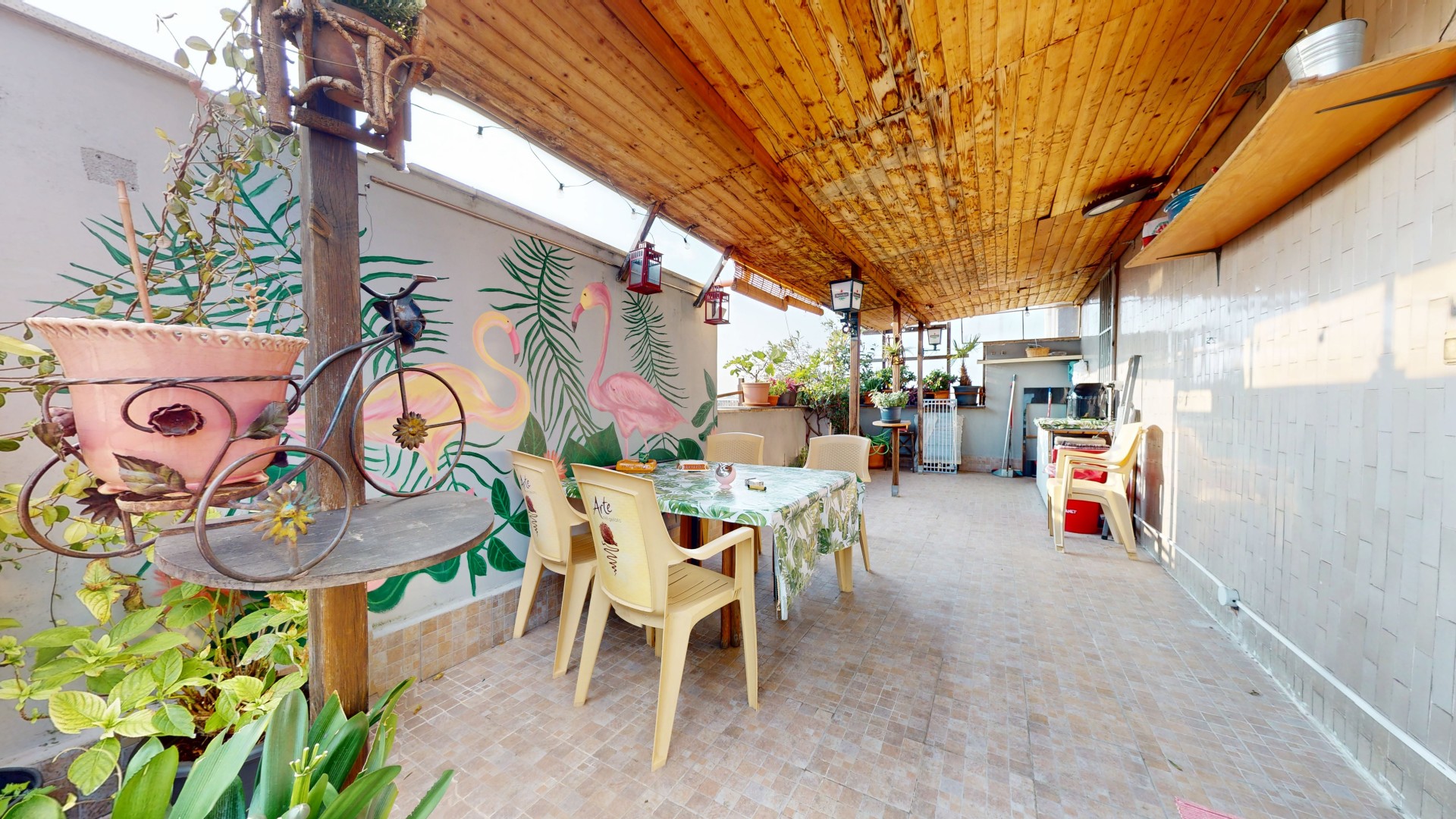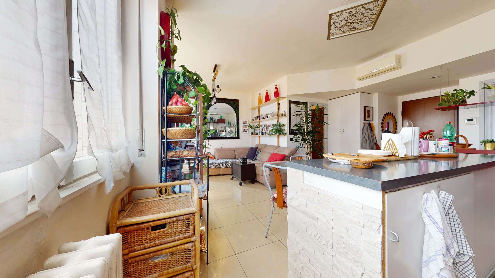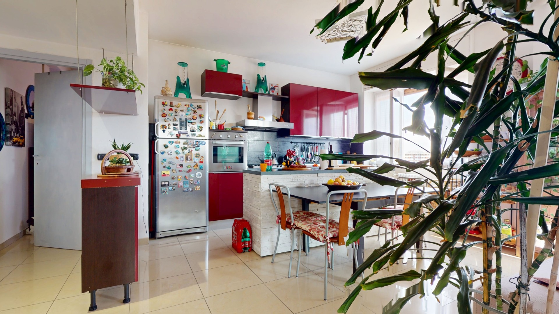 L’appartamento si distingue per una zona giorno ampia e luminosa, con cucina a vista, doppie finestre e porta finestra che conducono a un terrazzo di circa 30mq, coperto con una struttura mobile in legno e impreziosito da una vista panoramica.