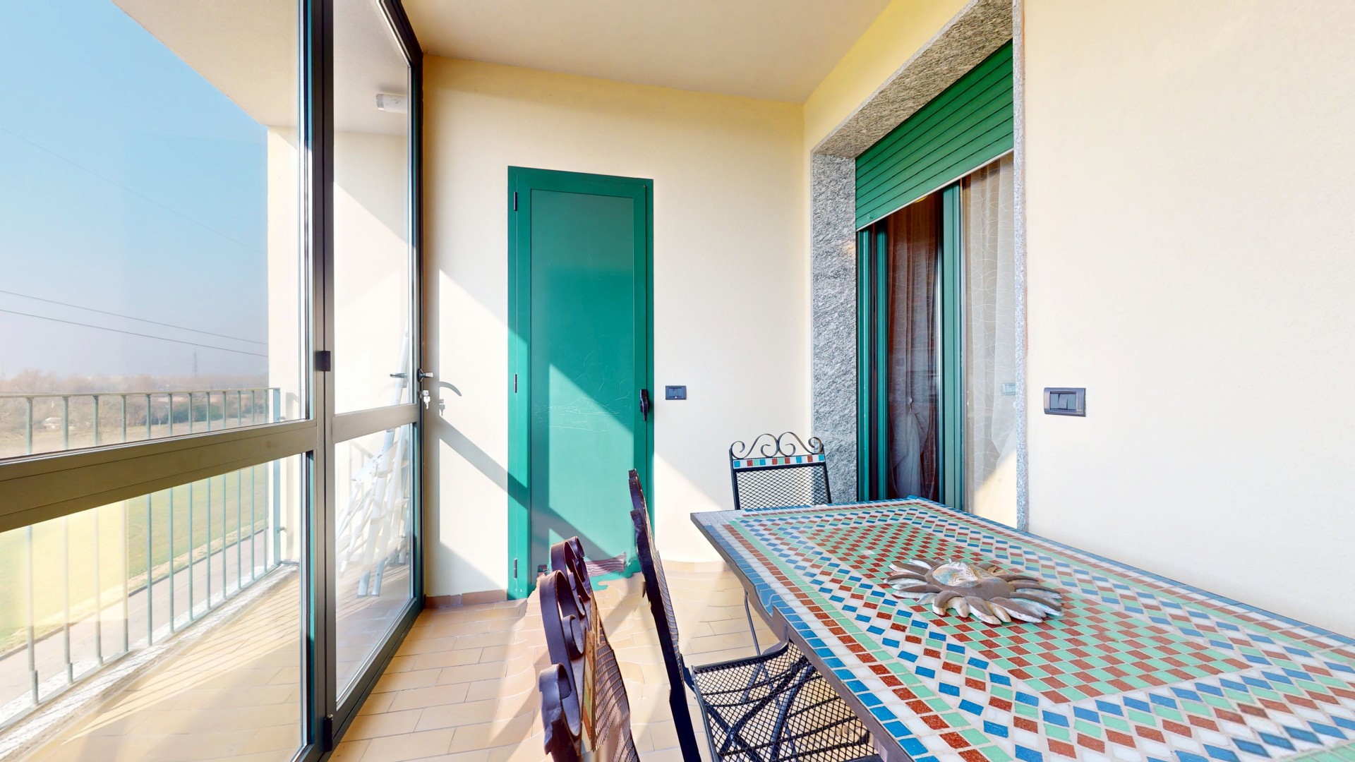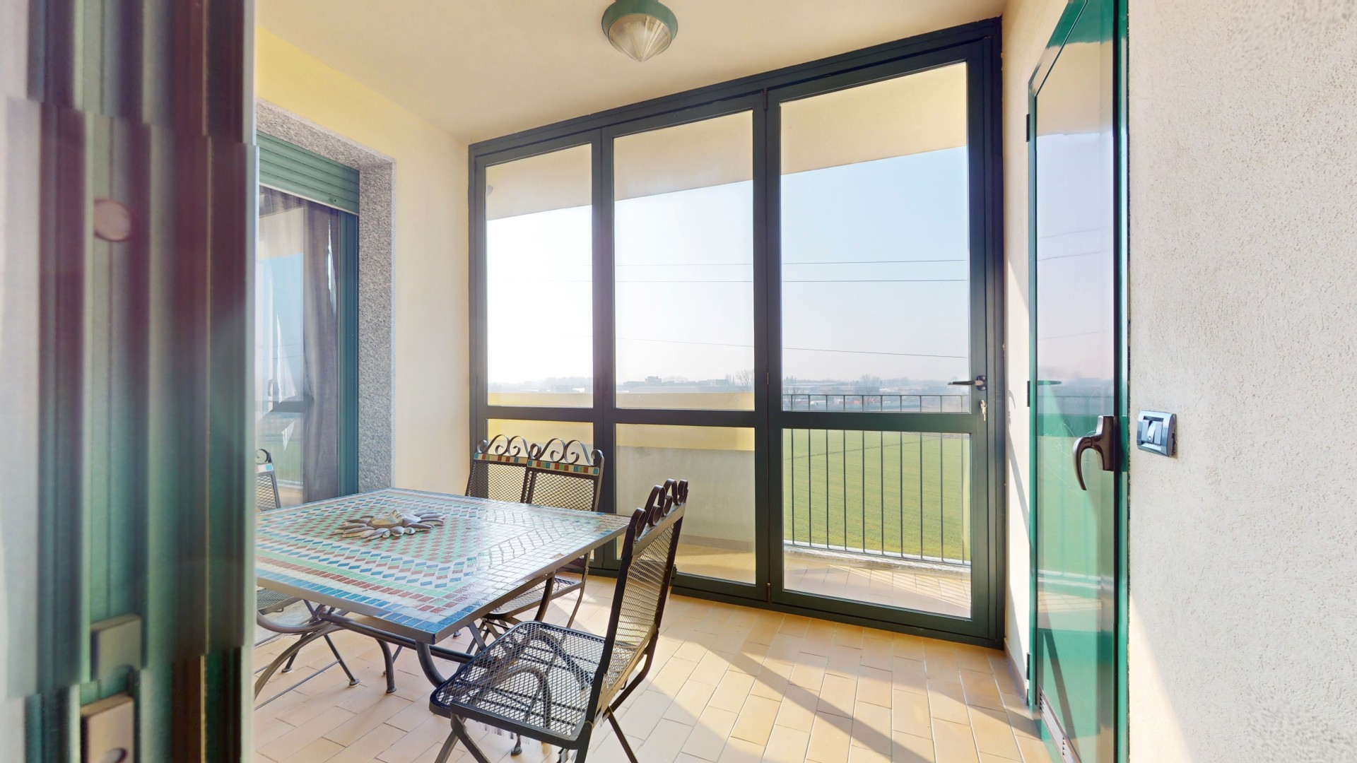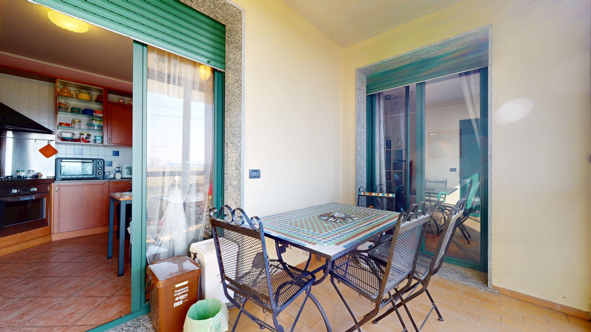 L’ingresso si apre su un soggiorno accogliente e di generose dimensioni, con esposizione sud-ovest, che garantisce luce naturale per gran parte della giornata. La cucina è semi abitabile e funzionale, con accesso diretto a un terrazzino verandato, ideale come spazio di servizio o zona relax, completo di pratico sgabuzzino dove è installata la caldaia a condensazione.