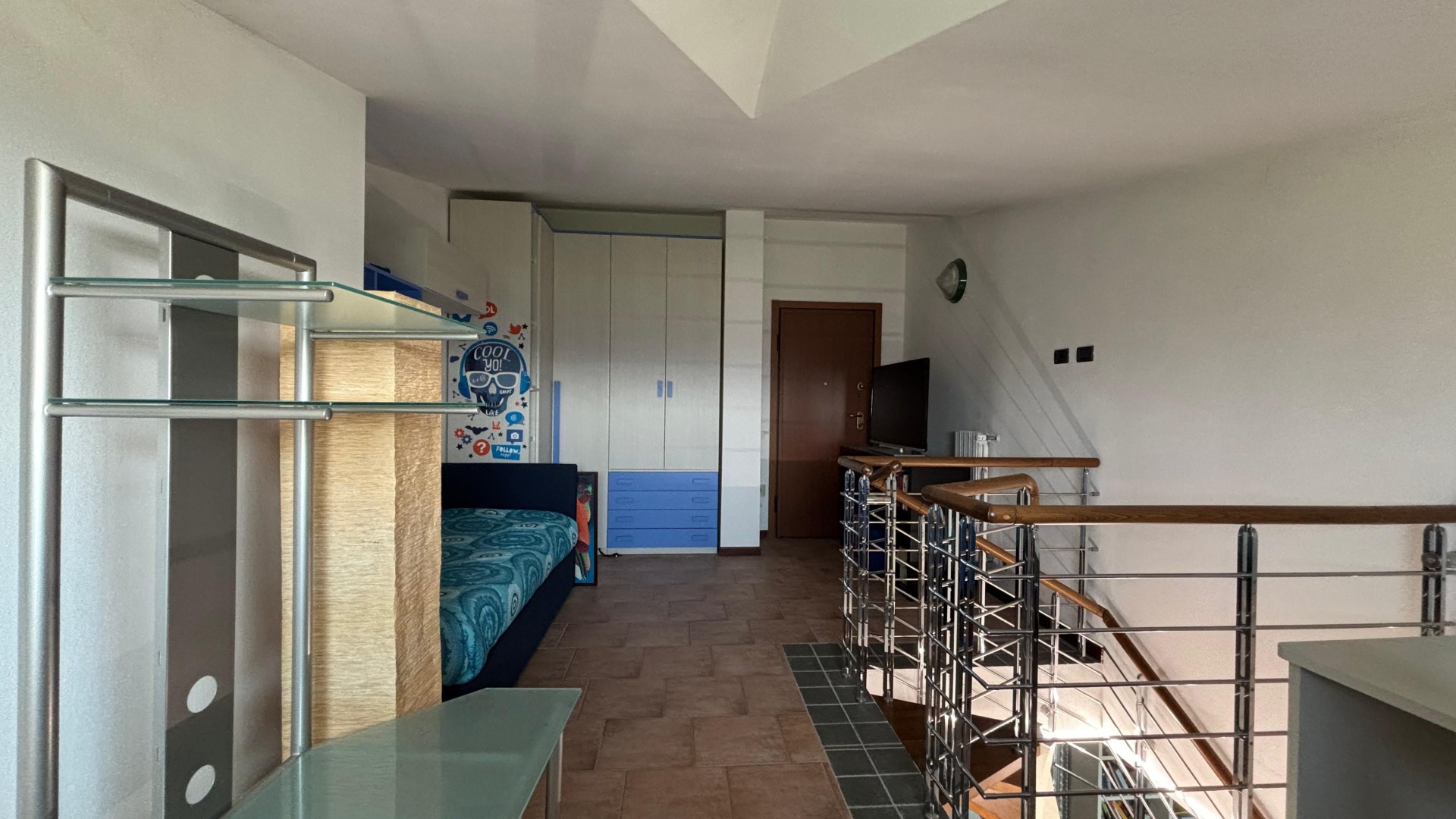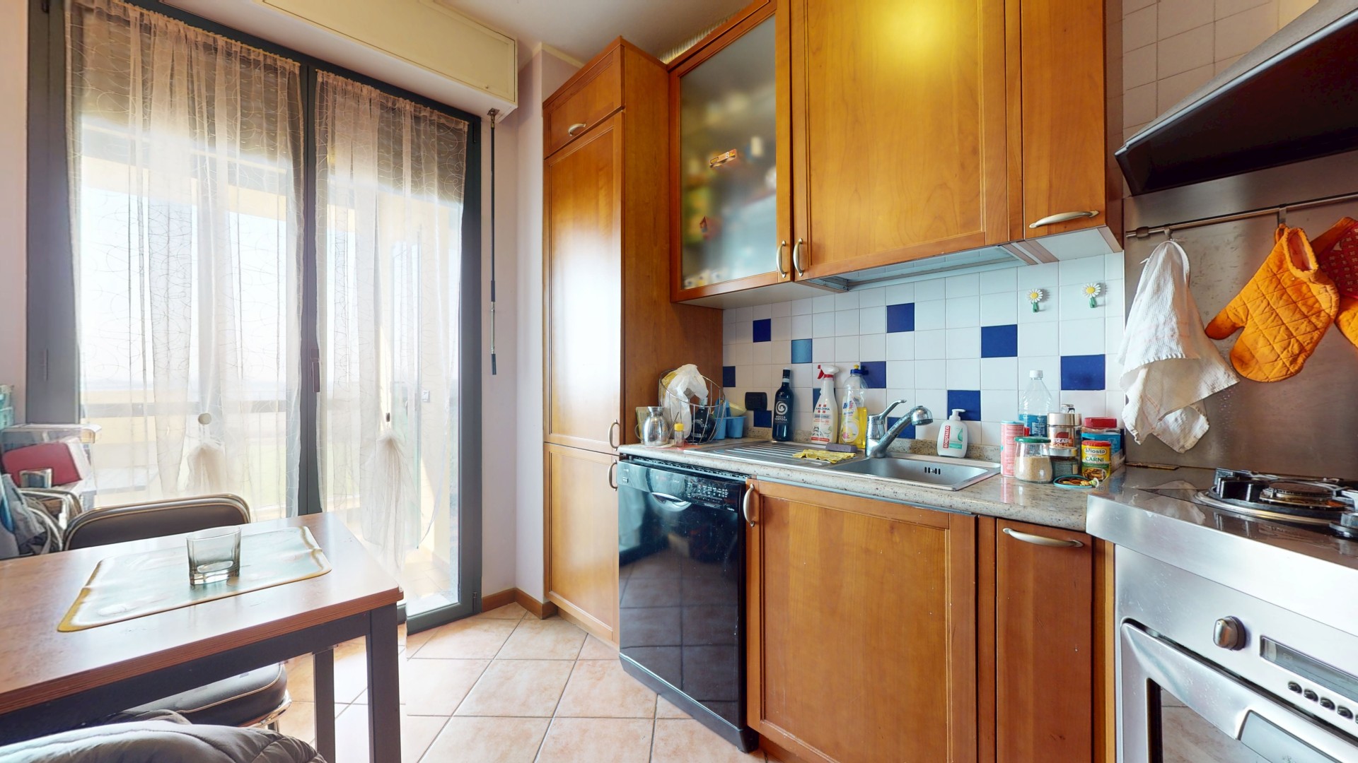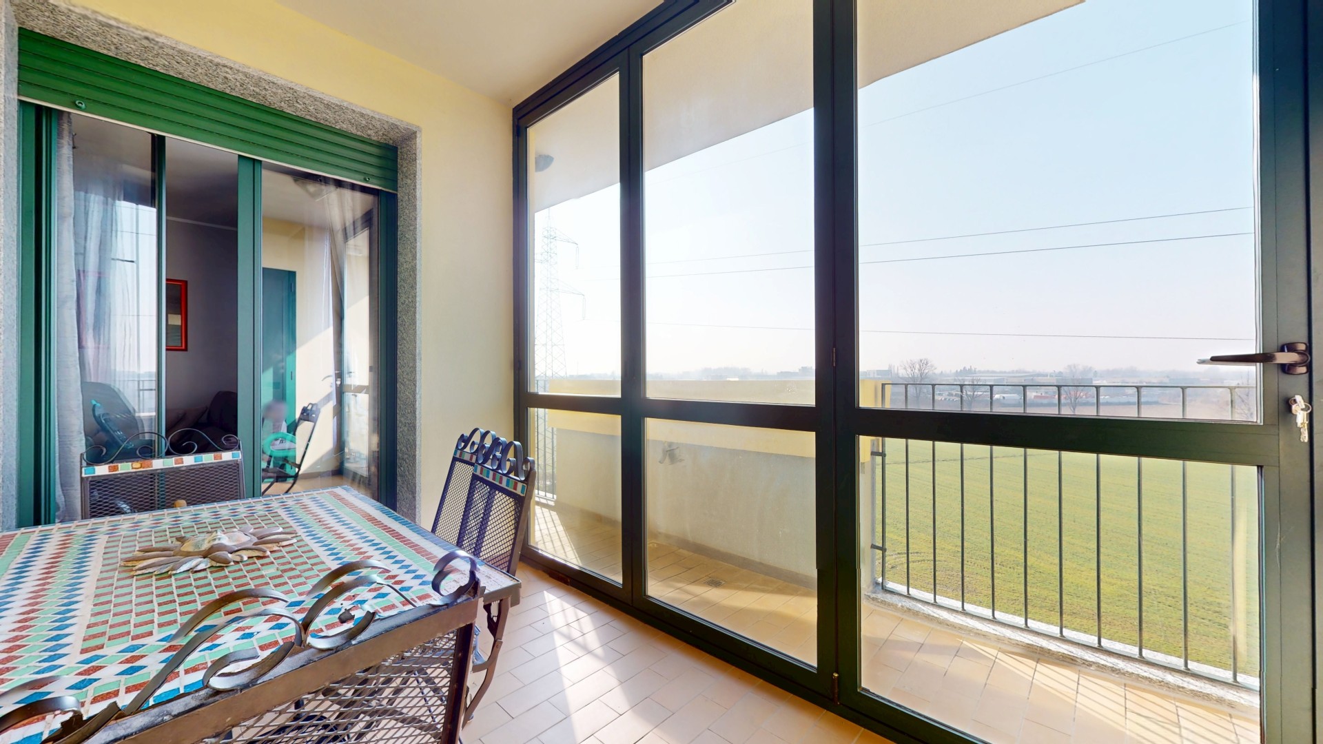 L’ingresso si apre su un soggiorno accogliente e di generose dimensioni, con esposizione sud-ovest, che garantisce luce naturale per gran parte della giornata. La cucina è semi abitabile e funzionale, con accesso diretto a un terrazzino verandato, ideale come spazio di servizio o zona relax, completo di pratico sgabuzzino dove è installata la caldaia a condensazione.