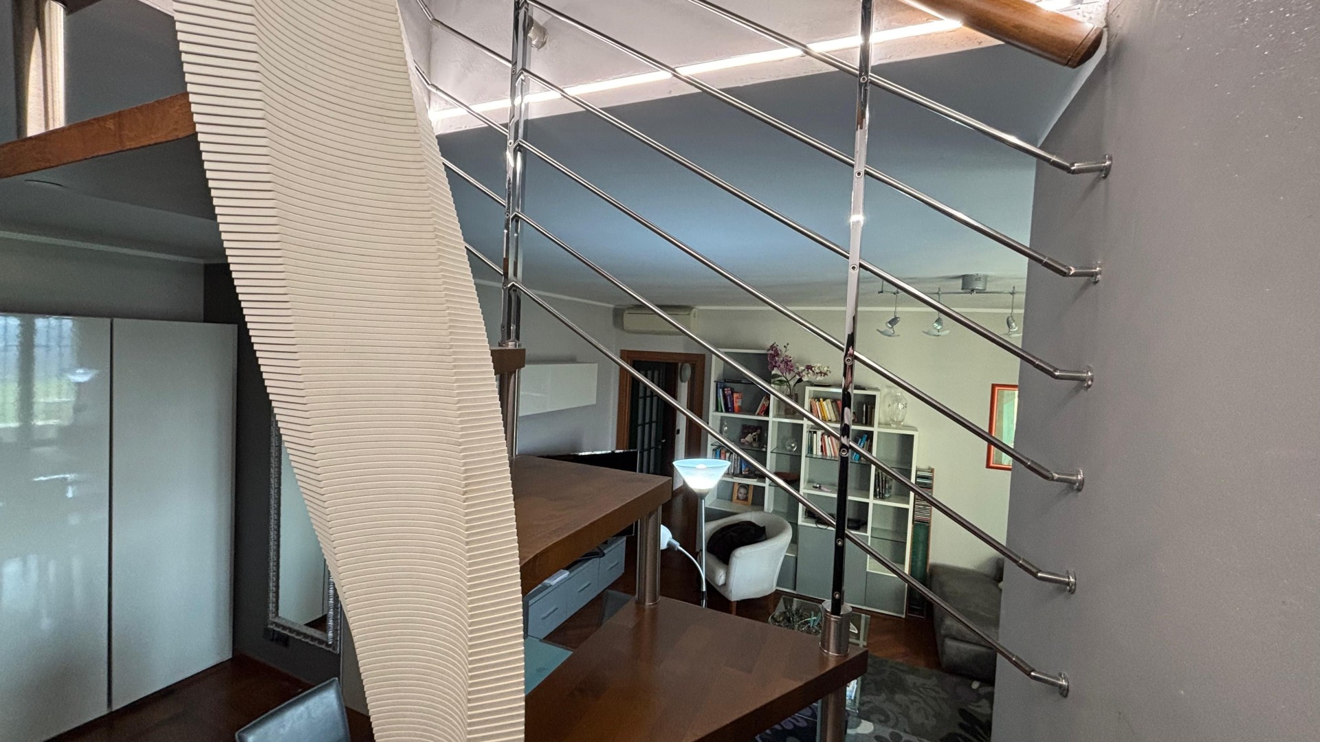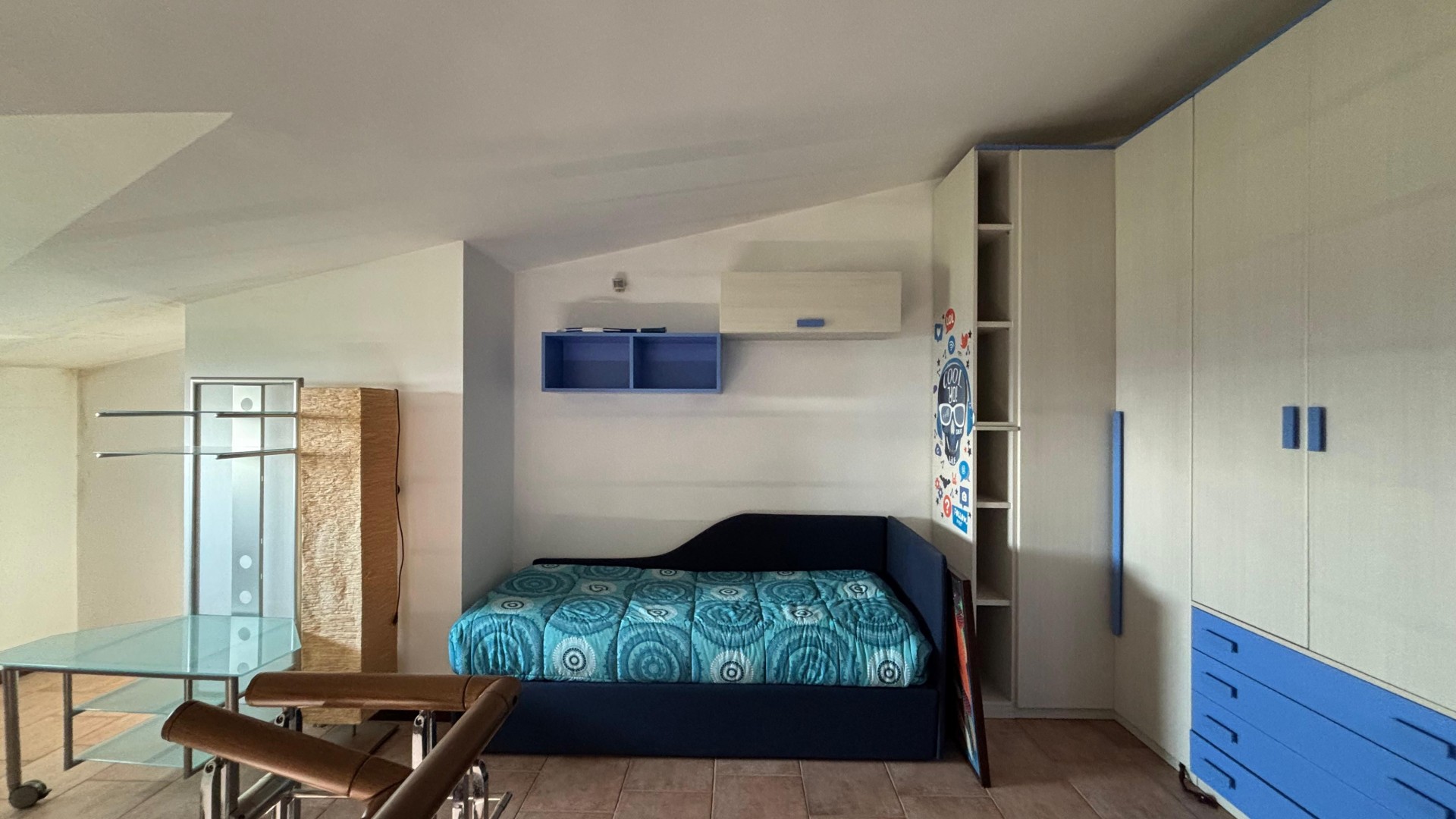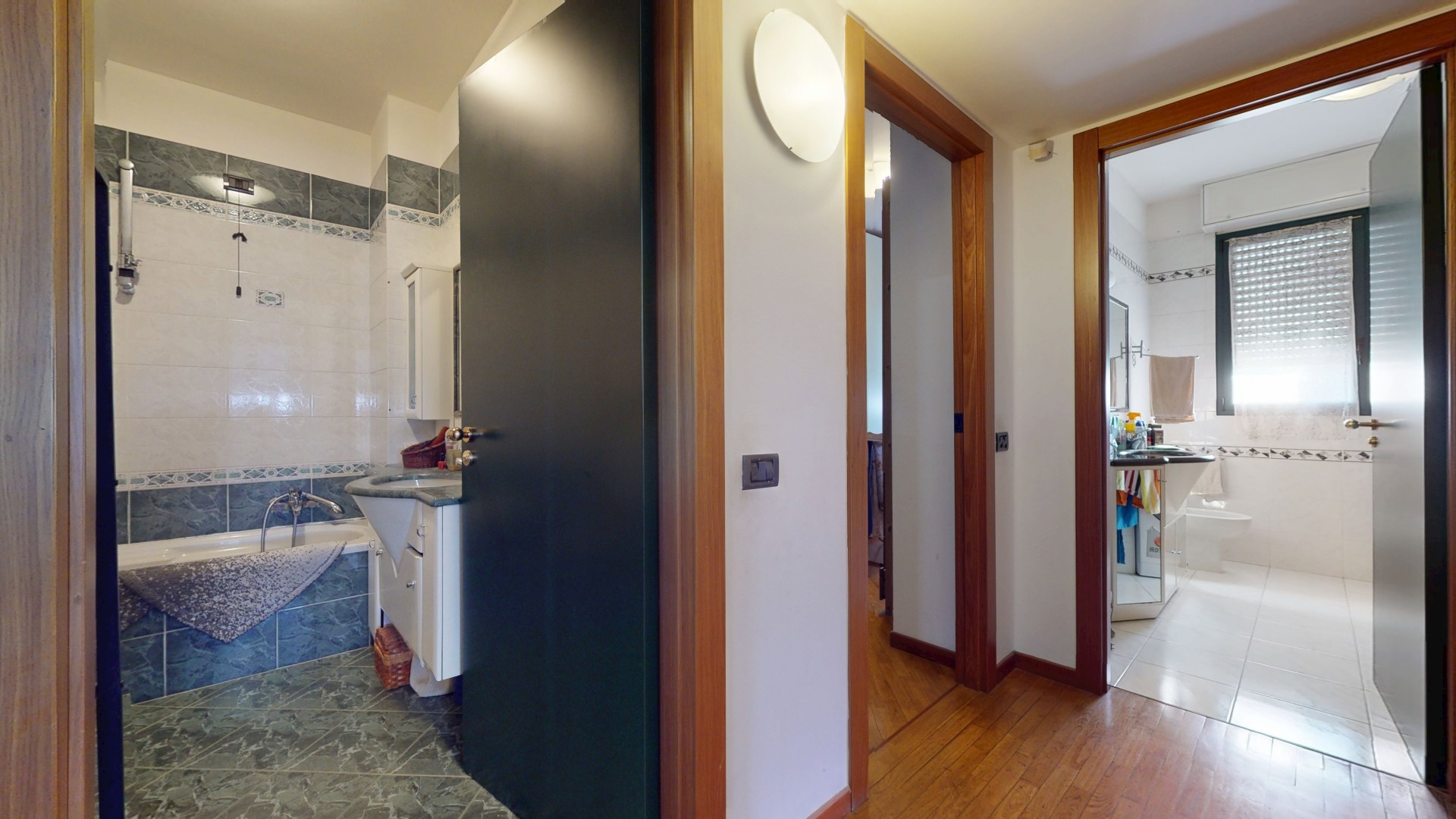 La zona notte è composta da tre camere da letto, di cui una attualmente adibita a cabina armadio, oltre a una mansarda utilizzabile come ulteriore camera, studio o spazio multifunzionale. I servizi sono due: uno cieco dotato di vasca e uno finestrato con doccia in muratura, entrambi ben rifiniti.