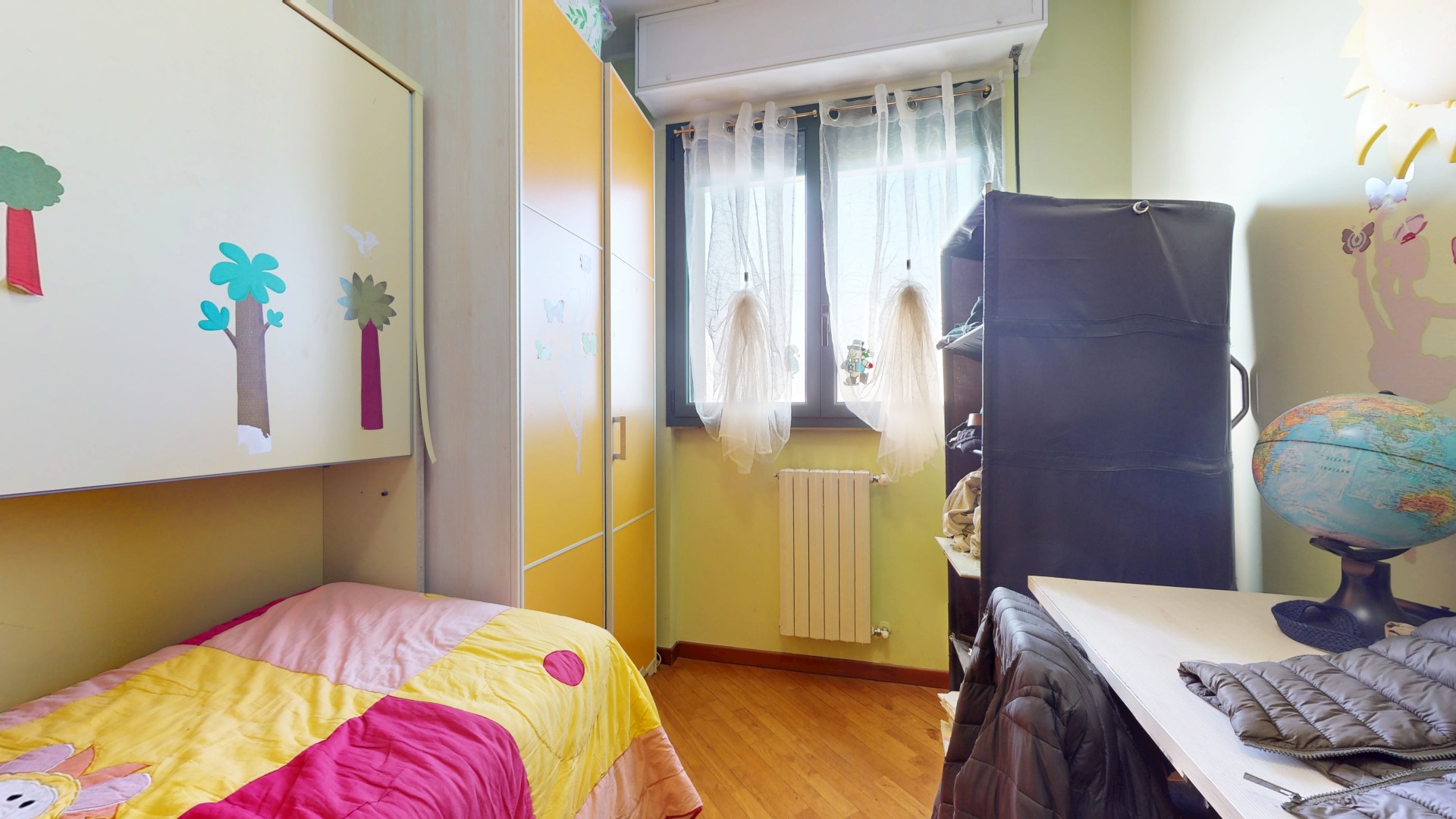 Completano la proprietà l’esposizione sud-est di una camera e del bagno, che contribuisce ulteriormente alla luminosità complessiva dell’immobile, oltre a una cantina di pertinenza e a un box singolo. Può essere una soluzione abitativa ideale per famiglie o per chi desidera vivere in spazi comodi e ben organizzati, in una zona residenziale riservata ma allo stesso tempo ben servita.