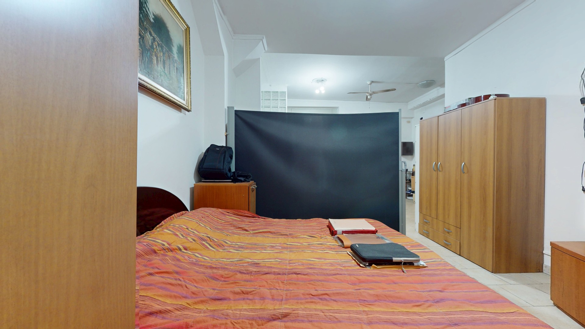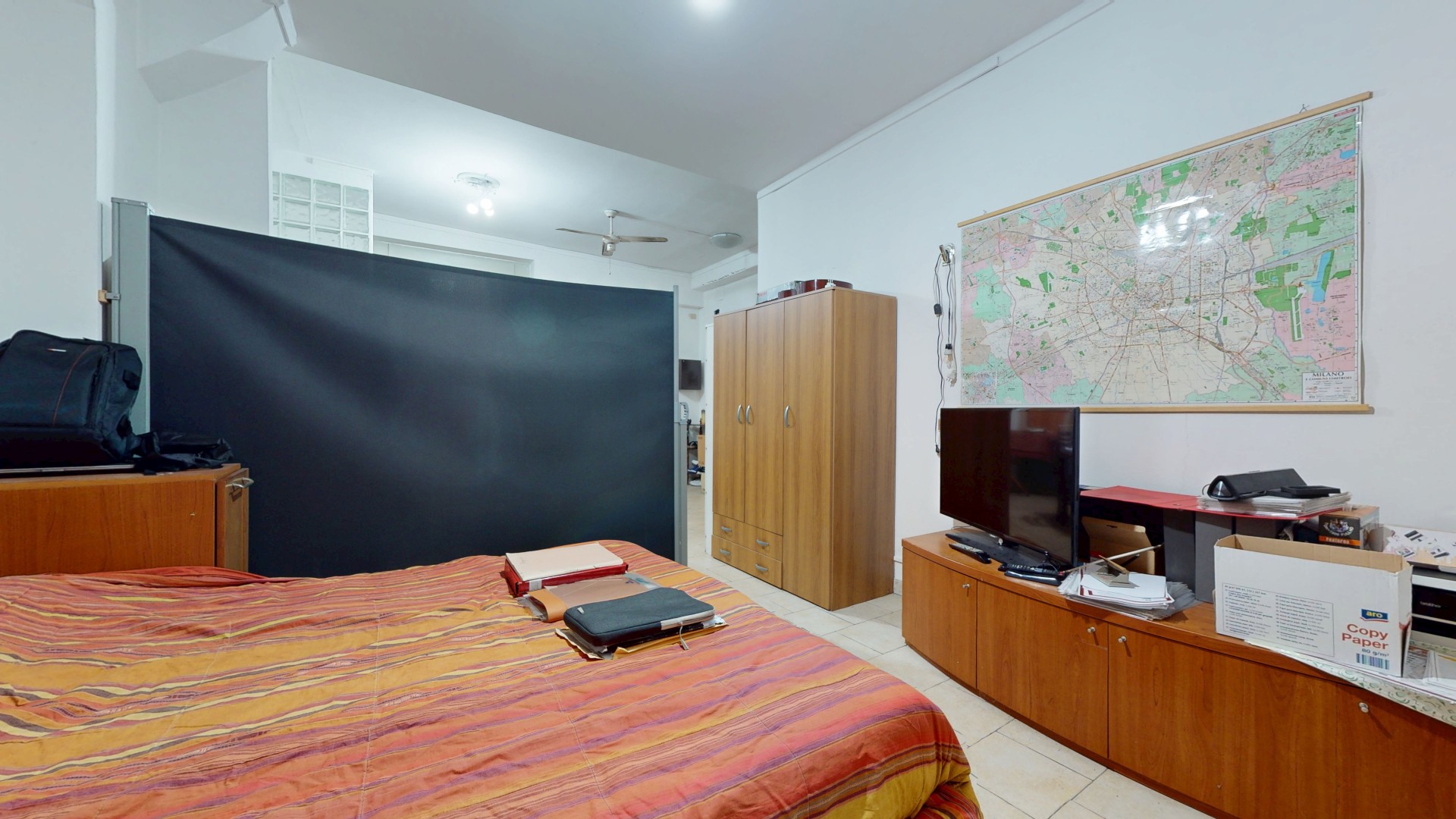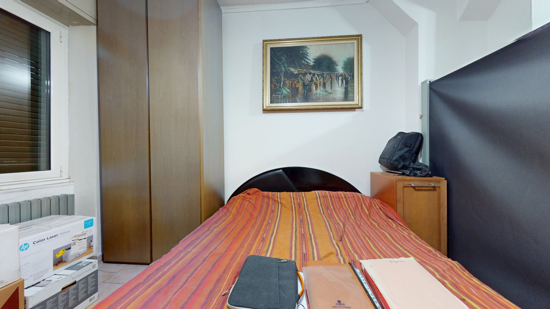 Un elemento divisorio separa la zona giorno dalla zona notte, garantendo una corretta distinzione degli spazi. La zona notte ospita un letto matrimoniale ed è anch’essa valorizzata da una finestra di generose dimensioni che contribuisce a creare un’atmosfera ariosa e confortevole. La distribuzione interna permette di sfruttare al meglio ogni spazio, valorizzando al massimo le possibilità dell’immobile.
