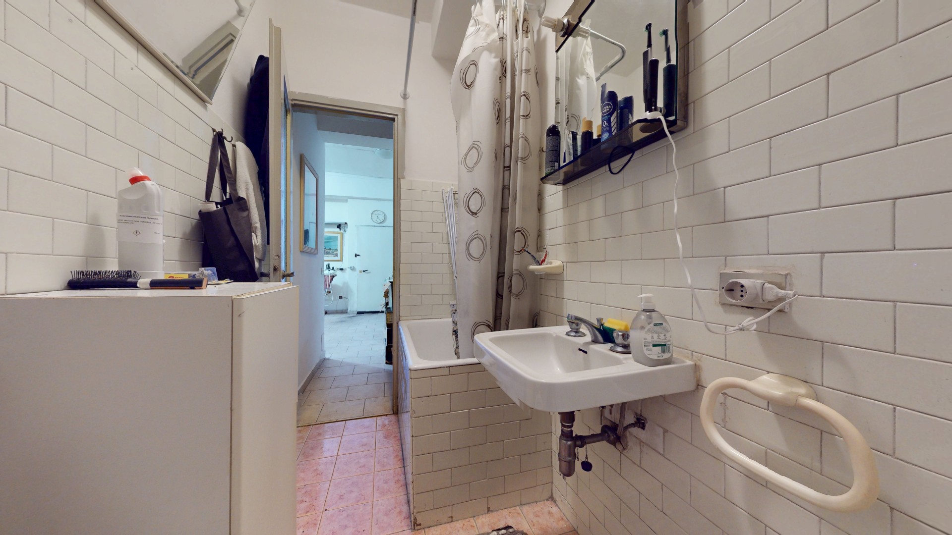 Proseguendo, si accede a un piccolo disimpegno che può essere comodamente utilizzato come ripostiglio o spazio contenitivo, ideale per ottimizzare l’organizzazione della casa. Il disimpegno conduce al bagno, di dimensioni contenute ma ben strutturato, sviluppato in lunghezza e dotato di tutti i sanitari, completo di vasca. Nel complesso l’appartamento rappresenta una soluzione ideale per chi cerca un’abitazione raccolta e funzionale, adatta anche come investimento, grazie alla disposizione razionale degli ambienti e alla posizione in una zona tranquilla ma ben collegata.