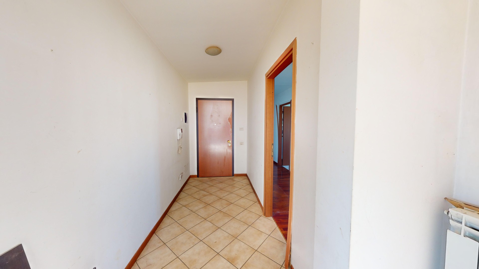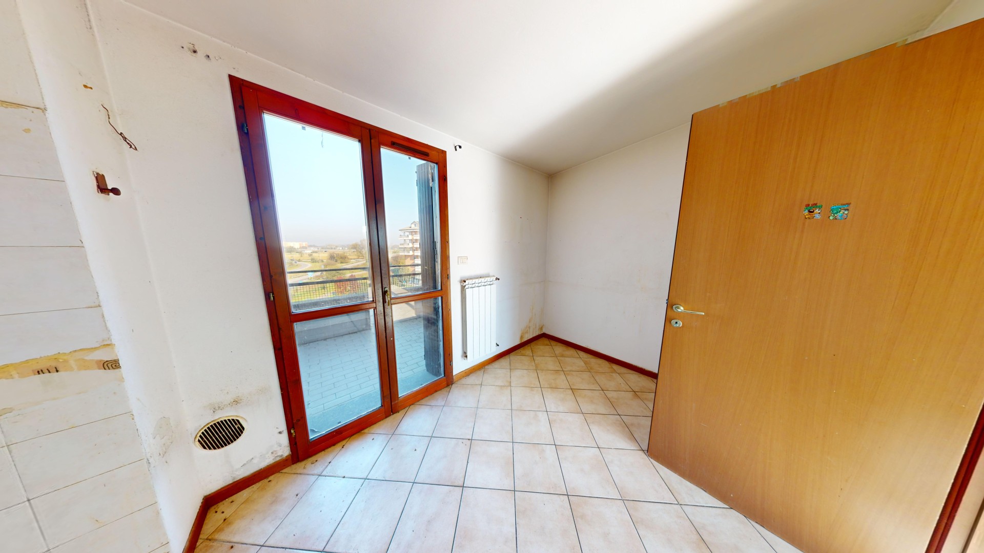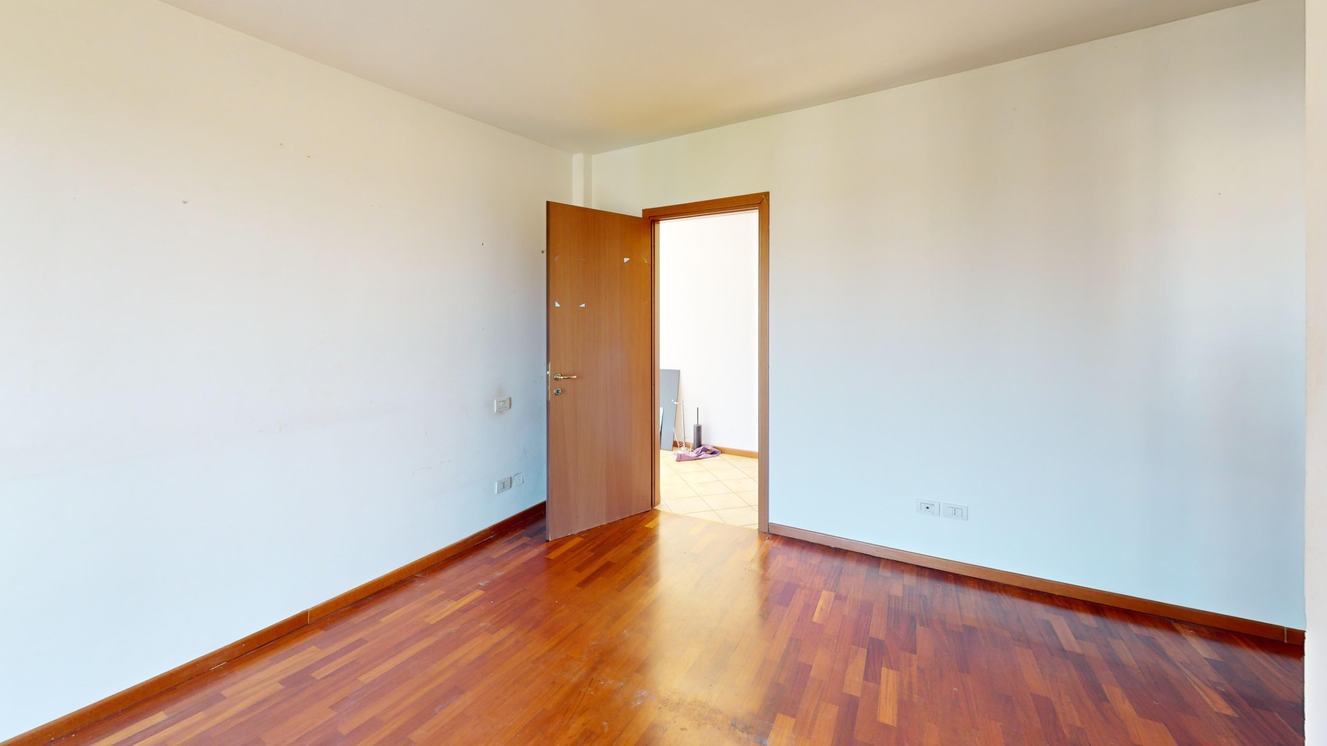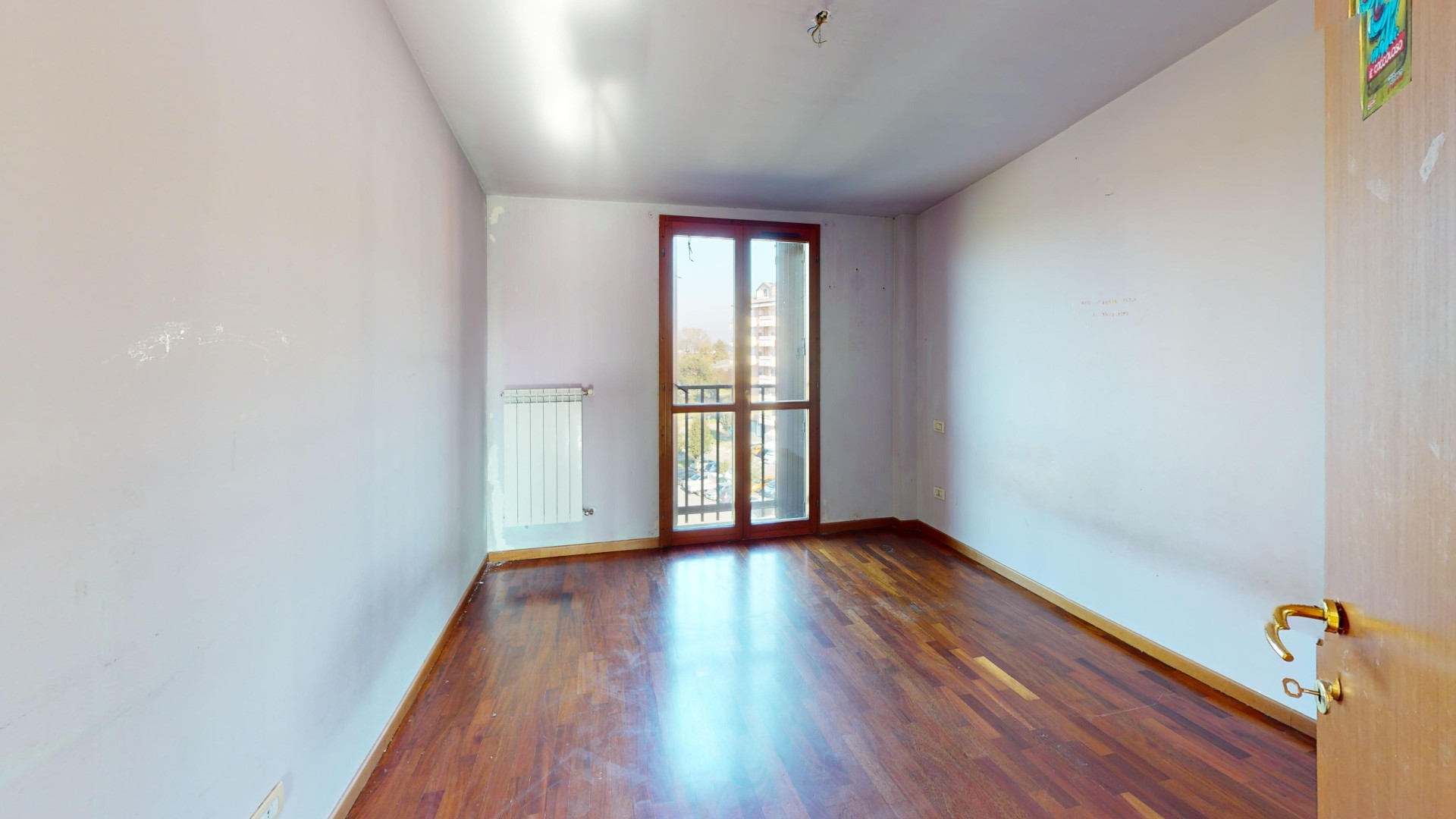 L’ingresso si apre su un corridoio che conduce alla prima camera matrimoniale, spaziosa e luminosa grazie alla porta finestra che garantisce un piacevole affaccio interno. La stanza dispone di un bagno finestrato con doccia, ampio e funzionale. Proseguendo, si accede all’ampio soggiorno, un ambiente accogliente e luminoso grazie alle grandi porte finestre che si aprono su un terrazzo vivibile, perfetto per momenti di relax o convivialità.