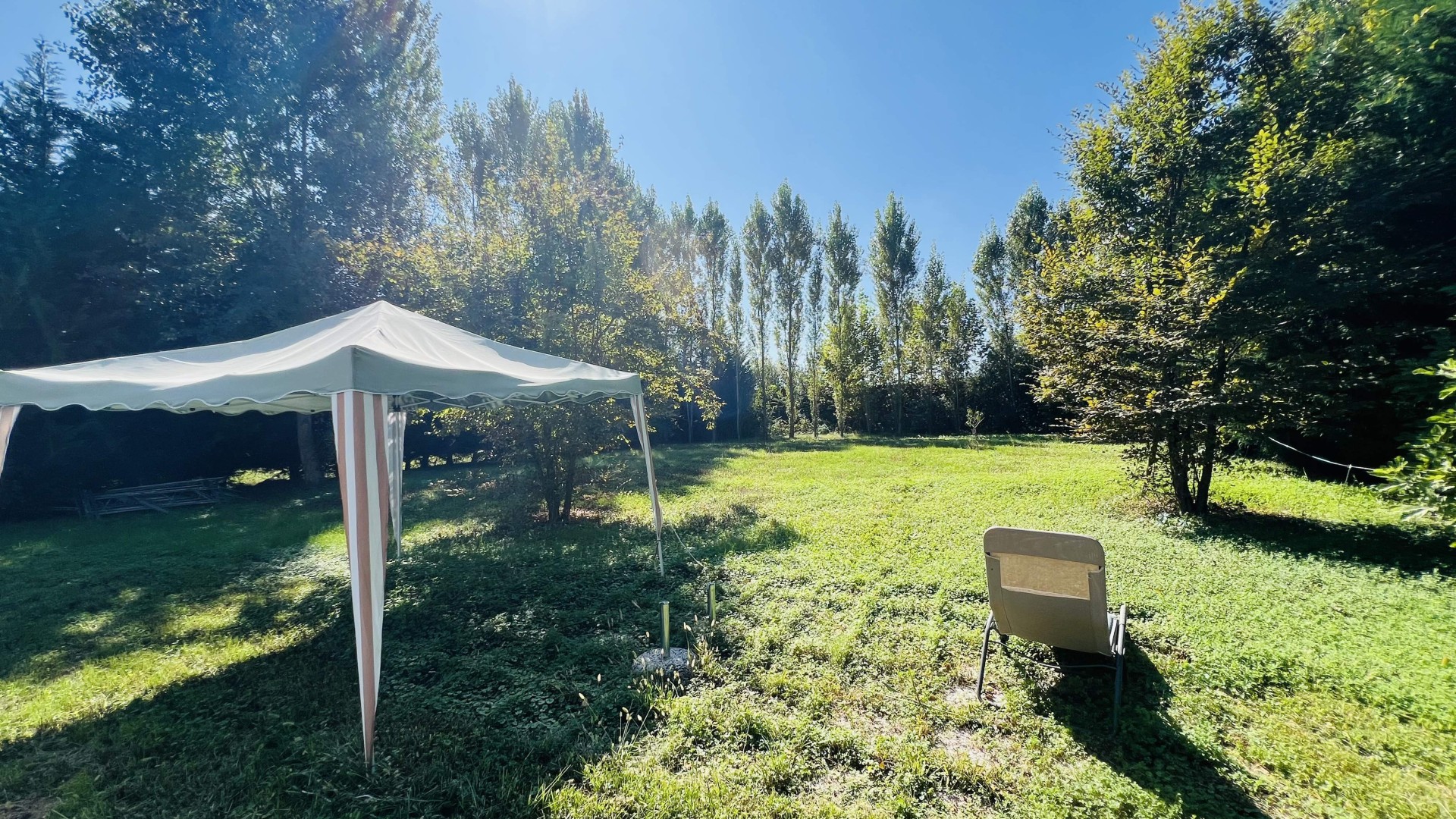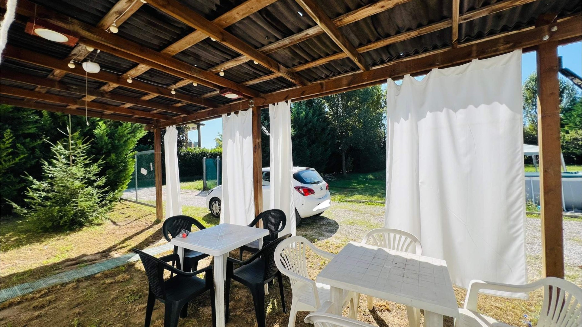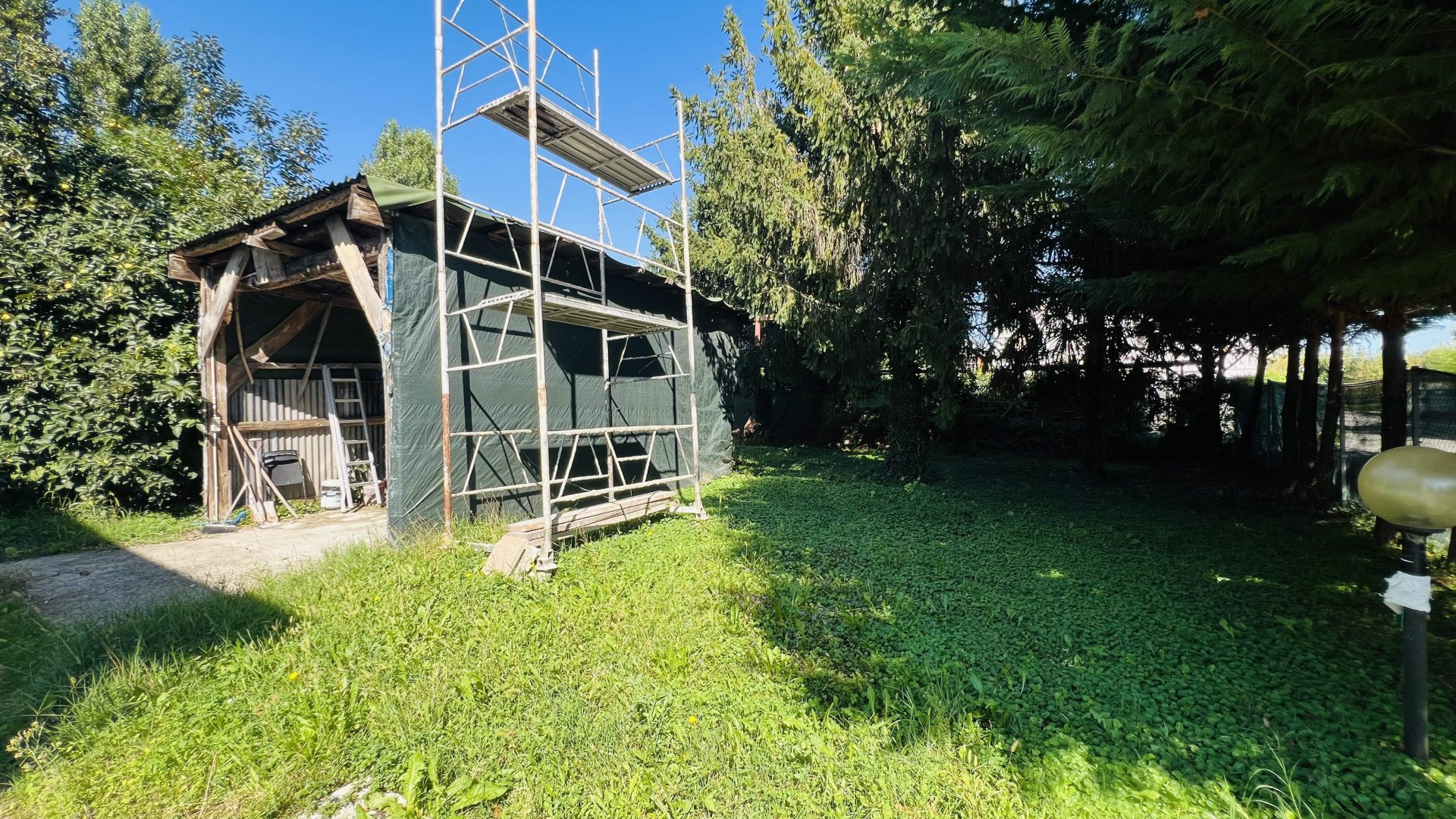 Il tutto è circondato da 2190 mq di giardino privato nel quale troviamo anche un box auto di 26 mq separato dalla casa.