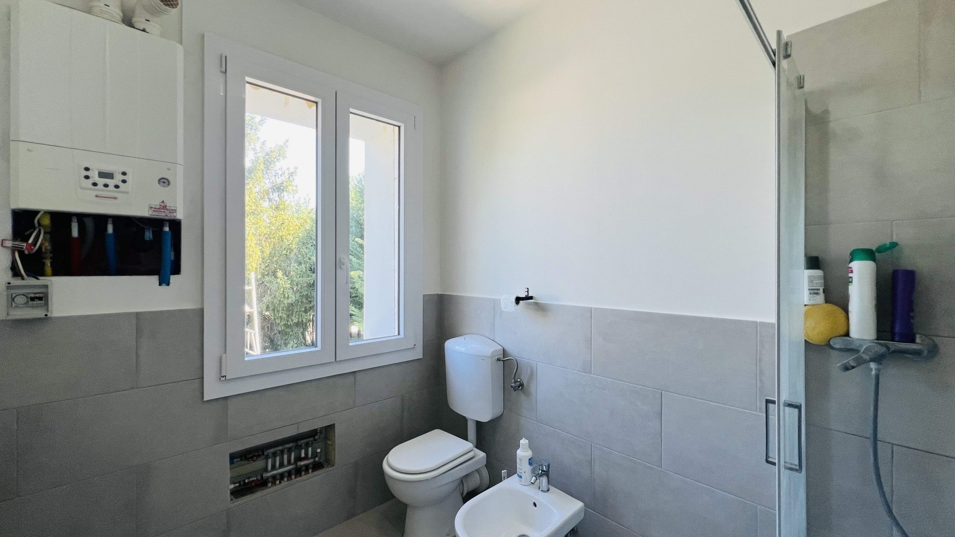 Vi sono infissi in vetro doppio/PVC. E' presente riscaldamento autonomo a radiatori. Sono stati installati anche i pannelli solari sul tetto e la colonnina di ricarica elettrica dell'auto.